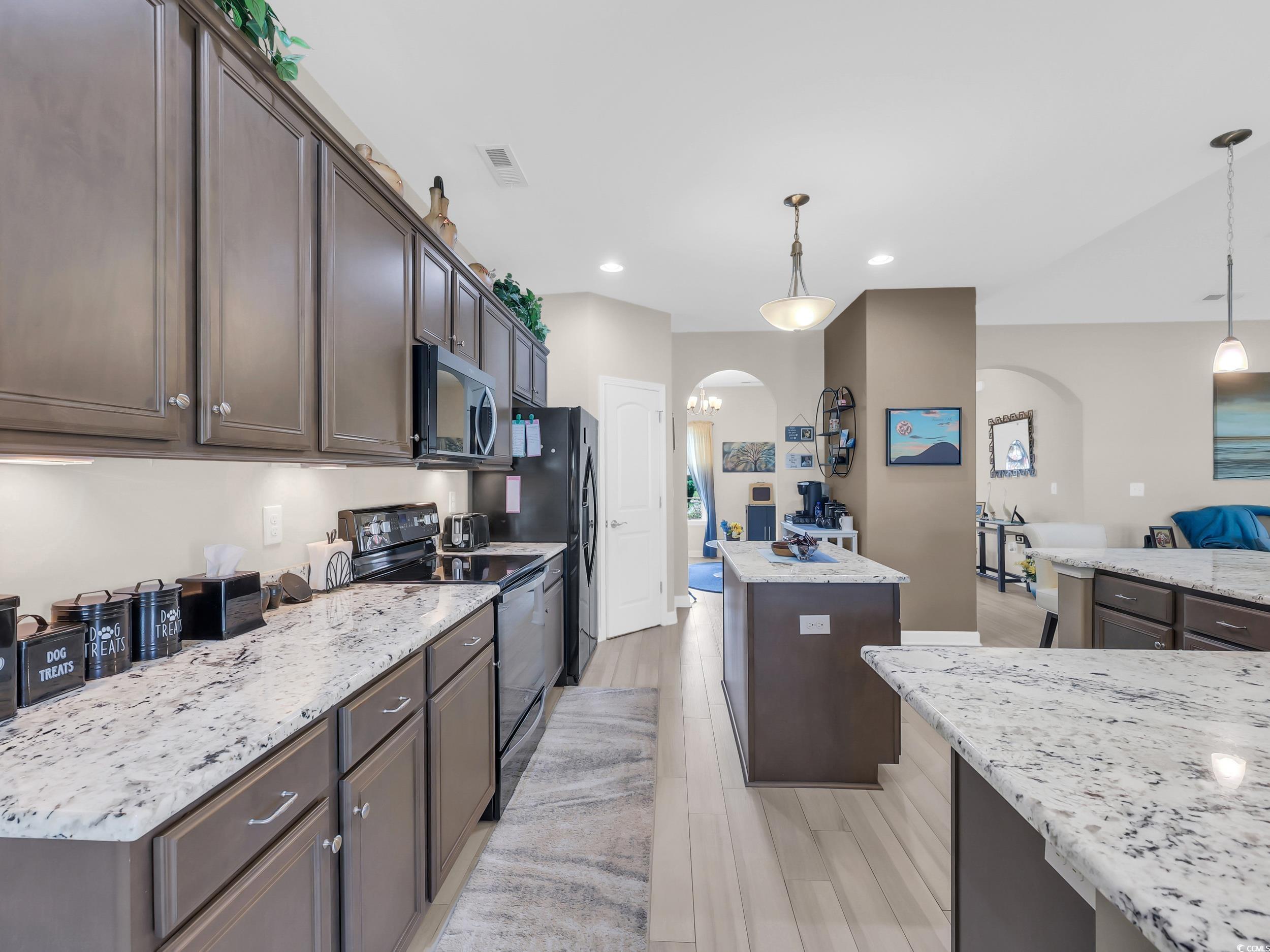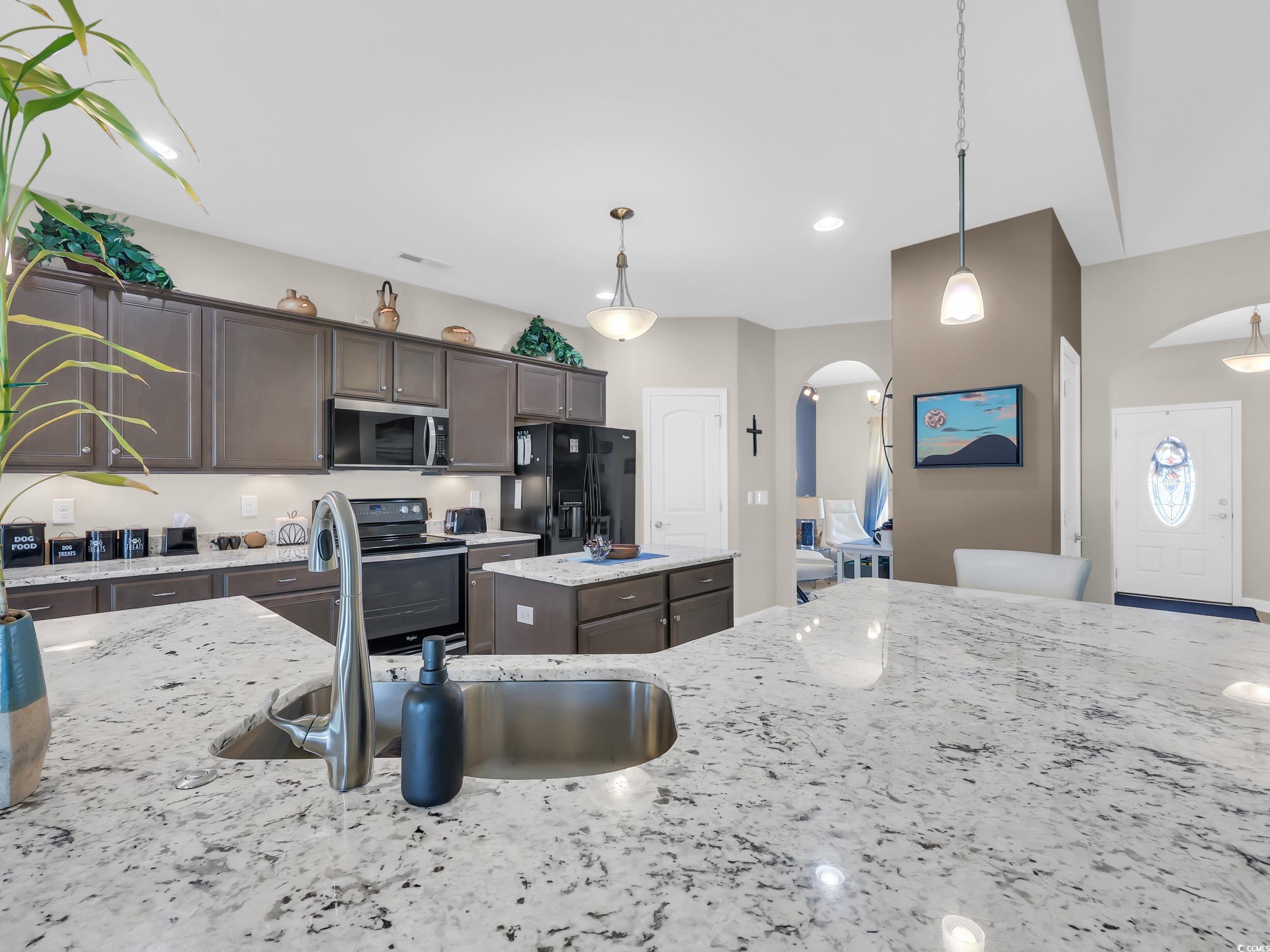 Welcome to 1218 White Fox Ct., a stunning home located in the beautiful Hillsborough community located just minutes outside of historic downtown Conway. This waterfront home lives large with the perfect split floor plan, with vaulted ceilings, offering a great blend of functionality, modern finishes, and serene natural beauty. The modern chef’s kitchen features stylish appliances, a large island, breakfast nook, granite countertops, a pantry, and ample cabinet storage. There is also a formal dining area that can be used as a flex space for reading, music, or whatever works for your lifestyle. The primary bedroom is a true retreat with tray ceilings and a picturesque view of the backyard and lake. The primary bathroom boasts a double-sink vanity with comfort height cabinetry and a roomy tiled walk-in shower, and walk-in closet. The two spare bedrooms are spacious offering ample closet space. The yard is beautifully landscaped with an irrigation system and fully fenced back yard. Don’t miss this opportunity to own a well-maintained home on a beautiful cul-de-sac street. Contact us to schedule your showing appointment. Square footage is approximate and not guaranteed. Buyer responsible for verification.