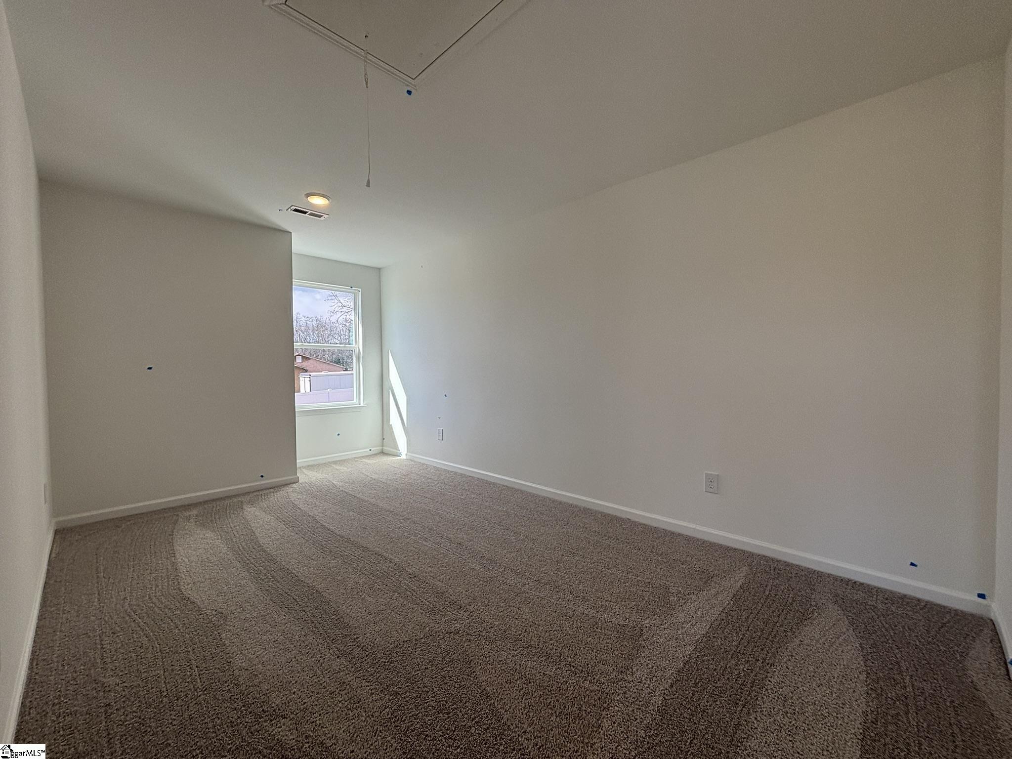 New construction featuring 3 bedrooms, 2.5 baths, and a 1-car garage. The main level includes a defined foyer, kitchen, dining area, and a two-story great room with abundant natural light. The primary suite is located on the main floor and includes a tiled walk-in shower, dual sinks, and a walk-in closet. The kitchen offers LED lighting, upgraded cabinetry, granite countertops, and stainless steel appliances. Upstairs includes 2 additional bedrooms, a full bath, open loft, and a 9x18 flex room. EVP flooring is installed in main living areas, with carpet in the bedrooms. Additional features include a rear covered porch, structured wiring, built-in pest control system, and a finished garage with electrical outlets and lighting.