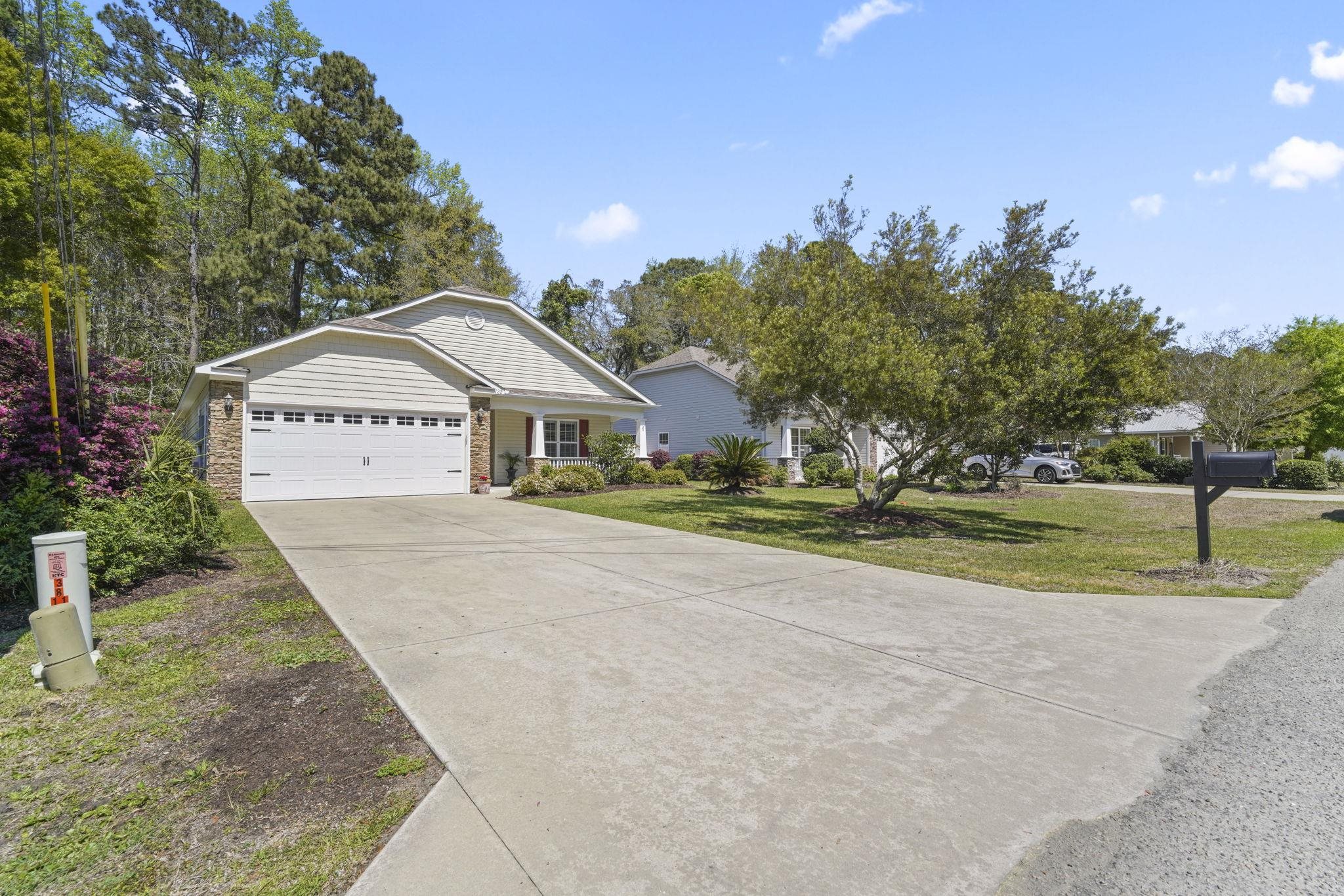Thoughtfully designed for easy coastal living, this single-level home in The Cottages at Pawleys Island offers an open layout with a seamless flow between the main living spaces. The foyer opens into a spacious great room that connects effortlessly to the dining area and kitchen, creating a natural gathering space for everyday living and entertaining. The kitchen is well-appointed with granite countertops, stainless steel appliances, and ample cabinetry, while the adjacent dining area overlooks the backyard and leads to a screened back porch - perfect for enjoying calm mornings or relaxing evenings surrounded by a peaceful, tree-lined setting. The primary suite is privately positioned toward the rear of the home and features a generous walk-in closet and en-suite bath, offering a comfortable retreat at the end of the day. Two additional bedrooms are located on the opposite side of the home, providing flexibility for guests, family, or a home office. The mirrored floor plan enhances functionality, with a welcoming front porch with beautiful landscaping attached two-car garage, and a layout designed for both privacy and connection throughout. Quality finishes and thoughtful details can be found throughout, including durable flooring in the main living areas, energy-efficient systems, and classic coastal design elements that create a clean, timeless feel. The screened porch extends the living space outdoors, overlooking a naturally buffered backyard that offers both shade and serenity. The location completes the picture, placing you just minutes from the sandy beaches of Pawleys Island, as well as nearby golf courses, local dining, and everyday conveniences. Whether heading out on your golf cart for a beach day or enjoying an evening at home, this setting makes it easy to embrace the relaxed coastal lifestyle so many seek. Measurements are not guaranteed. Buyer is responsible for verifying.