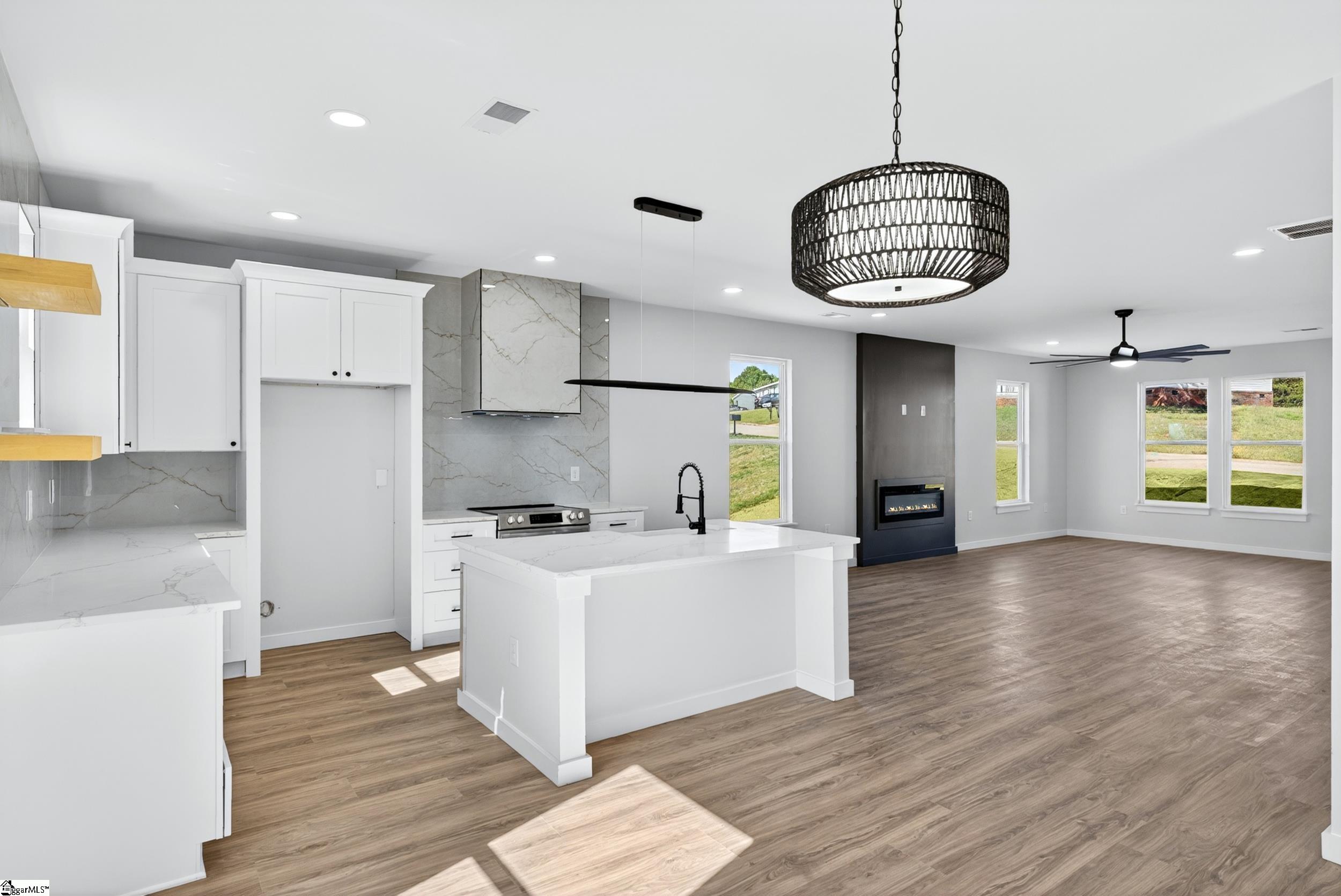 Welcome to 122 Current Drive, a beautifully designed home located in the sought-after River Breeze neighborhood. This thoughtfully crafted residence spans approximately 1,950 square feet and showcases an open-concept layout ideal for both everyday living and entertaining. Inside, you’ll find up to three bedrooms, each featuring walk-in closets with custom built-ins for exceptional organization and storage. The home includes two full bathrooms and a main-level half bath, each designed with a perfect balance of comfort and style. Set on a meticulously landscaped 0.44-acre lot, the property combines curb appeal and durability with its low-maintenance concrete plank exterior. Luxury vinyl plank flooring flows seamlessly throughout the interior, complementing the sleek quartz countertops found in both the kitchen and baths. At the heart of the home is a chef-inspired kitchen equipped with stainless steel appliances, a large island, and quartz surfaces—an ideal space for meal preparation and casual gatherings. The adjoining dining area and living area (in one large great room) are anchored by a modern fireplace, creating an inviting atmosphere perfect for relaxing or hosting guests. Step outside to enjoy the custom covered back patio and private balcony, both giving peaceful views of the beautifully maintained yard. These outdoor spaces provide the perfect setting to unwind, entertain, or simply enjoy the changing seasons. Conveniently located near Greenville’s shopping, dining, and top-rated schools, this home provides easy access to White Horse Road while maintaining a tranquil feel within the established River Breeze community—complete with the Saluda River flowing behind the home. Experience a home that’s as unique as it is refined. Schedule your private tour today and discover everything 122 Current Drive and River Breeze provides!