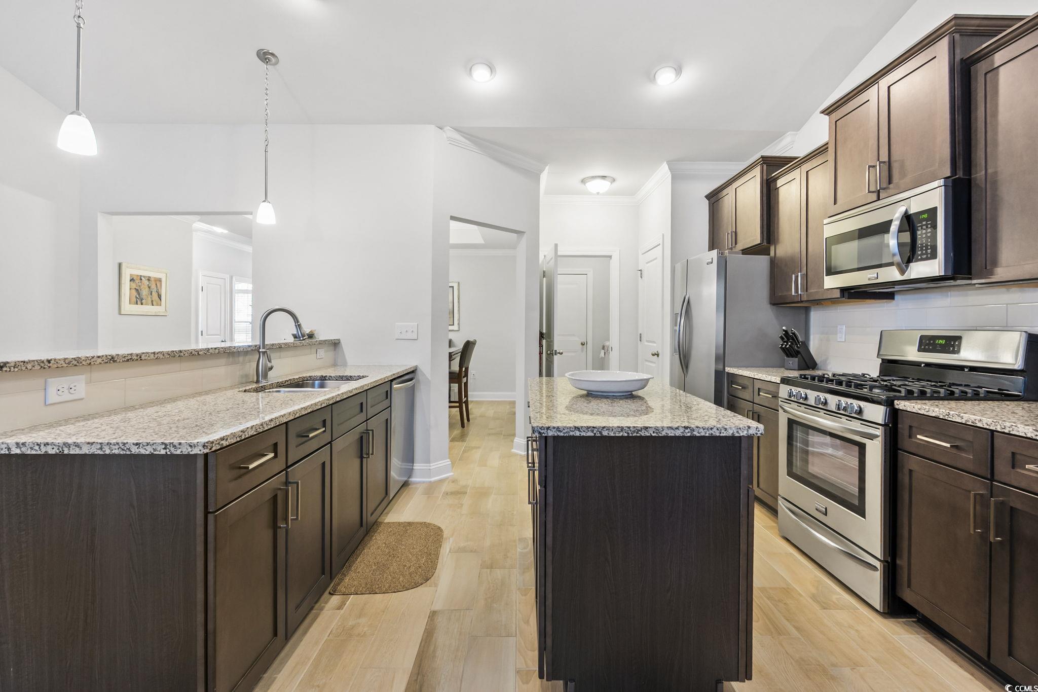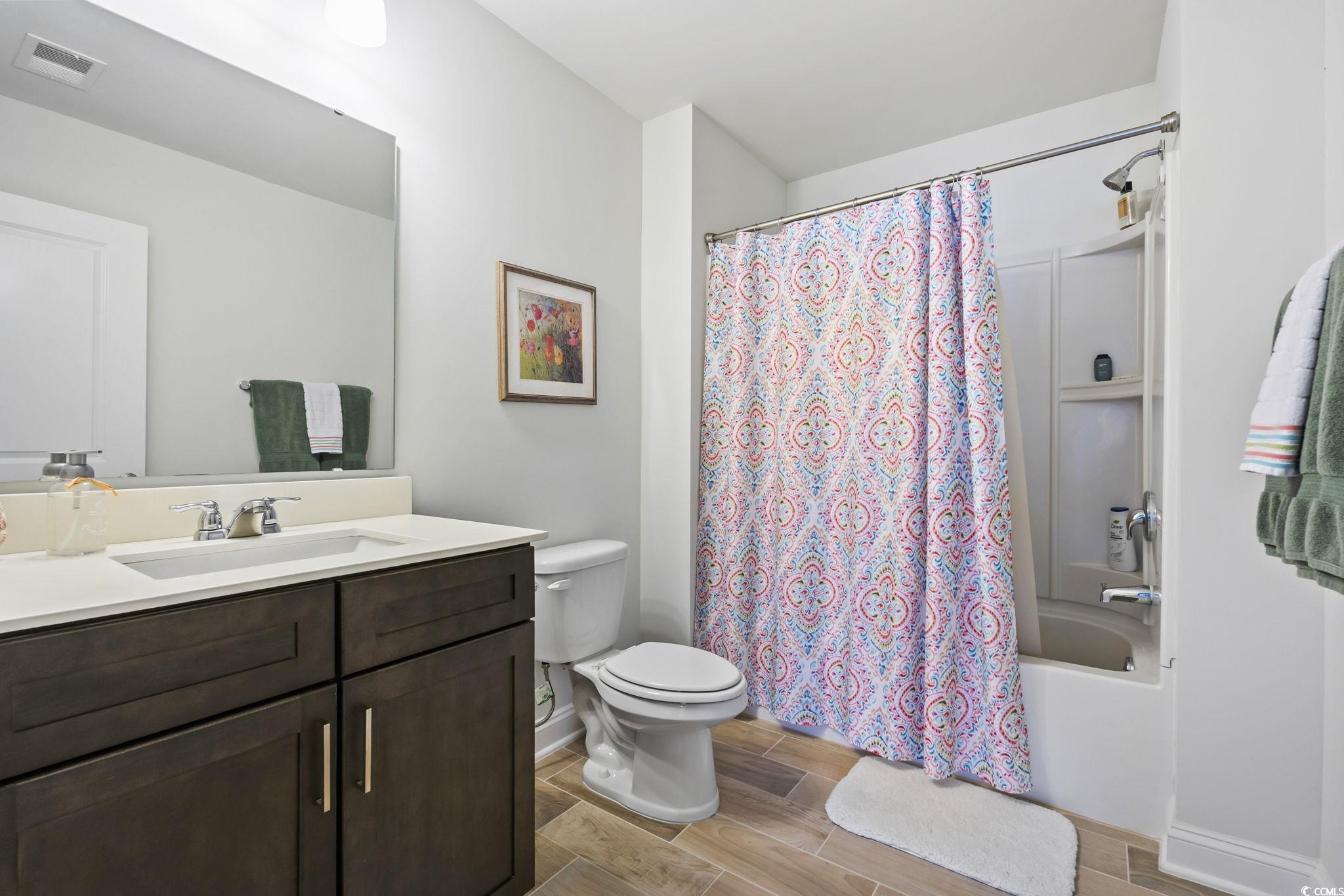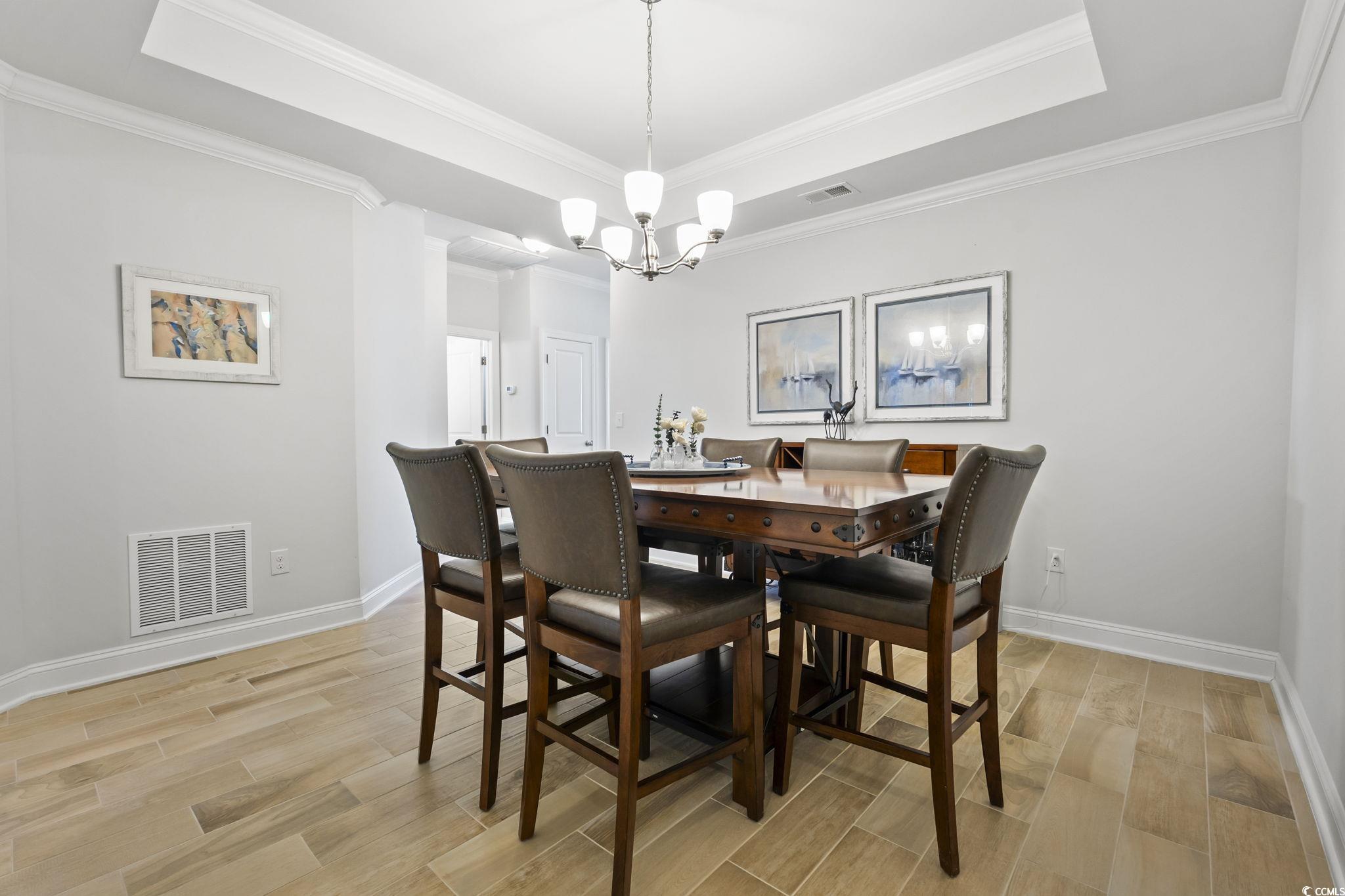 3-Bedroom Townhome Near Murrells Inlet Marshwalk - in Parmelee! Looking for a move-in-ready townhome close to the beach, golf, and great dining? This beautiful 3-bedroom, 3-bath end-unit townhome in the highly desirable Parmelee community of Murrells Inlet offers the perfect blend of Lowcountry charm and modern living - just 10 minutes from the Marshwalk and 3.5 miles from the Atlantic Ocean. From the moment you step inside, you'll feel the relaxed coastal comfort. The open-concept living area and kitchen feature a soaring vaulted ceiling, creating a bright and airy feel. A shiplap accent wall adds coastal character, while tile flooring runs through the main living spaces for style and durability. The formal dining room with its tray ceiling sets the scene for holiday dinners or casual gatherings. The kitchen is designed for both beauty and function - with granite countertops, stainless steel appliances, and a a breakfast bar, perfect for cooking or entertaining. The primary suite on the main level includes a walk-in closet, dual vanities, and access to the screened porch - a peaceful spot for morning coffee or evening relaxation. A second guest room is also found on the first floor with access to a full hallway bathroom. Upstairs, a spacious guest suite with its own private bath and walk-in closet provides a comfortable retreat for visitors. Bedrooms feature plush carpeting for a cozy feel. Outside, you'll appreciate the covered back patio with serene views of the tree line, also the attached two-car garage and the landscaped setting that surrounds this end unit. Parmelee residents enjoy access to a community pool and clubhouse, with plenty of open space for walking or cruising by golf cart to nearby shops, restaurants, and schools. Built for easy living and lasting quality, this townhome is ideal as a primary home, vacation retreat, or investment property. Conveniently located near Highway 17, this home puts all of Murrells Inlet, Garden City, and Myrtle Beach within easy reach - from shopping and dining to golf courses and the beach itself. Don't miss your chance to own a piece of coastal paradise where every day feels like a getaway. Contact today for a private tour! All measurements are approximate and not guaranteed. Buyer is responsible for verification.
