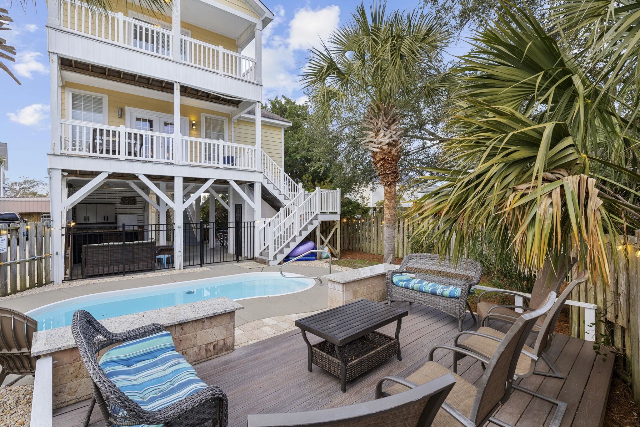 Located in the heart of Murrells Inlet, this home offers the rare combination of proven performance and coastal lifestyle—featuring strong prior rental income and nearly 35,000 in upgrades completed within the past year. Just minutes from the iconic Murrells Inlet Marsh Walk and a short walk to Surfside Beach, this property is ideally positioned near the area’s most sought-after attractions—making it a consistent draw for vacationers and a standout opportunity for continued rental success. This home features an elevator that runs all 3 levels and several walk in showers! Nearly every bedroom has it's own bath! A stylish blend of industrial charm and modern coastal comfort, the home is designed for both relaxation and entertainment. Outdoor living takes center stage with a private pool, hot tub, and outdoor kitchenette—perfect for enjoying the coastal air after a day at the beach or an evening along the Marsh Walk’s waterfront dining and live music scene. Inside, bold design elements like an eye-catching airplane mural and steel beam accents create a memorable first impression, while the open-concept living, kitchen, and dining areas provide a natural gathering space. A long family-style dining table and oversized island seating make hosting effortless. With spacious bedrooms, private bathrooms, Smart TVs throughout, and the convenience of a private elevator, this home comfortably accommodates large groups, repeat guests, and extended stays—delivering both elevated guest experience and strong investment appeal in one of the Grand Strand’s most desirable coastal markets.