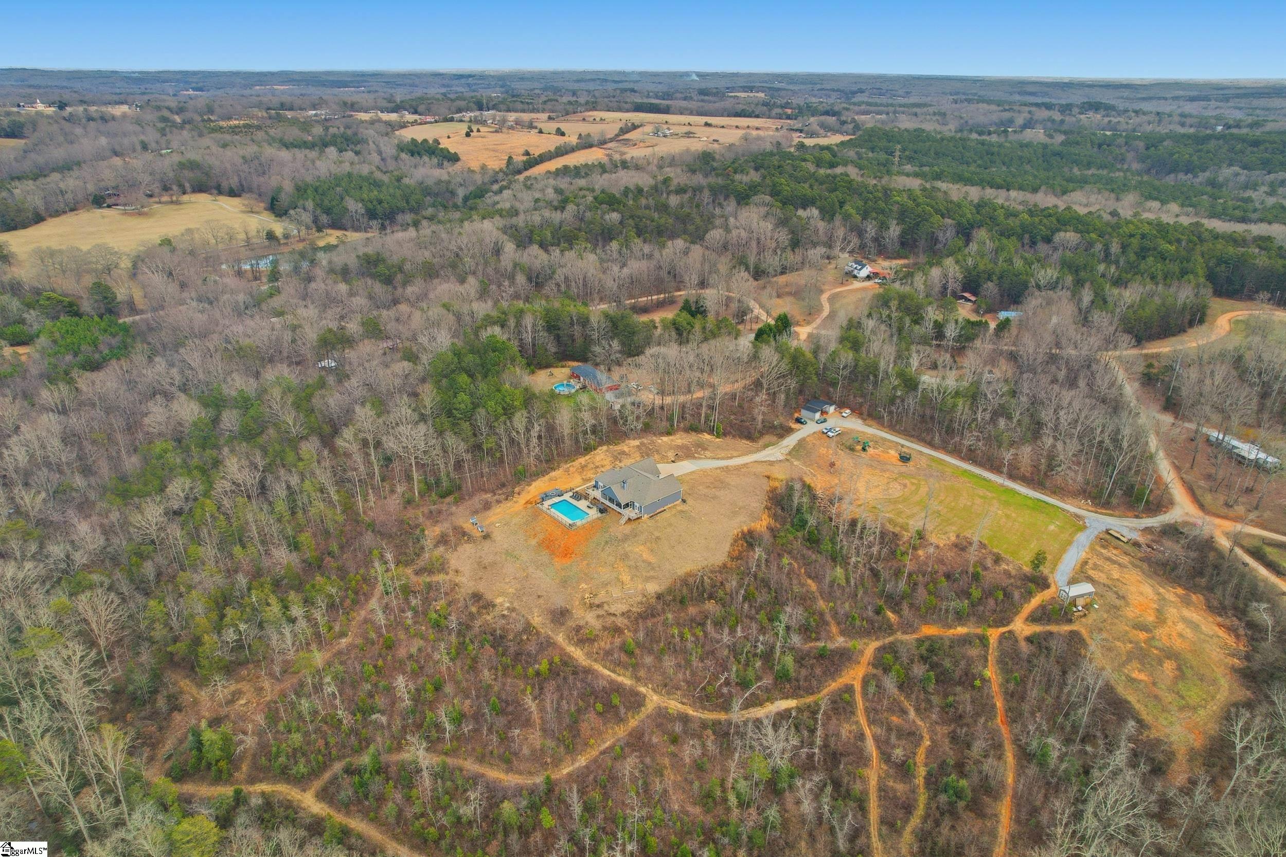 ~Beautiful home, 11.9 acres, saltwater pool, spectacular mountain views, and more~ Some homes on the market require a level of dressing up to convince buyers of their potential. 122 Sand Creek Dr speaks for itself. The views are breathtaking, the air feels cleaner, and stress melts away the second you turn on to the 11.9 acre property. The first thing you'll see after the trees open up is the backdrop: a nearly unobstructed view of the Blue Ridge Mountains in the distance. Following the driveway towards the home, you'll pass two additional buildings: on the left is a 300sqft building with electricity and its own septic tank, currently used as storage but framed with the potential to become a second living space for guests; on the right is the second 40x20 structure with electricity and water suitable to store an RV, tractor, or any other tools and toys you desire. Perched on top of the hill is the main reason you are here: 3000sqft of immaculate design and hand-picked finishes. Ten-foot ceilings, eight-foot doors, and seven-foot windows give the home a sense of scale and light that’s immediately felt when you step inside. As you enter the front door the foyer opens up into the kitchen, living room, and dining area, you can tell the space was designed to host and gather together. In the kitchen, a farm sink, double ovens, and induction stovetop make cooking enjoyable and the beautiful quartzite countertops provide a picture-worthy place to serve meals. Fill up your plate but don't go far because the kitchen flows right into the living and dining rooms, both of which have views straight out to the mountains. Cap the meal off with a cozy evening next to the wood-burning fireplace in the living room. Bedroom space in this home rivals the space offered outside. Off the right of the kitchen is the first primary suite outfitted with two walk-in closets, dual sinks, and a separate tub and shower. The marble countertops in all of the bathrooms make getting ready in the morning a little more luxurious. Off the left of the living room is a second primary suite, opening the door to multi-generational living. Both primaries have doors that open to the expansive deck on the back of the home. Two additional bedrooms and another full bath round out the main floor but upstairs you'll find a fifth bedroom with its own full bathroom and yet another walk-in closet. Enjoy the outdoors year round as this home offers both screened and unscreened porches to gaze out over your saltwater pool, adjacent rock fire-pit, and off into the distant mountains. No more views of your neighbor's house while you drink your coffee in the morning. Creek frontage down the hill and four-wheeling trails carved through the woods leave nothing to be desired for those who love the outdoors. If life feels busy, crowded, or overwhelming, why not have a peaceful place to escape the noise? Come by and see for yourself the beauty and serenity that can be found at 122 Sand Creek Drive.