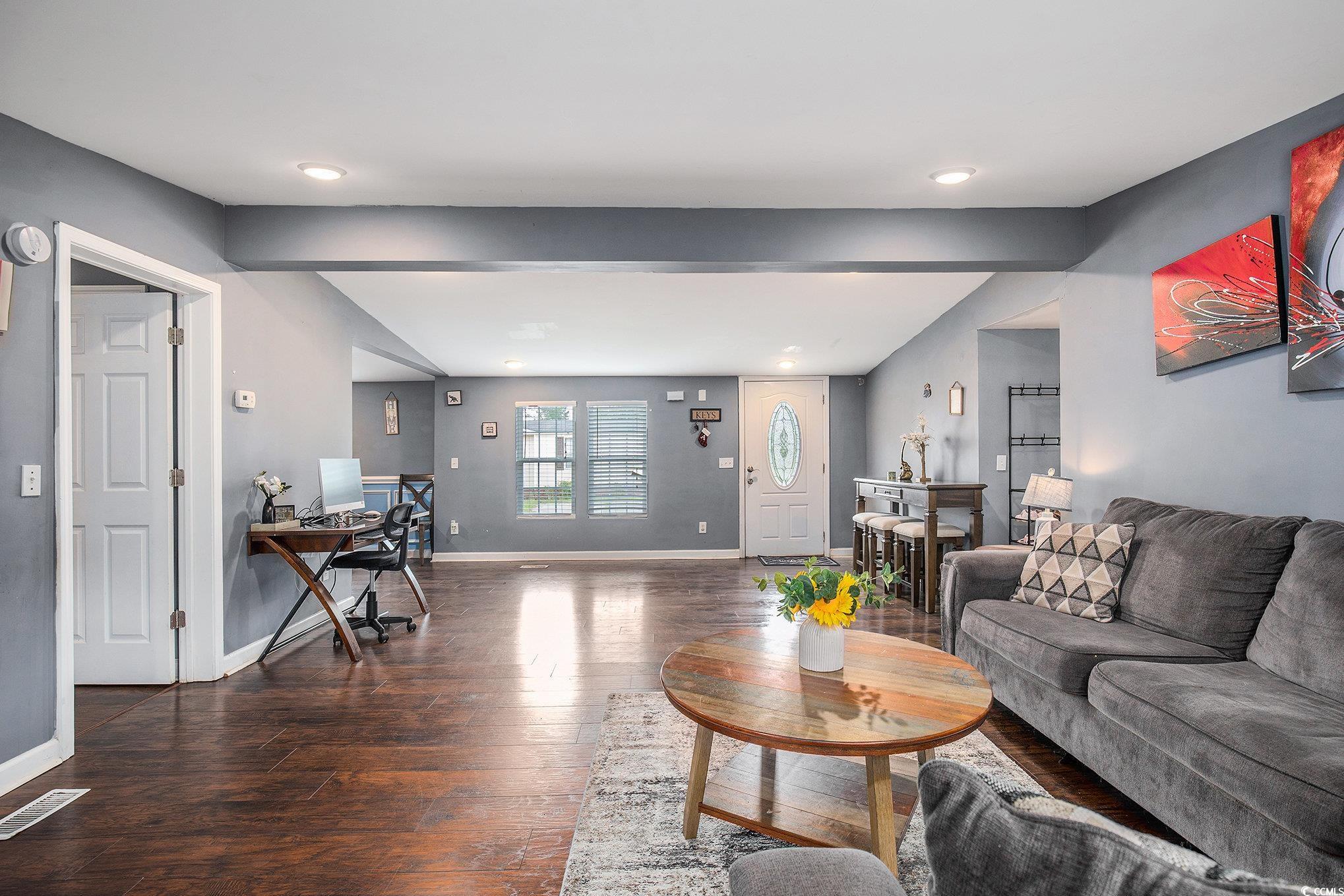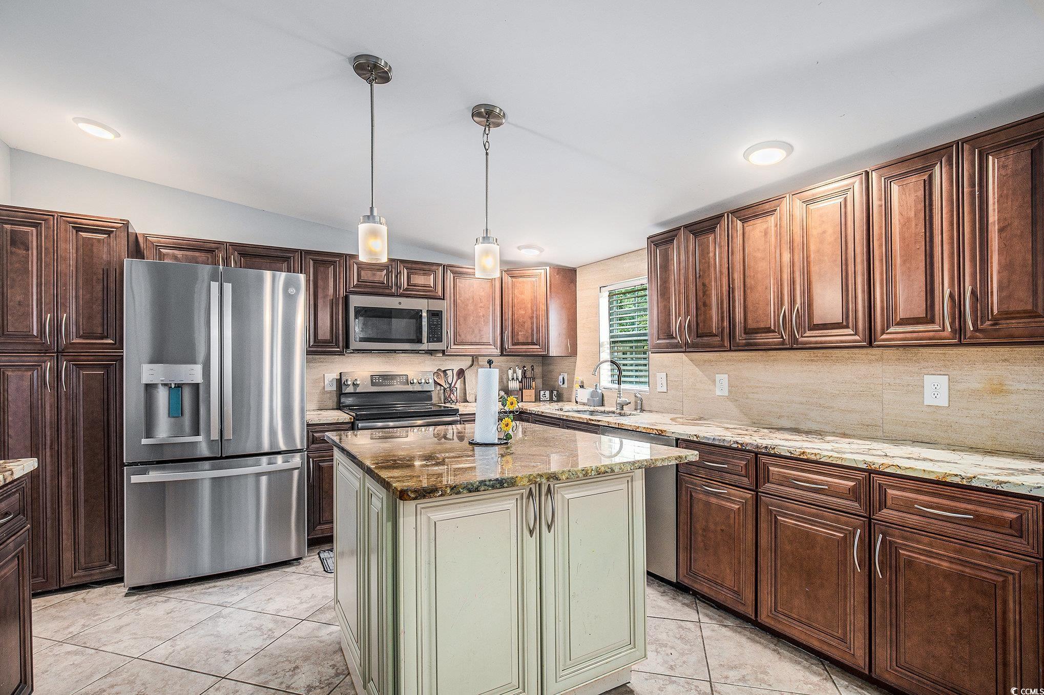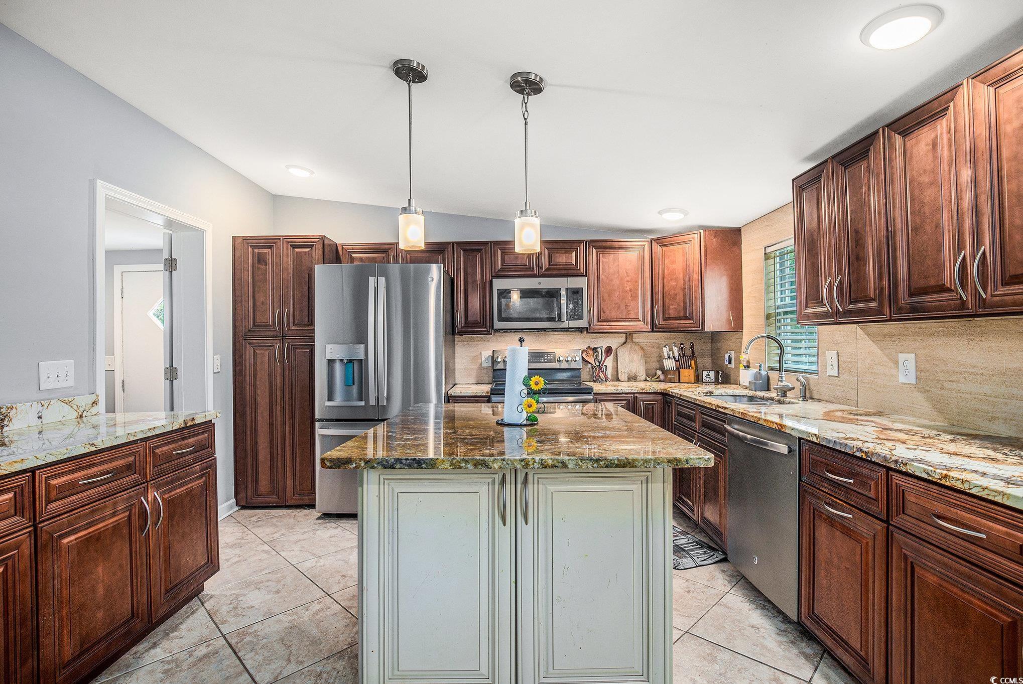 Beautiful 3 bedroom, 2 bath home centrally located in Myrtle Beach! This home features a split floor plan, stainless steel appliances, granite countertops, work island and ample cabinet and counter space, LVP flooring throughout, spacious owner's suite with ensuite, walk in shower in the ensuite, walk in closet, covered rear porch and a detached storage shed. Close to all major highways, schools, championship golf, hospitals, shopping, dining, entertainment and just minutes to the beach!