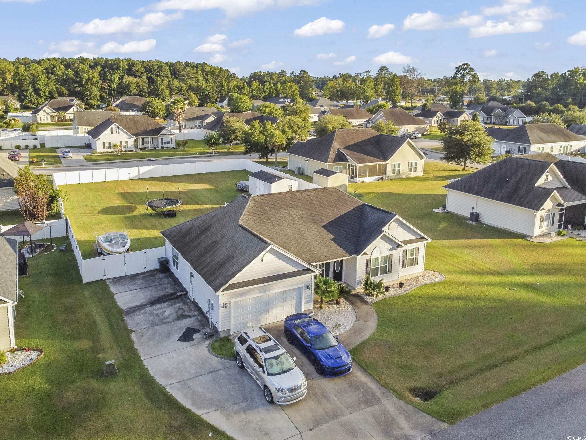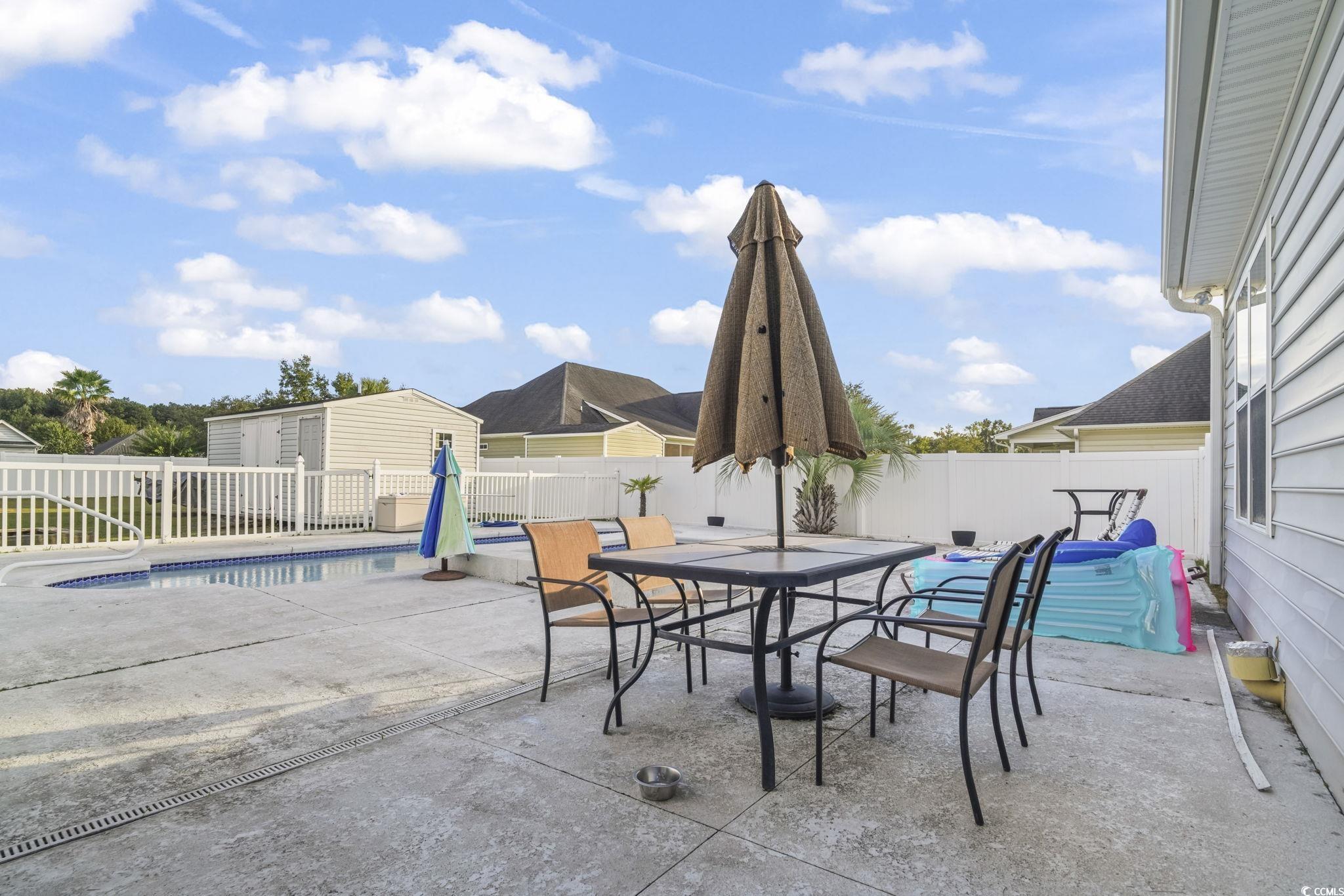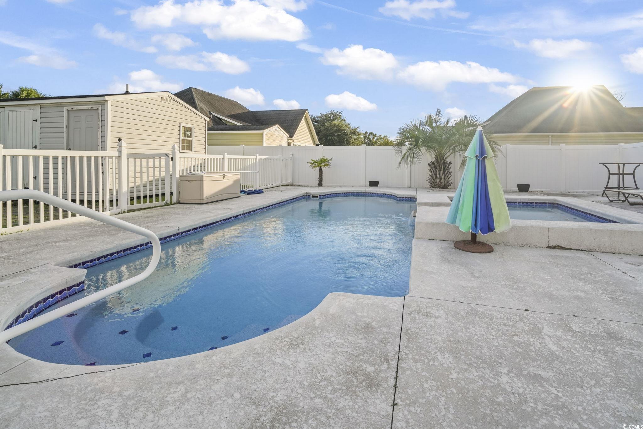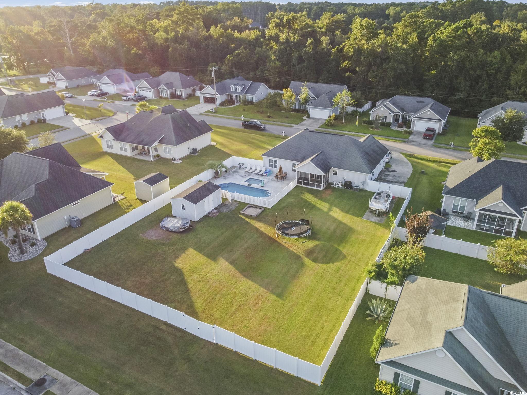 Welcome to this one-of-a-kind property in the desirable Sedgefield community of Conway?the only home offering a double lot, grandfathered in and fully fenced for ultimate privacy and versatility. The additional lot behind the home features a 6-ft privacy fence running the full length of the property, creating the perfect space for storing boats, RVs, ATVs, or extra vehicles. A dedicated storage shed with its own half bathroom and outside access adds even more convenience, once used as golf cart parking. Step outside to your private oasis with a beautiful in-ground saltwater pool (up to 5 ft deep) complete with a connected kiddie pool that cascades into the main pool. The pool is equipped with a saltwater pump system and water heater, making it perfect for year-round enjoyment. Inside, this 4-bedroom, 2-bathroom home offers a spacious layout, a freshly painted interior (2024), and new flooring in the living room. The 2-car garage provides plenty of storage, while the home?s excellent maintenance makes it move-in ready. For added peace of mind, the seller is including a 12-month home warranty covering many key features for the new owner. This is more than just a home?it?s a lifestyle. With its unique double lot, storage options, and private pool retreat, this property is truly unlike anything else in the neighborhood. Don?t miss your chance to own this rare gem in Sedgefield!