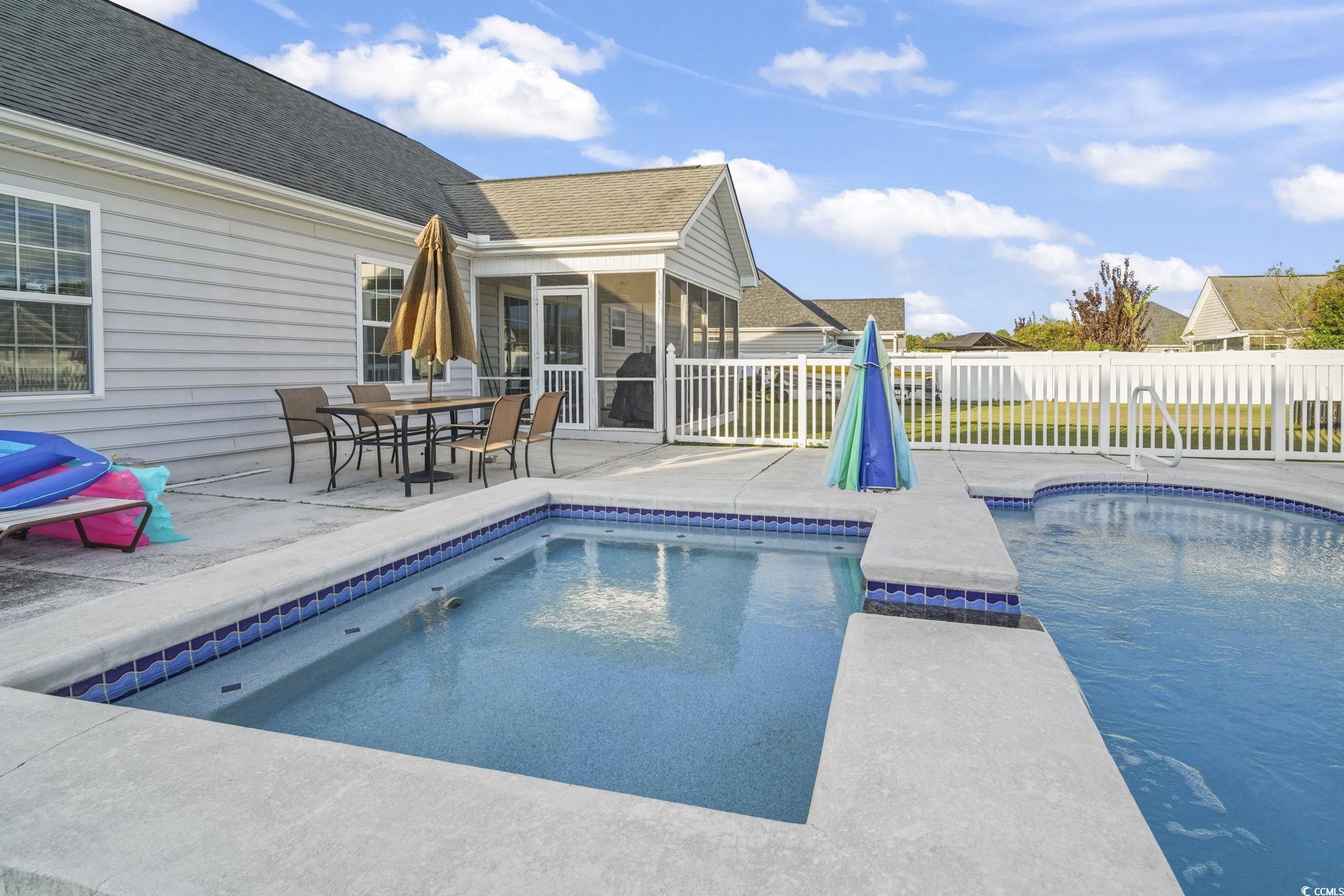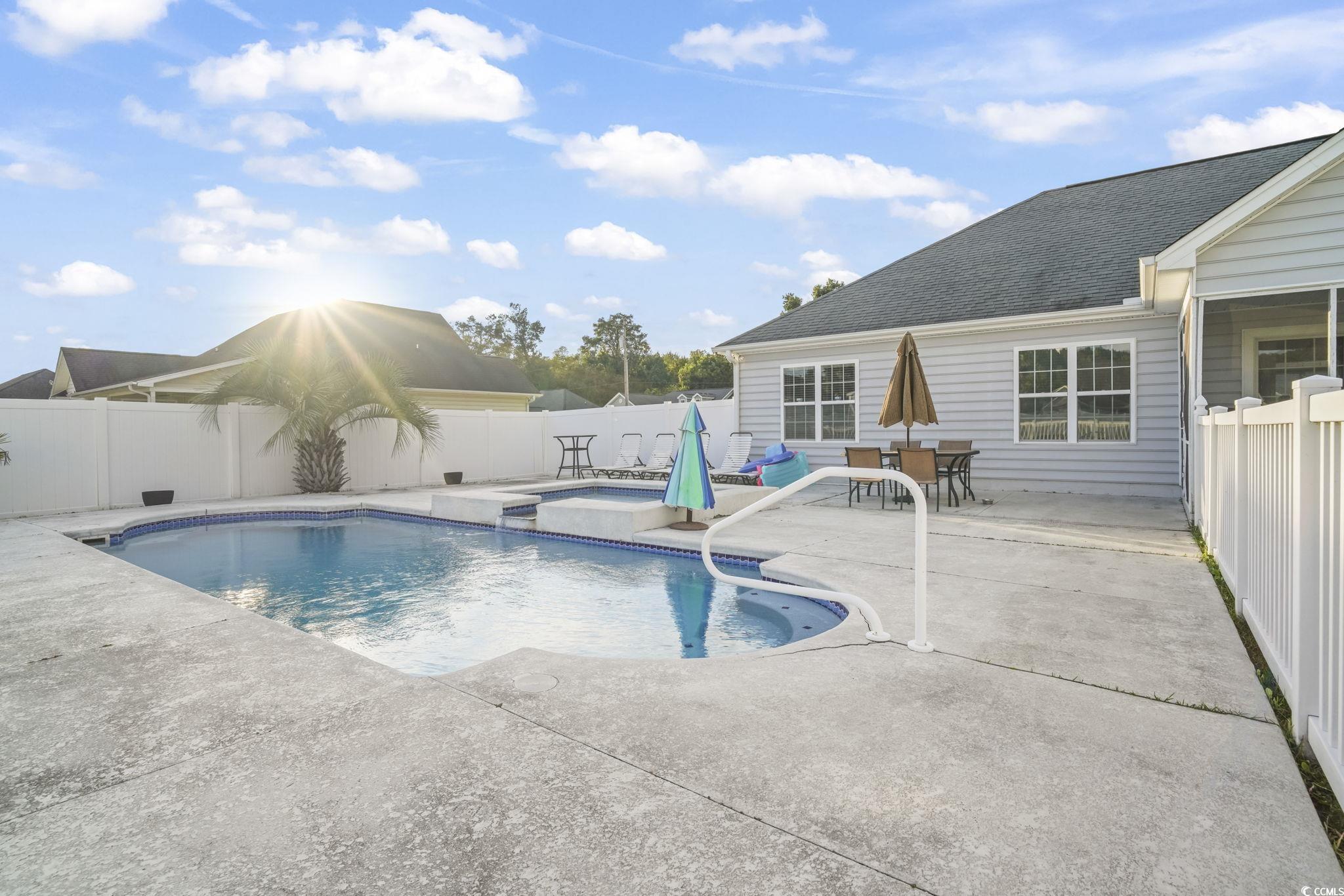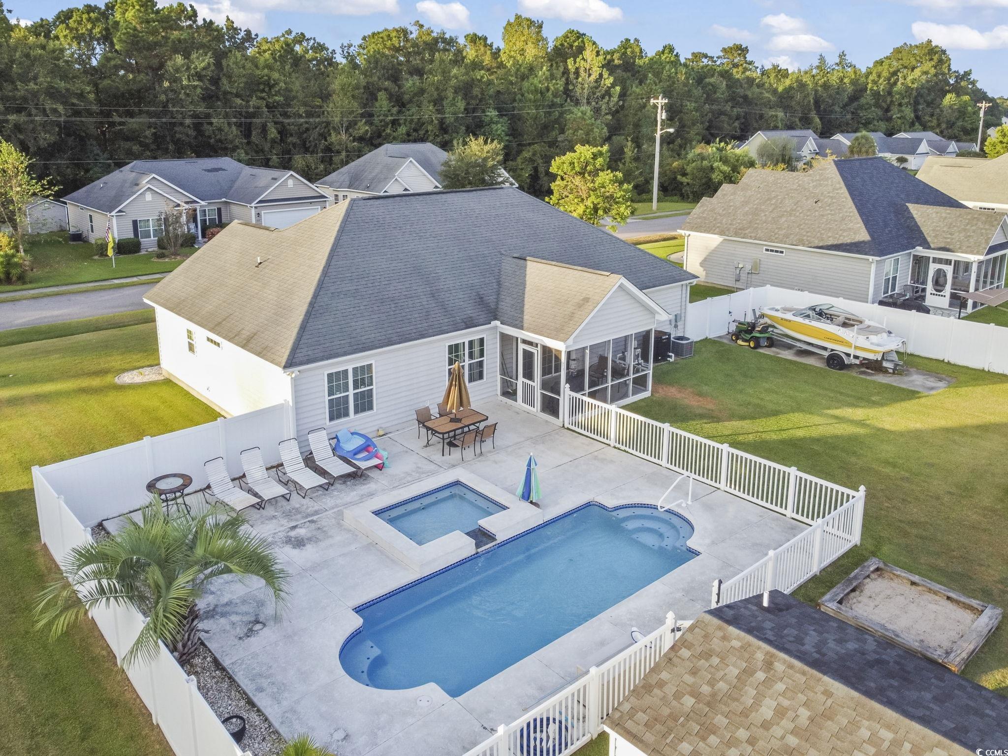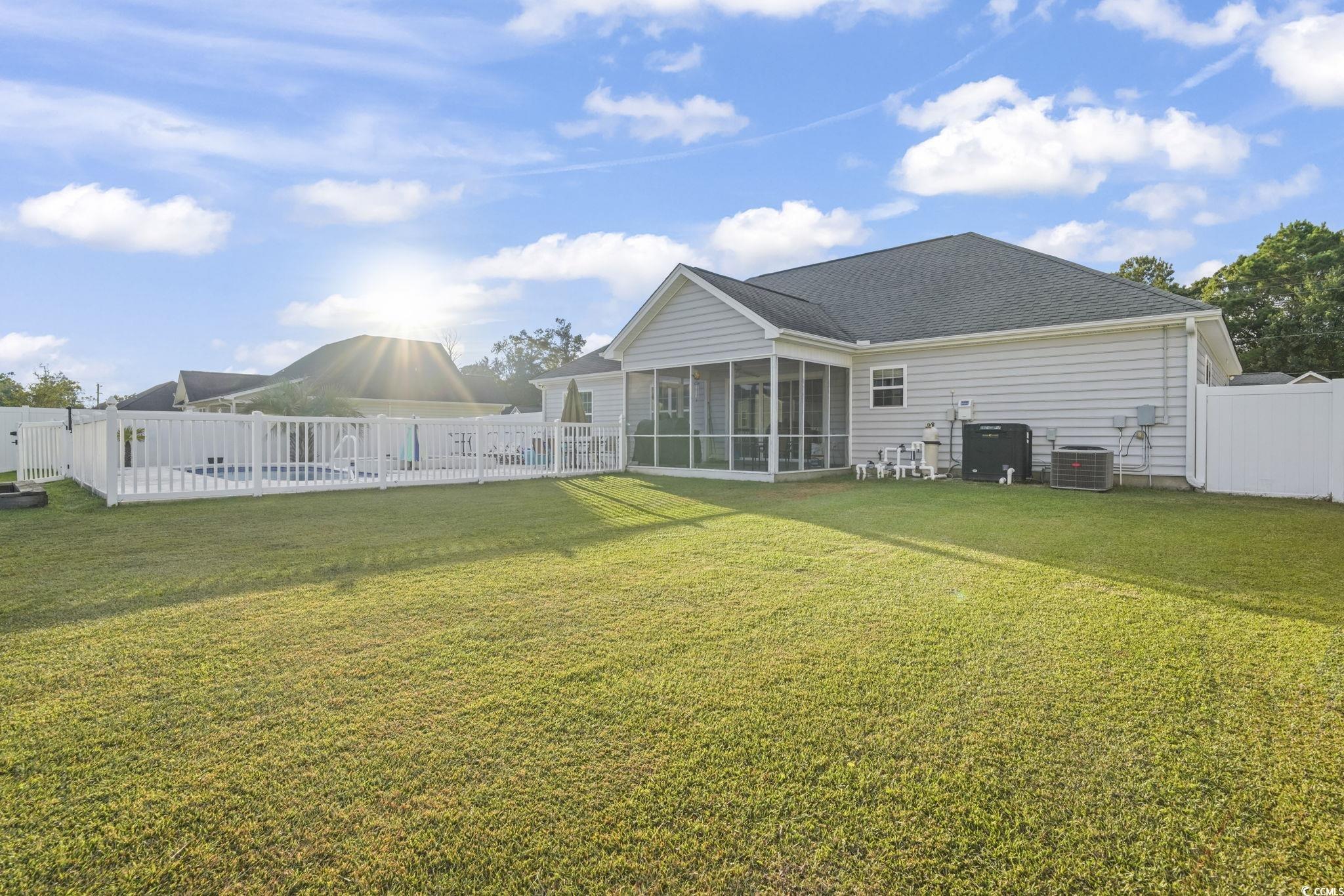 Welcome to this one-of-a-kind property in the desirable Sedgefield community of Conway?the only home offering a double lot, grandfathered in and fully fenced for ultimate privacy and versatility. The additional lot behind the home features a 6-ft privacy fence running the full length of the property, creating the perfect space for storing boats, RVs, ATVs, or extra vehicles. A dedicated storage shed with its own half bathroom and outside access adds even more convenience, once used as golf cart parking. Step outside to your private oasis with a beautiful in-ground saltwater pool (up to 5 ft deep) complete with a connected kiddie pool that cascades into the main pool. The pool is equipped with a saltwater pump system and water heater, making it perfect for year-round enjoyment. Inside, this 4-bedroom, 2-bathroom home offers a spacious layout, a freshly painted interior (2024), and new flooring in the living room. The 2-car garage provides plenty of storage, while the home?s excellent maintenance makes it move-in ready. For added peace of mind, the seller is including a 12-month home warranty covering many key features for the new owner. This is more than just a home?it?s a lifestyle. With its unique double lot, storage options, and private pool retreat, this property is truly unlike anything else in the neighborhood. Don?t miss your chance to own this rare gem in Sedgefield!