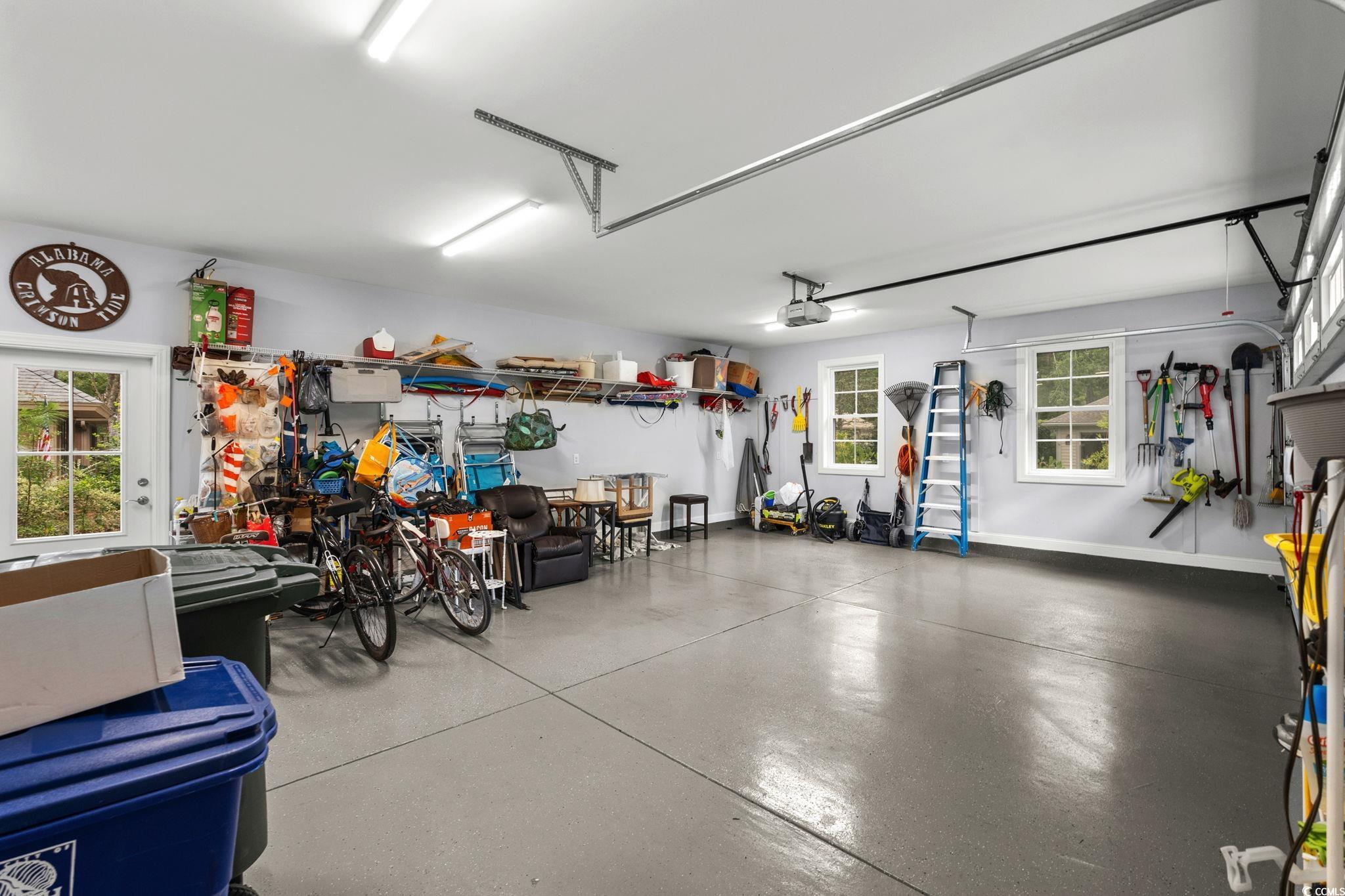 This beautifully maintained 1.5-story home, built in 2019 by Southern Homes, offers 2,203 heated square feet of thoughtfully designed living space. Located on the 6th fairway of the Tidewater Plantation golf course, this property is located within a gated community along the Intracoastal Waterway, offering both privacy and scenic views. The main level features 3 bedrooms and 2 full bathrooms, with a 4th bedroom and 3rd full bath located upstairs. The front entry welcomes you with a covered porch and elegant double wood-and-glass doors that open into a gracious foyer. The family room features striking coffered ceilings, a ceiling fan, a gas log fireplace, and a four-panel sliding glass door that leads directly to the screened porch, perfect for relaxing or entertaining. Wide-plank, wood-look ceramic tile flooring runs throughout all main living areas, while the bedrooms are comfortably carpeted. Crown molding accents the kitchen, family room, and primary bedroom, adding a refined touch. The gourmet kitchen is equipped with abundant white cabinetry with soft-close doors and drawers, granite countertops, and a subway tile backsplash. A center island includes a double basin undermount sink and breakfast bar. Stainless steel appliances, including a smooth-top electric range (stubbed for gas), French door refrigerator, dishwasher, wall-mounted microwave, and vent hood, all convey with the sale. A nice size pantry rounds out this area. Adjacent to the kitchen, the spacious dining room (15’9” x 13’2”) features sliding glass doors that also open to the screened porch. The laundry room includes side-by-side washer and dryer (both convey), white cabinetry with granite countertops, and a utility sink. The 1st floor primary bedroom suite offers a large walk-in closet, ceiling fan, and a luxurious bathroom with a double vanity, granite countertops, private water closet, and a fully tiled walk-in shower with a frameless glass door and a transom window. Two additional guest bedrooms on the main level include ceiling fans and share a full bathroom with a double sink vanity and a tub/shower combination. Upstairs, the fourth bedroom is generously sized and includes two ceiling fans. The third full bathroom features luxury vinyl plank flooring and a walk-in shower with built-in seating. Two large walk-in attic spaces provide approximately 558 square feet for tons of storage. The home includes a side-load, oversized two-car attached garage (20’8x31’11), built-in security system, and low-maintenance landscaping with an irrigation system. The exterior features a large screened porch (14’11” x 11’9”) with tile flooring and a ceiling fan, as well as a 19-foot concrete patio ideal for outdoor entertaining and watching golf. The home is clad in durable Hardie board siding. Heating & air, water heater, and roof were all installed in 2019. This is a well-crafted home that combines quality modern finishes, open concept floor plan, and an enviable location within one of the area's premier communities. Enjoy the community tennis courts, pickleball courts, pools or the oceanfront private Beach Cabana and parking reserved just for the Tidewater residents. Owners are allowed pets but no motorcycles or golf carts. Low HOA fees include weekly front yard mowing, maintenance & upkeep on 2 pools, 2 clay tennis courts, pickleball courts, fitness center, Beach Cabana and parking, gate security, road maintenance, and property management. Come see this beautiful custom-built home with a golf course picturesque setting so close to everything North Myrtle Beach has to offer: shopping, restaurants, fishing, golfing, entertainment…and don’t forget the amazing Intracoastal Waterway and nearby sandy beaches of the Atlantic Ocean!