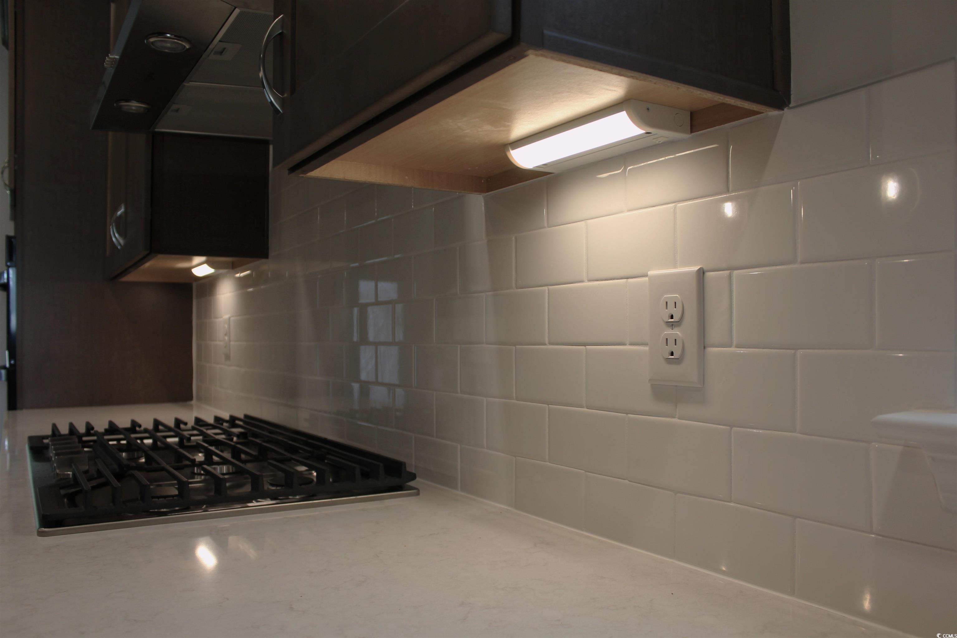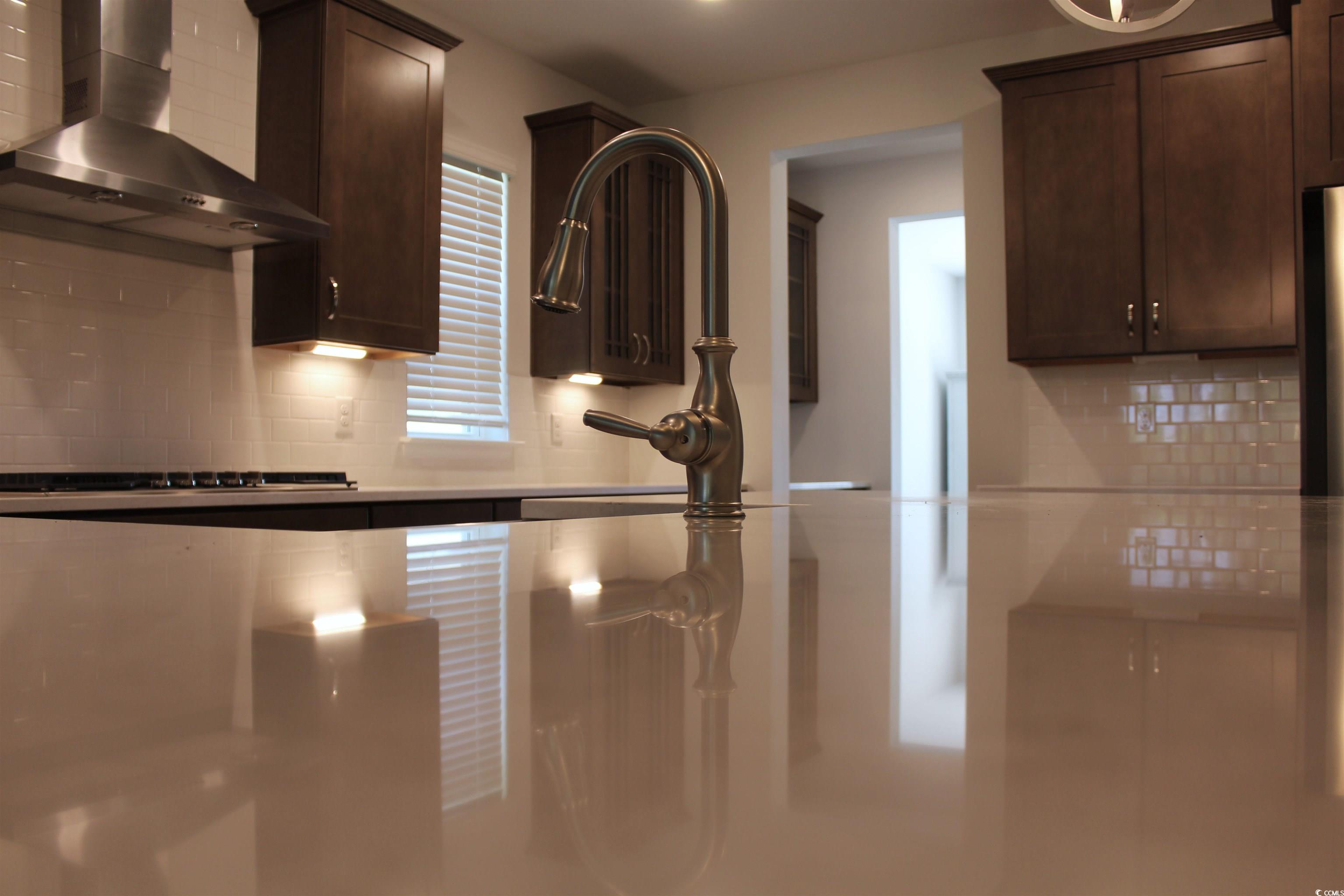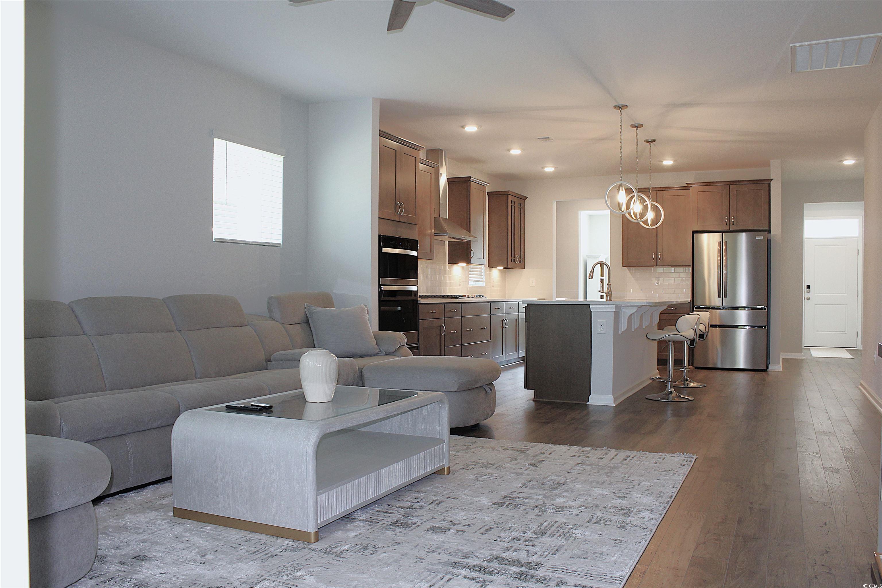 This popular Beazer's Hickory model (built in April 2025) features an open floor plan with 3 bedrooms and 2 full bathrooms, all on one level. Entrance through an open foyer with a tray ceiling. Family style dining room with easy access to the kitchen. The Gourmet Kitchen offers Golden Gate quartz counter tops, white subway backsplash, large island/breakfast bar with beautiful pendant lights, upgraded 42" Maple Burlap soft closing cabinets with under cabinets lighting and roll-out drawers, gas cooking range top with stainless steel exhaust hood, and stainless steel appliances (Frigidaire refrigerator, Whirlpool appliances including 3 rack dishwasher, a built-in microwave and oven double-stacked). Walk-in Butler pantry with wooden shelves and beautifully engraved glass door. Enjoy a spacious living room with access to the rear screened porch. Private and quiet back yard backs up a wooded area and has a 17' x 11' patio. The luxurious master suite features a spacious bedroom, overlooking the private back yard and a large zero entry walk-in shower with dry-off bench, complete with a rain shower fixture, brushed nickel plumbing fixtures throughout, a water closet , double vanity, linen closet and walk-in closet with built-in shelves. Remote controlled ceiling fans! Plenty of closet space. 2 car garage with tankless water heater, garage door opener and "ready to go plumping" for a sink. Mud room. Laundry room with a utility room/closet. Mohawk laminate hardwood flooring (nutmeg chestnut color) in the main living areas, and tile in the baths & laundry. This Energy Star certified home will be saving you money for years to come. 9ft Ceilings! Harborview is a natural gas and gated community conveniently located near the Intracoastal Waterway, shopping, dining and 3.5 miles from the beach. Top rated Carolina Forest school district. The amenity center features a jr. Olympic sized pool and owners clubhouse.