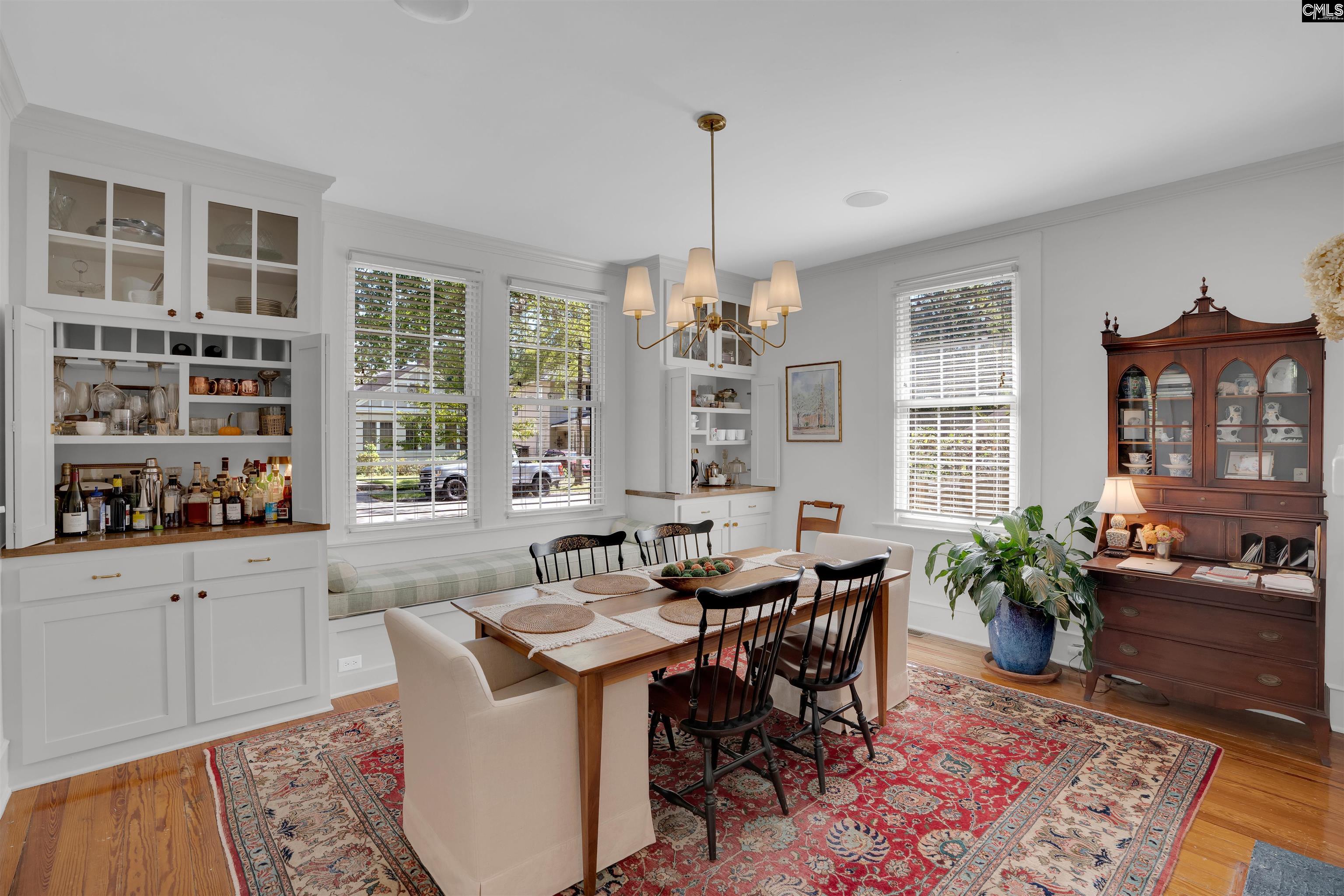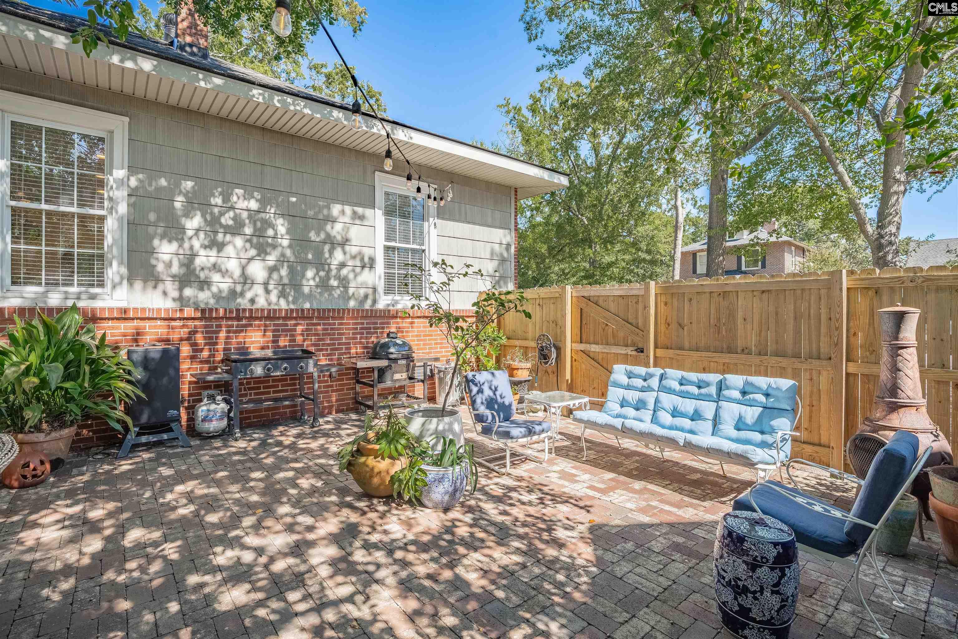 Blending historic charm and modern comfort, this 1940s Melrose Heights home stands on a spacious corner lot in one of Columbia's most coveted neighborhoods. This fully renovated home has beautiful original hardwoods, a modern updated kitchen with large walk-in pantry, high-end stainless steel appliances, and a custom island/bar. High ceilings and moldings throughout give this home a premium and spacious feel, as do the twin ornamental fireplaces in the formal living and dining rooms; custom floor-to-ceiling bookcases; and numerous integrated built-ins, including a hideaway bar and a dedicated coffee bar—all perfect for entertaining. The primary bedroom is a serene, private retreat, complete with a large walk-in closet, ensuite bath, and separate den. Bedrooms two and three (one with another large, walk-in closet) are privately located away from the primary suite, and share a hall bathroom. Outside, the fenced-in outdoor living areas feature a custom, low maintenance hardscape patio, a separate (and extremely private) spa area, and a convenient outdoor shed. Premium landscape lighting and multiple zones of outdoor speakers (integrated into the home's custom whole-home audio system with built-in speakers throughout) all contribute to making this home an entertainer's dream, inside and out. Adding to this home's distinctive appeal are double driveways with ample off-street parking—a rarity in this neighborhood! The huge front yard and side yard are pre-approved for fencing, should you want to mimic other homes in the neighborhood with a classic front-yard picket fence. This tree lined neighborhood is zoned for award-winning schools and is easily walk-able to Dreher High School, Melrose Park, and the dining and shopping of Devine Street and Millwood Avenue. Recent improvements include a new hot water heater and fresh paint throughout, making this a truly turn-key property. The previous family loved living here for the past ten years in the famously welcoming neighborhood of Melrose Heights (see their Sellers’ Letter on the MLS for more fun info!). Don't miss the opportunity to be the next owners of this cherished and beautiful home—schedule your showing today! Discl