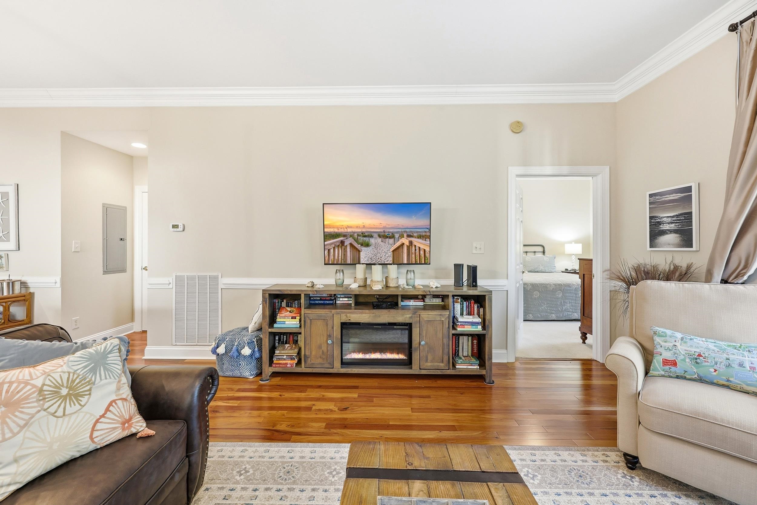 Welcome to this beautiful 4-bedroom, 3-bath first-floor residence in the desirable Green Haven community. Ideal as a primary home, vacation getaway, or investment property, this spacious villa features an open-concept layout with hardwood floors in the main living areas, tile in the kitchen, and comfortable carpeting in the bedrooms. The kitchen is designed for cooking and entertaining, offering granite countertops, stainless steel appliances, generous prep space, and a custom tile backsplash. A wet bar with its own backsplash and refrigerator adds extra convenience. Enjoy outdoor living from two porches—one screened for relaxing evenings and one open for soaking up the sun. The home is being sold fully furnished and includes a one-car garage equipped with an additional refrigerator and freezer. (Golf cart available separately.) Additional highlights include a Jack-and-Jill bath connecting two guest rooms, a double-stacked washer and dryer, TVs in every bedroom, brand-new adjustable king beds in the primary-side bedrooms, and fresh interior paint throughout. HOA membership provides access to Litchfield by the Sea amenities, including a private beach club, pool, tennis courts, fishing dock, and scenic bike paths. Overlooking Reserve golf course views and surrounded by peaceful natural scenery, this villa offers exceptional privacy while remaining close to dining, shopping, boating, golf, and Pawleys Island beaches. A rare opportunity for full-time living, a second home, or a rental property—schedule your showing today!