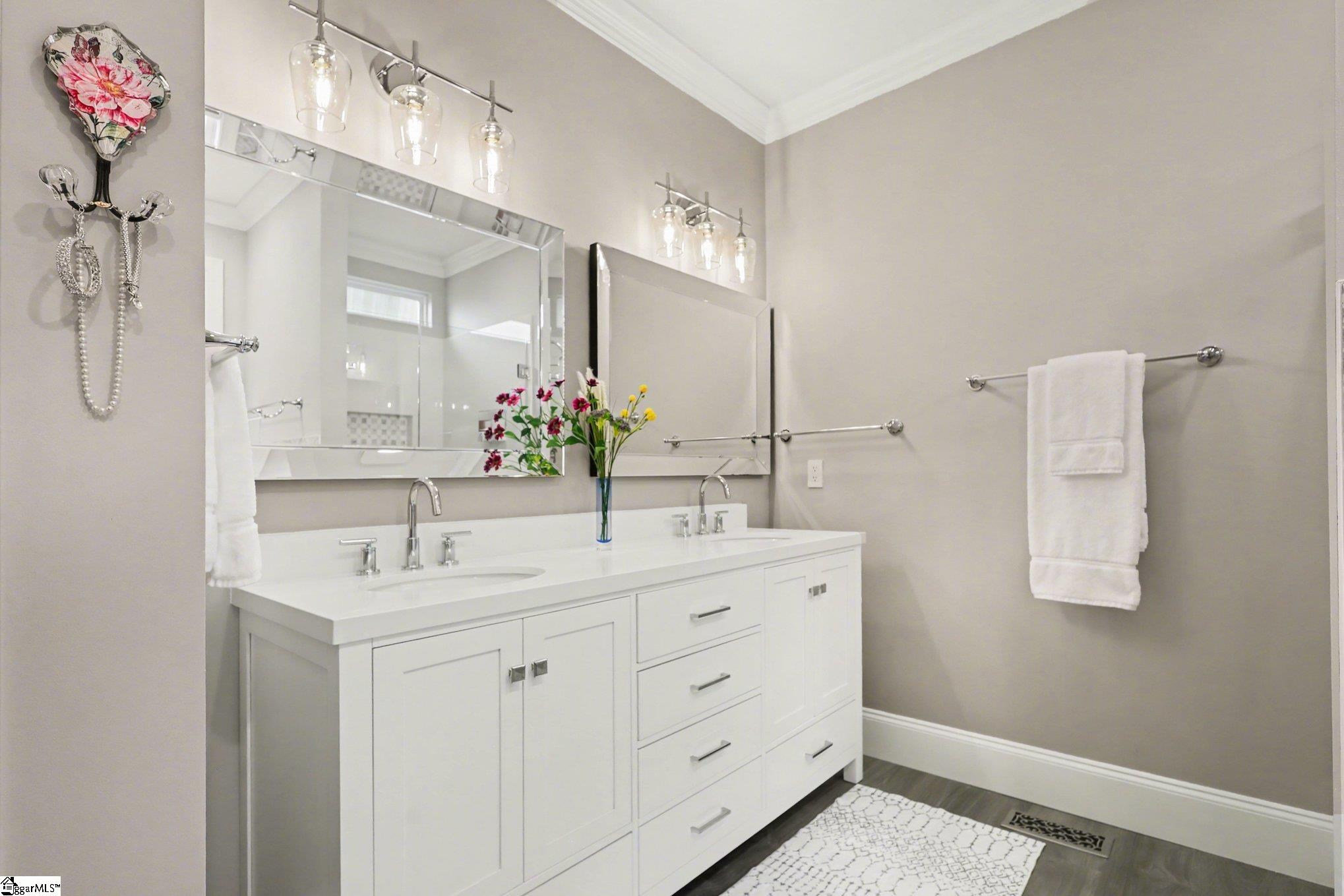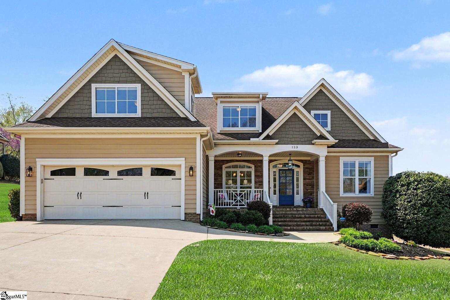 Elevated Living in Castle Rock Awaits!! True to its name, 123 Elevation Court presents a refined lifestyle set above it all—where fresh mountain air, scenic Blue Ridge mountain views, and beautifully curated upgrades come together in one exceptional home. This stylishly updated 4-bedroom, 3-bath home has been thoughtfully renovated and adorned with over $70,000 in premium design upgrades, showcasing a true commitment to luxury and attention to detail. Nestled in Greer’s sought-after Castle Rock community—known for its picturesque mountain views, larger lots, and distinctive custom homes—this property features refined living in a serene setting. Gleaming wood floors and 18-ft cathedral ceilings greet you as you enter from the charming front porch. The flexible 1.5-story floor plan allows the ease of main-level living, with an upper-level retreat featuring a private bedroom, full bath, and spacious flex room—ideal for guests, a home office, or media space. A huge unfinished room just off the flex room provides exceptional walk-in storage space, a rare and valuable feature. At the heart of the home, the kitchen has been stylishly refreshed with new quartz countertops, new stainless steel appliances to accompany the Bosch dishwasher, a new reverse osmosis filtration system providing the freshest and cleanest water, and fresh paint, creating a bright and inviting space for everyday living and entertaining. The primary suite truly stands out, featuring 15-ft ceilings and a complete bath remodel with new quartz countertops, soft-close doors and drawers, and a soaking tub. The stunning walk-in shower boasts striking marble and oversized porcelain tiled walls with multiple showerheads, bench seating, and a newly added transom window that fills the space with natural light. Secondary baths have also been completely remodeled with upgraded quartz countertops, oversized porcelain tiled shower walls, new vanities, hardware, lighting, and added transom shower windows—carrying a cohesive, upscale feel throughout the home. Additional enhancements include new premium carpet and padding in the bedrooms, new ceiling fans, new lighting inside and out, cellular shades, new glass patio doors, and remote-controlled shades in the great room and primary bedroom for added comfort and convenience. All appliances convey, including a new Electrolux front-load washer and dryer, making this home truly move-in ready. From the generously sized deck, enjoy views of the level backyard with ample space for outdoor living and comfortable spacing between neighboring homes. The wider two-car garage features extra room for storage and includes an interior storage closet. Nothing more to do here - even the HVAC system was recently replaced. With low annual HOA dues and a long list of thoughtful upgrades, this striking home presents an exceptional opportunity to enjoy updated, refined living in one of the area’s most appealing communities. This home must be experienced in person to be fully appreciated—schedule your private tour today! ***ALL THIS PLUS A NEARLY NEW JOHN DEERE RIDING MOWER WILL CONVEY WITH THE PROPERTY per an accepted contract***
