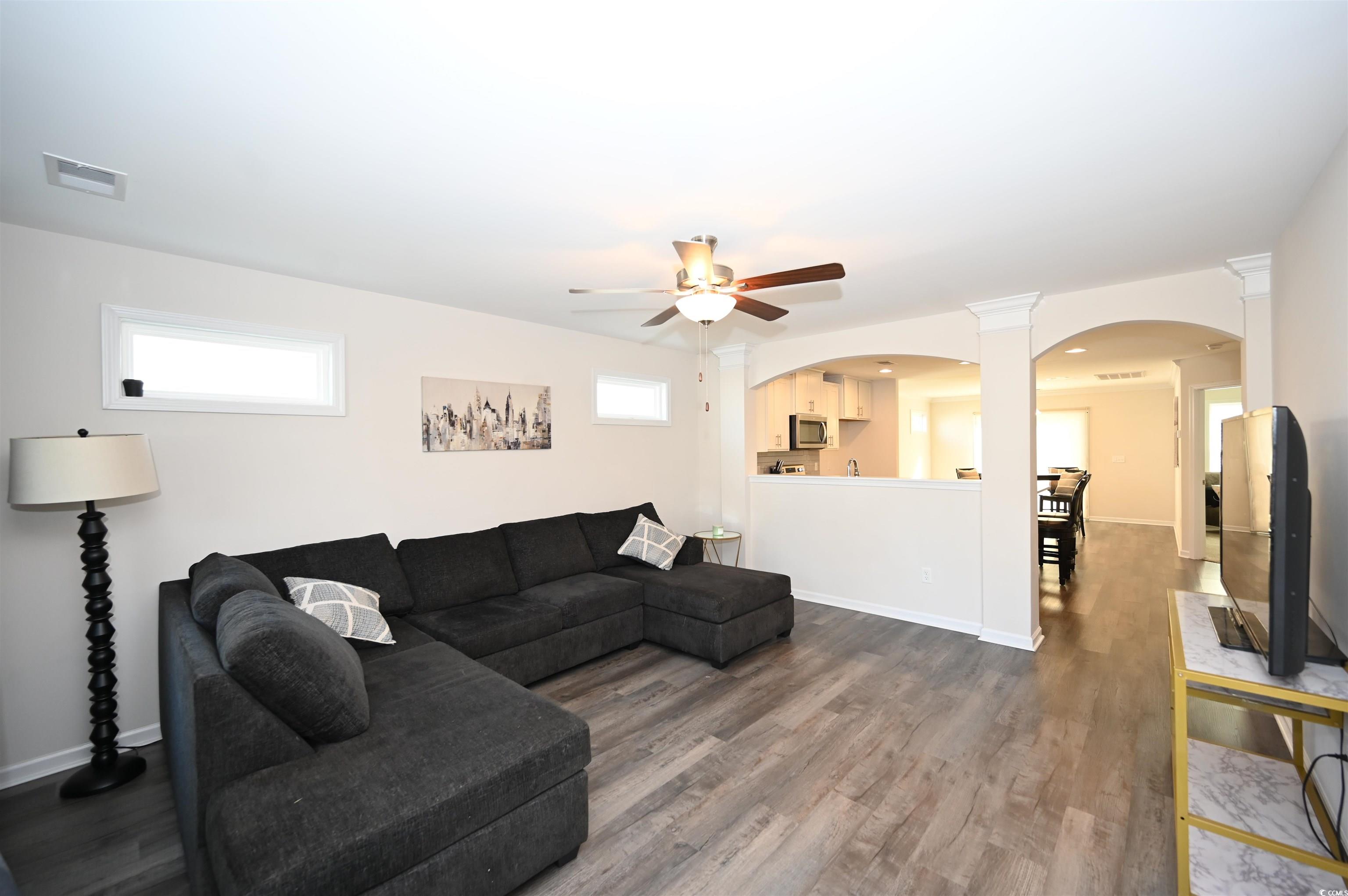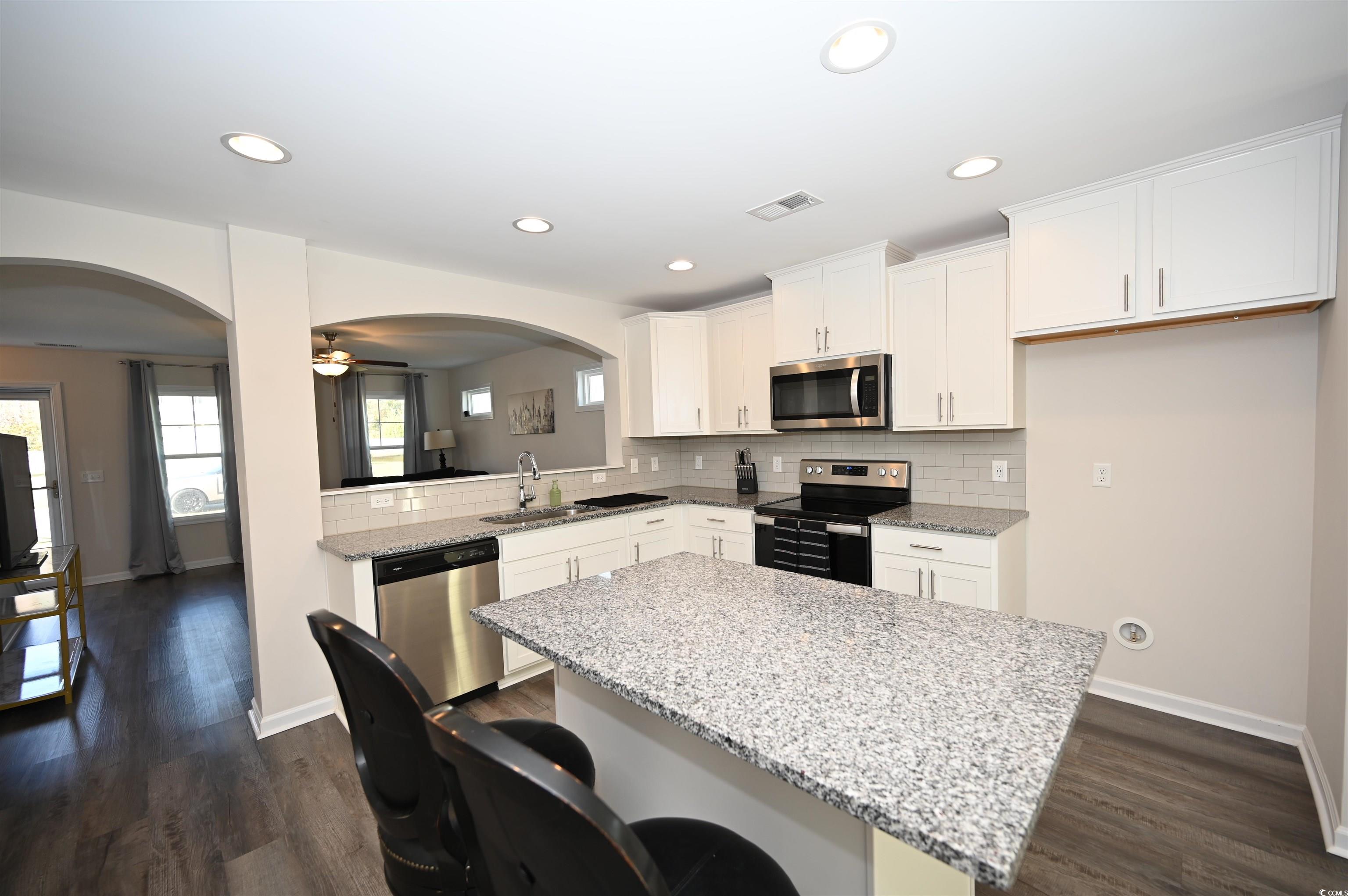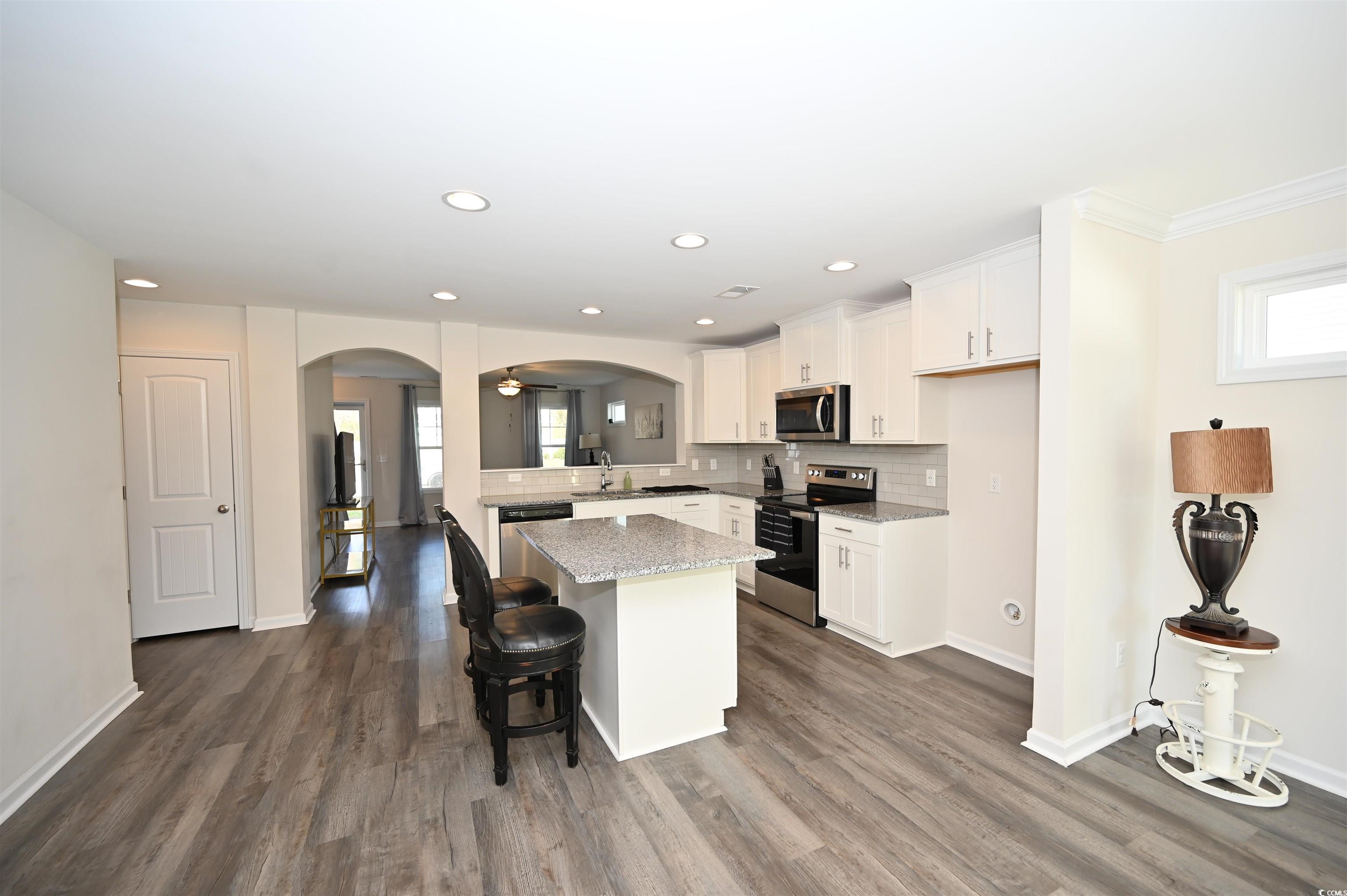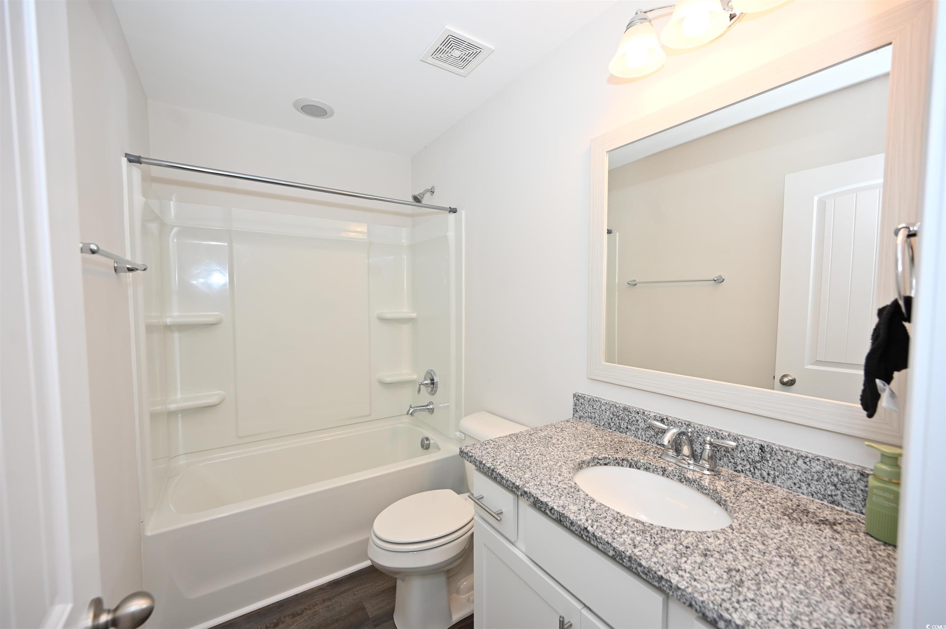 Beautiful three bedrooms, two full bathrooms, and one half bathroom, home with a fantastic layout! The primary suite is conveniently located on the first floor and features two spacious walk-in closets and a well-appointed bathroom with double sinks and granite countertops. The kitchen offers plenty of cabinet space, granite countertops, and a pantry, making it perfect for everyday living and entertaining. A half bath for guests and a large laundry room complete the downstairs level. Upstairs you’ll find two additional bedrooms, a full bathroom, and a walk-in attic that provides easy access and excellent storage options. There is no shortage of storage throughout this home! Large backyard! Located just approximately 19 minutes from the beach, and close to shopping, dining, golf, and all the entertainment that North Myrtle Beach, SC has to offer. Buyer is responsible for all measurement verifications.