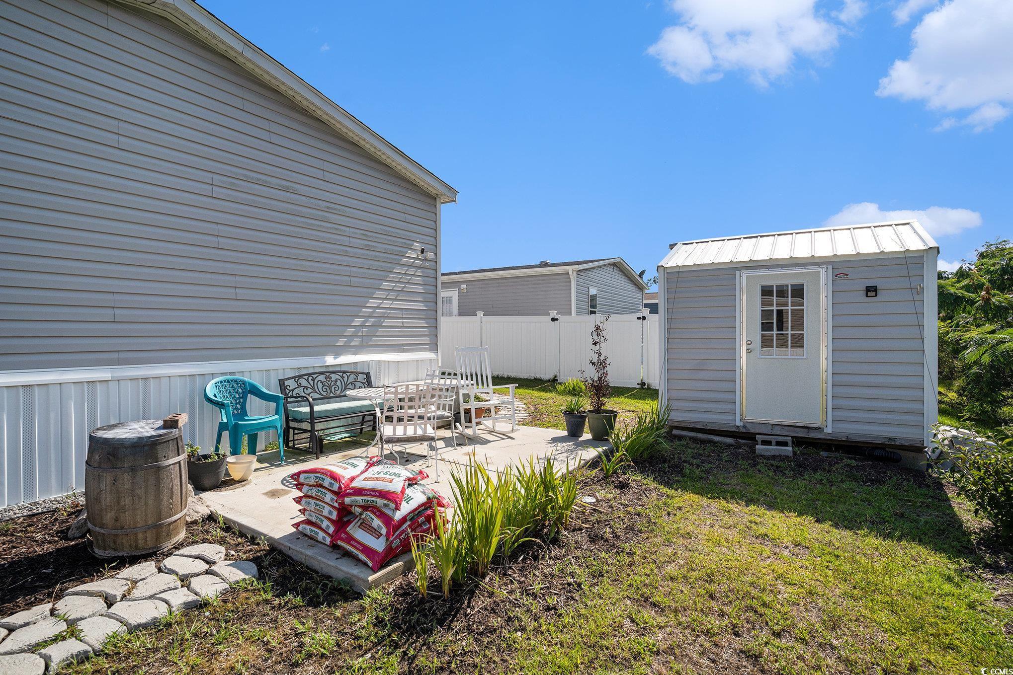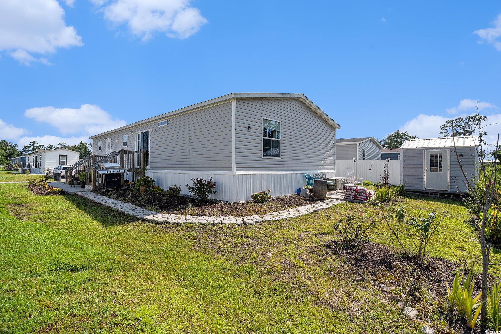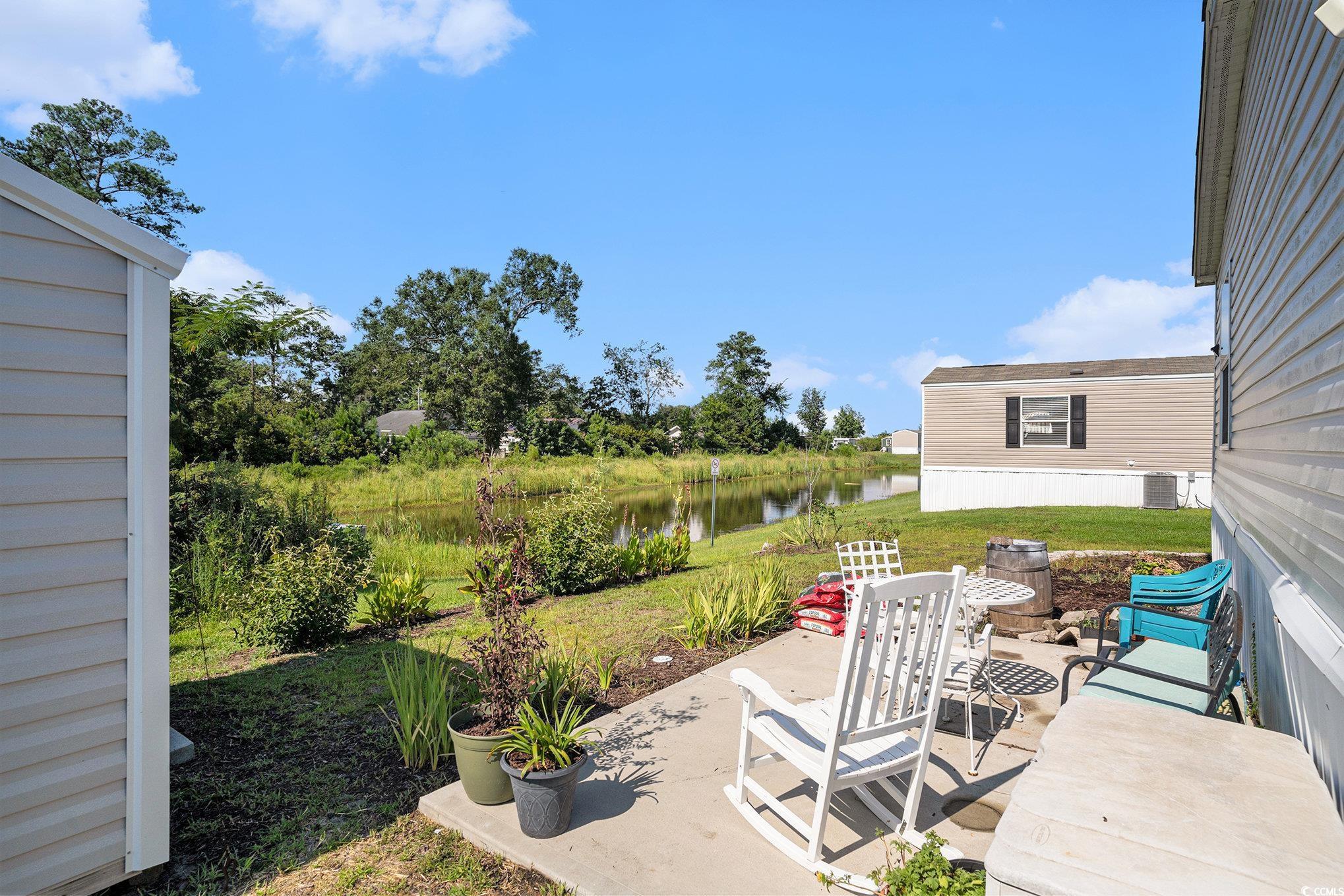 Welcome to Market Village! This 3 bedroom, 2 bath home is conveniently located near Market Common, golf courses, and great shopping and dining options. As you walk through the front door you're greeted with an open floor plan flooded with natural light. In the living room you'll find laminate flooring and built in shelves. The kitchen features ample cabinetry, a large pantry, and plenty of counter space. The master bath includes dual vanity and garden tub. Constructed with traditional sheetrock walls for a solid, residential feel throughout the home. Enjoy tranquil views of the pond from your 10x12 back patio, a peaceful spot to sip coffee in the morning or unwind in the evening. There is also an 8x10 shed out back with plenty of storage space. Schedule your showing today!