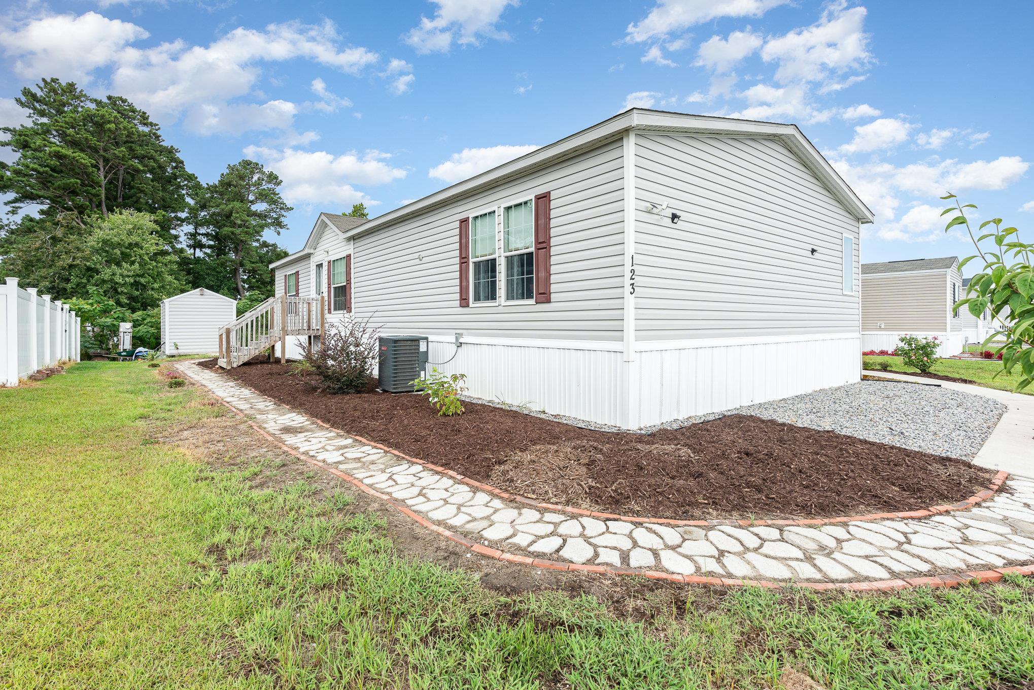 Discover your peaceful coastal haven just minutes from the beach, Market Common, Broadway at the Beach, and some of the area’s finest golf courses. This beautifully maintained 3-bedroom, 2-bath modular home offers the perfect blend of modern comfort and tranquil living. Step inside to an inviting open-concept floor plan filled with natural light, ideal for both everyday living and entertaining. The spacious kitchen is a chef’s delight, featuring ample cabinetry, a large pantry, and seamless flow into the dining and living areas. The primary suite serves as a private retreat, complete with a luxurious en-suite bathroom featuring a soaking tub, walk-in shower, and dual vanities. Two additional generously sized bedrooms provide flexibility for guests, family, or a home office. Enjoy outdoor living at its finest in your private backyard oasis overlooking a serene pond, perfect for relaxing, gardening, or birdwatching. The home also features a 10’ x 12’ rear patio ideal for outdoor entertaining, along with an 8’ x 10’ storage shed that conveys, offering excellent additional storage space. Constructed with real drywall walls and designed for comfort and functionality, this home combines elegance, convenience, and a peaceful connection to nature. Why rent when you can own? Schedule your private showing today and experience this exceptional home and lifestyle for yourself.