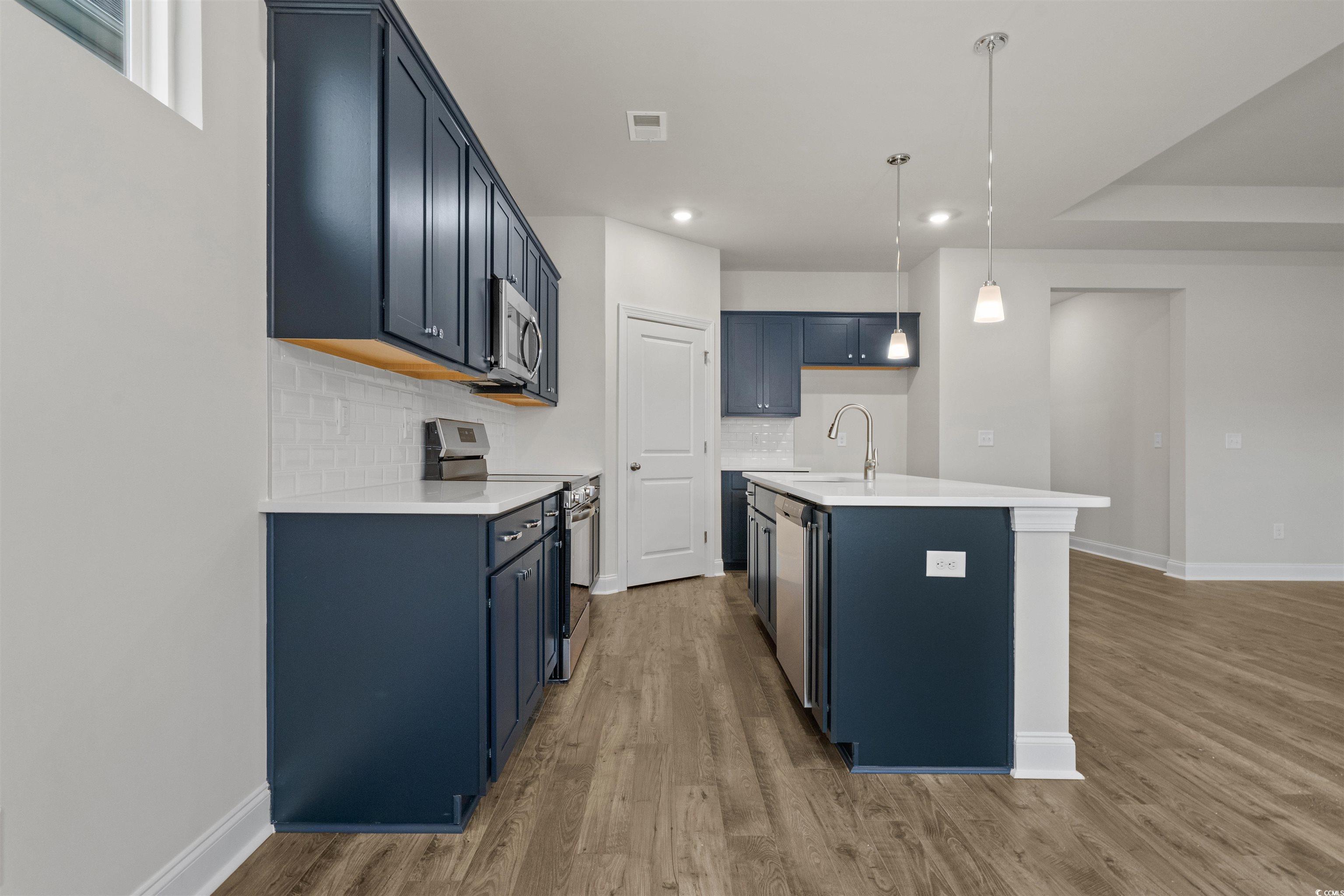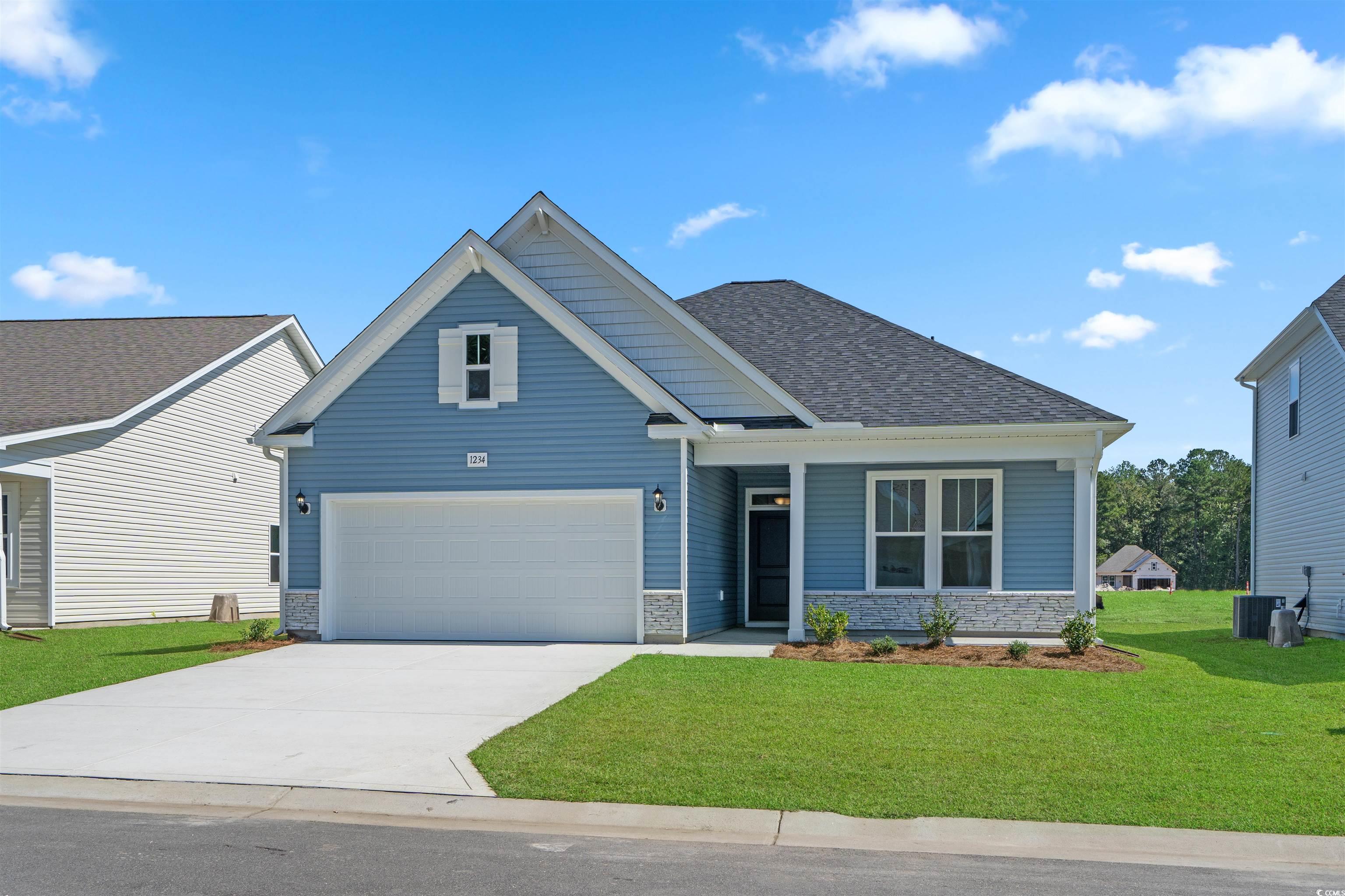Welcome home to Calabash Station our beautiful community in the heart of Coastal Calabash NC. This Harmony floor plan boast 3 bedrooms, 2 full baths and a study with French doors, 3 extra windows in the casual dining nook and much more. This home has both a covered front and back porch. 2 car garage, full landscaping package with irrigation. 30-year architectural shingles. Our design team has added: Laminate flooring in the living area. Tile in the bathrooms. Upgraded lighting and plumbing fixtures. Color selections: Admiral blue cabinets with brushed nickel handles and pulls. White subway backsplash. Upgraded Quartz in the Kitchen and baths. Tile flooring in the bathrooms. Exterior is Mystic blue with Glacier white accents and coastal stone. Too many features to list. Come by and visit us and tour all our homes. Ready now. Fantastic location with easy access to 14 golf courses within a 7-mile radius and close to both North and South Carolina beaches, restaurants and shopping! “Photos are actual Harmony home. (Home and community information, including pricing, included features, terms, availability and amenities, are subject to change prior to sale at any time without notice or obligation. Square footages are approximate). Pictures, photographs, colors, features, and sizes are for illustration purposes only and will vary from the homes as built.)