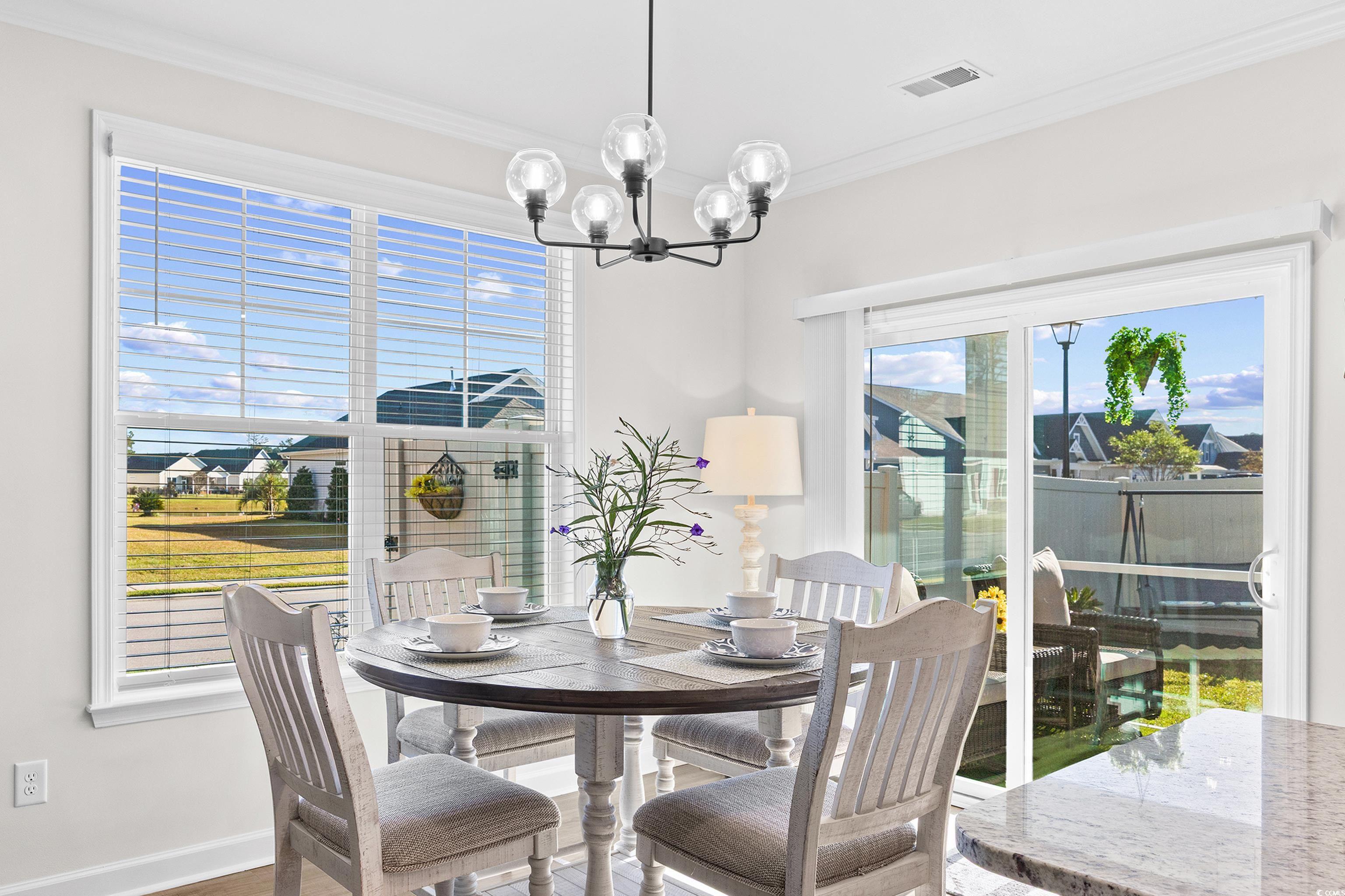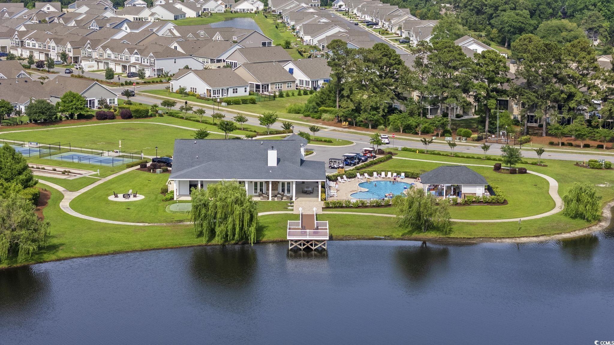 Beautifully maintained like new home in Cypress Village in Little River on large corner lot with fenced back yard; This Three bedroom three bath home features Luxury Vinyl Plank flooring throughout open floor plan concept home, carpet in bedrooms, crown molding, gas fireplace featuring a wood mantle and Italian Slate Surround. The kitchen includes beautiful tile backsplash, a nice sized pantry, stainless steel appliances, granite countertops, gas cooktop, lots of cabinet space and lighting! With a lake view from dining and kitchen; The primary bedroom is downstairs with ensuite bathroom that features double vanity, 5ft tiled shower with glass door, linen closet for extra space and large walk in closet. Laundry room with shelving and a nice granite countertop for folding and storage; Upstairs you will find a cozy private guest suite with bedroom and full bath with tiled walk in shower; Walk in attic space as well!! Home has a beautiful, fenced back yard with irrigation system and hot tub that conveys for a private oasis. Back porch is screened in for relaxing outside; Home also features gas tankless water heater, and full two car garage; Cypress Village offers resort-style amenities including Pickleball, fitness cntr, grilling, lrg pool, clubhouse, and outdoor fireplace. Very friendly community hosts activities weekly at clubhouse!! HOA includes recreational facilities, annual power washing of home, front and side lawn care, and trash pickup. Short drive to Cherry Grove or Sunset Beach and historic Little River waterfront which hosts Blue Crab and Shrimp Festivals each year. Call for showing today!!
