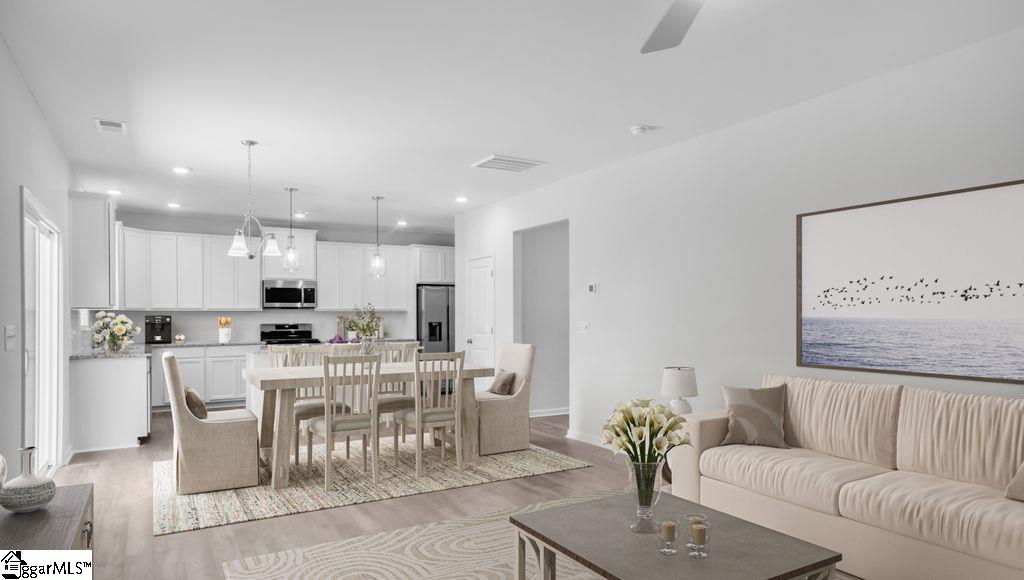 Step into The Pinewood and experience a home designed with effortless living in mind. The spacious, open layout on the main level flows seamlessly, creating the perfect setting for both everyday life and entertaining. The airy kitchen, complete with a butler's pantry, opens into a sunlit morning room, making it an entertainer’s haven. The cozy living area, anchored by a warm fireplace, invites family gatherings and extends gracefully to a charming front porch and a private rear patio—perfect for outdoor relaxation. Upstairs, four generously sized bedrooms await, each featuring walk-in closets that provide ample storage. The expansive primary suite is a true sanctuary, boasting a vaulted ceiling, a serene sitting area, and an ensuite bathroom with dual sinks for extra convenience. Elegant oak stairs add a refined touch, seamlessly connecting the home’s levels. With two full baths and a half bath, The Pinewood isn’t just a house—it’s a thoughtfully crafted lifestyle, blending comfort, style, and lasting memories. Welcome to The Pinewood, a single-family home in the sought-after Bridgeport neighborhood of Greenville, South Carolina. This community combines peaceful suburban living with easy access to downtown Greenville’s dining, shopping, and entertainment. Bridgeport offers great amenities, including a pool, clubhouse, and walking paths connected to the Swamp Rabbit Trail. Plus, it’s near top-rated schools. Schedule a tour today to see if The Pinewood could be your next dream home. Photos are from a similar home. Contact the Neighborhood Sales Manager today!
