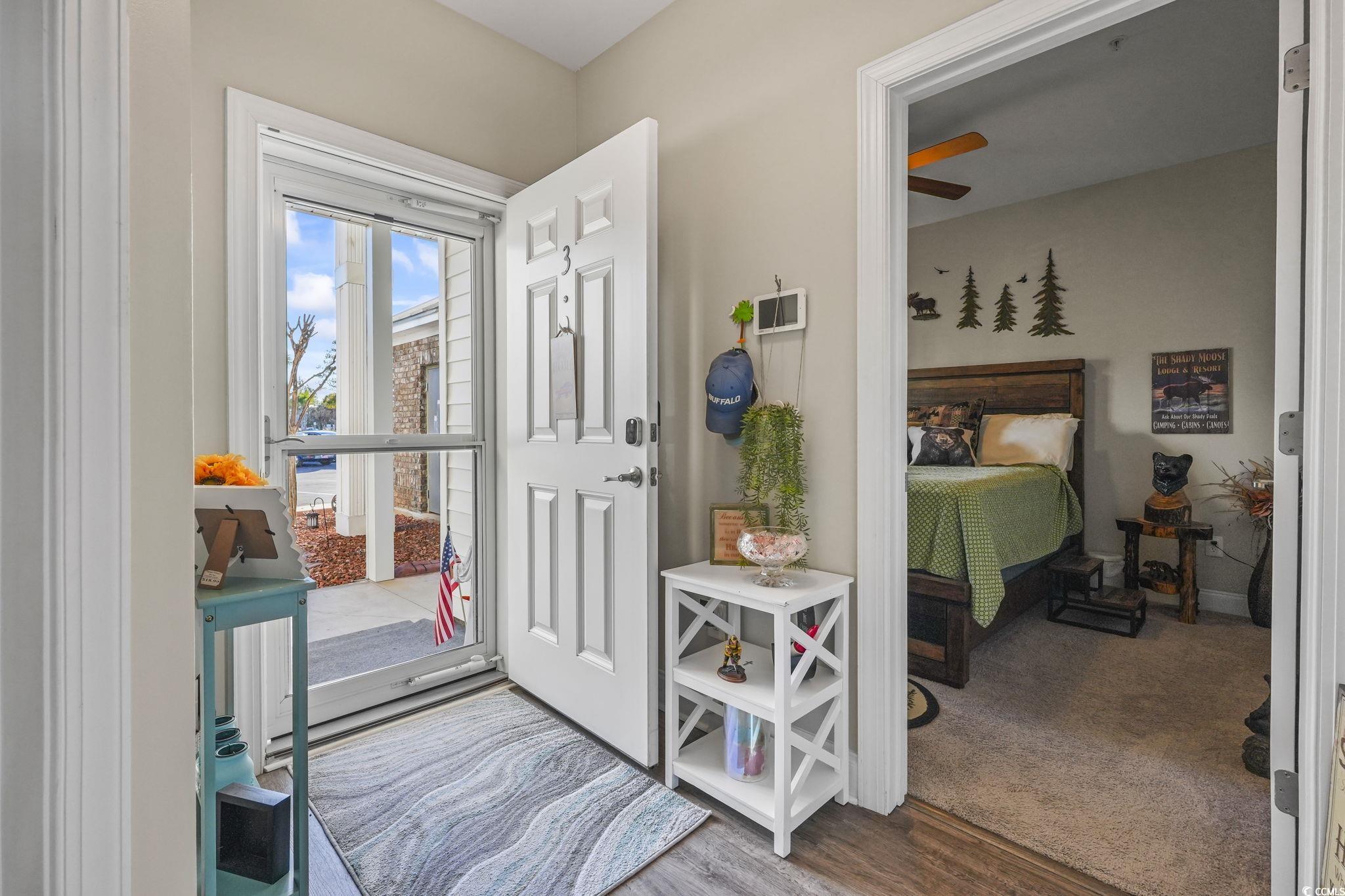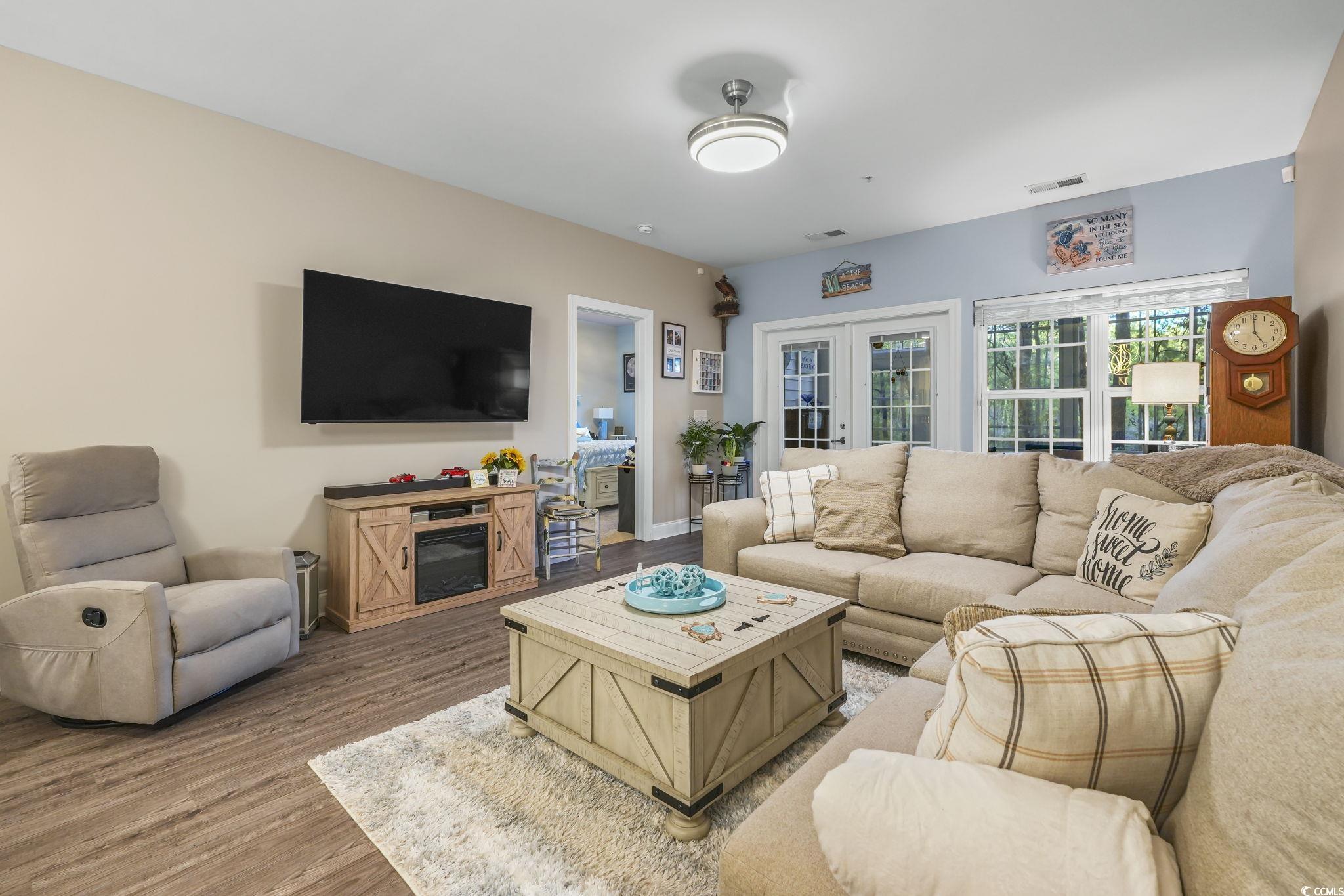 Enjoy easy coastal living in this beautifully updated first-floor, furnished 3-bedroom, 2-bath condo at 124 Birch N Coppice, offering privacy, pond views, and low-maintenance living near the beach. Backing to a wooded backyard with tranquil water views through the trees, this home delivers a rare sense of seclusion while remaining close to everything Myrtle Beach has to offer. Designed with comfort and functionality in mind, the split floor plan provides ideal separation for guests or visiting family. The kitchen features granite countertops, 42" white soft-close cabinetry, stainless steel appliances, and a coastal blue tile backsplash, creating a bright, beach-inspired space perfect for everyday living or entertaining. Updated lighting and ceiling fans enhance the clean, coastal aesthetic throughout. A standout feature is the EZ-Breeze enclosed lanai, offering a versatile year-round indoor-outdoor living space overlooking the expansive backyard, perfect for morning coffee or relaxing evenings. Residents can enjoy the nearby community amenities, including a resort-style pool, cabana, outdoor fireplace, and grilling area, just steps from the unit. This turnkey condo is sold furnished and includes a golf cart, providing easy access to the beach, shopping, and dining - a highly desirable feature for coastal living. Additional highlights include first-floor living with no stairs, private outdoor space, pond views, and a lock-and-leave lifestyle ideal for retirees or second-home owners. Well-suited as a primary residence, second home, or coastal retreat, this property offers the perfect balance of comfort, convenience, and relaxed coastal living in a competitive market.