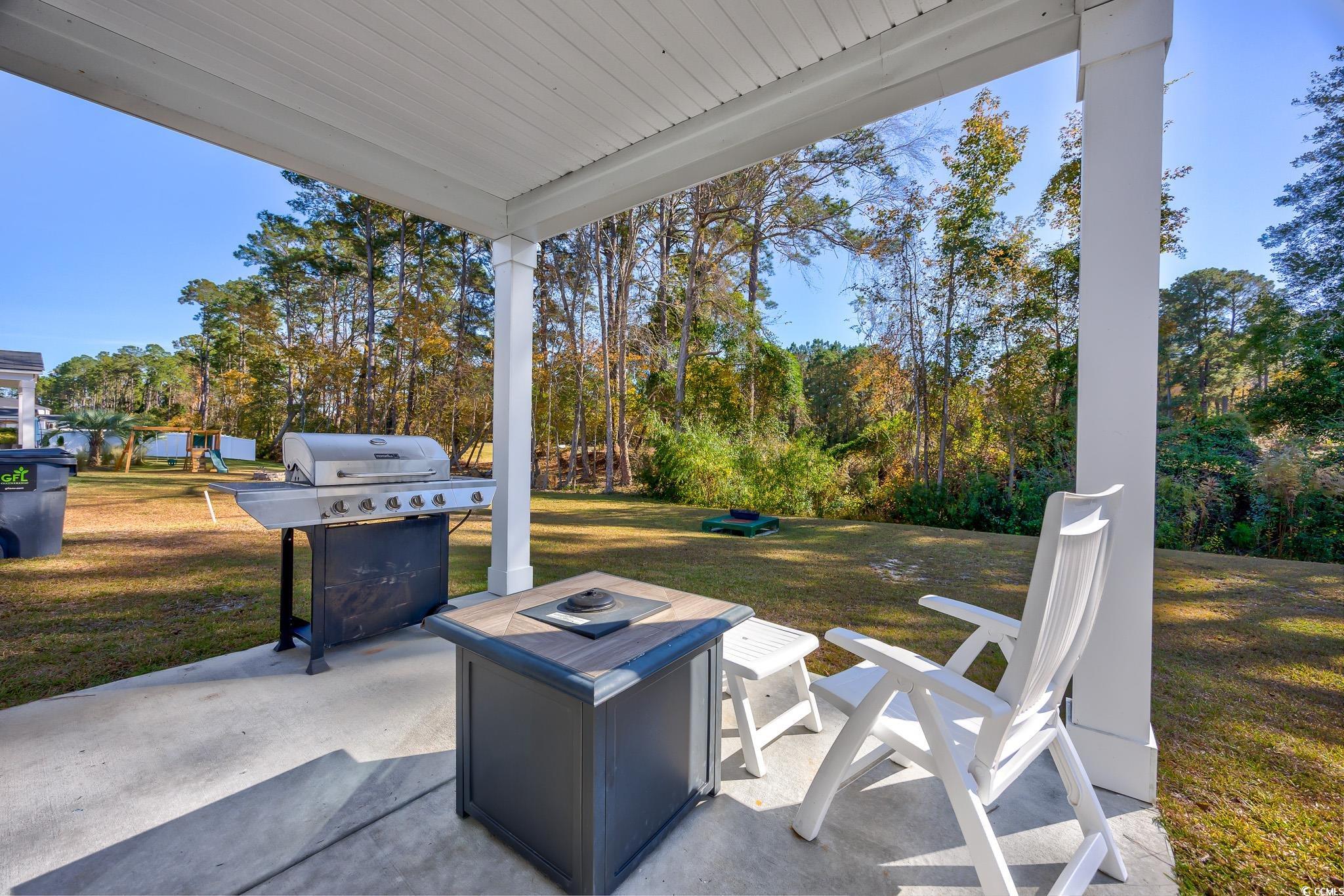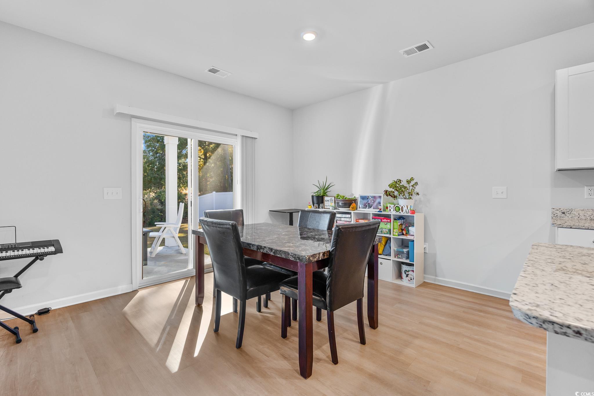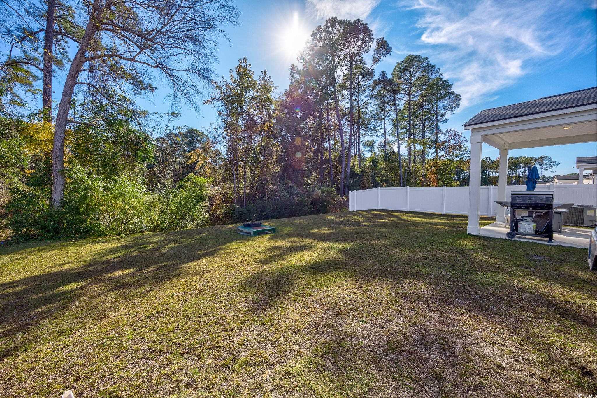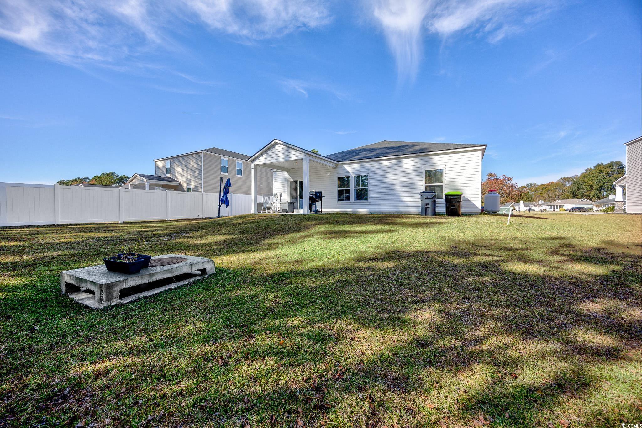 Welcome to this beautiful, open-concept 4-bedroom, 2-bath home, completed in late 2023, located in the desirable The Grove at Carolina Lakes community. This modern home boasts stylish wood-look LVP and carpet flooring, 9-foot smooth ceilings, recessed lighting, and a spacious living/dining room combination that features a sliding glass door opening to a serene covered back patio. From here, enjoy peaceful views of the 5th hole on the Healthland course at The Legends Golf Club. The kitchen is a true highlight, perfect for family gatherings, with a gas range, built-in microwave, dishwasher, and stunning granite countertops. The kitchen island and breakfast bar provide additional space for dining and entertaining, while ample cabinetry and a practical pantry ensure plenty of storage. The master suite offers a private retreat with easy access to the luxurious master bath, which includes dual vanities, a separate water closet, a deluxe step-in shower, a linen closet, and a spacious walk-in closet. This thoughtfully designed home also includes three additional bedrooms, a full guest bathroom, a convenient laundry room, and a two-car attached garage. Enjoy easy access to the beach, golfing, and all the attractions Myrtle Beach has to offer. From vibrant dining options and award-winning shows to public fishing piers and unique shopping experiences along the Grand Strand, there's always something to explore.