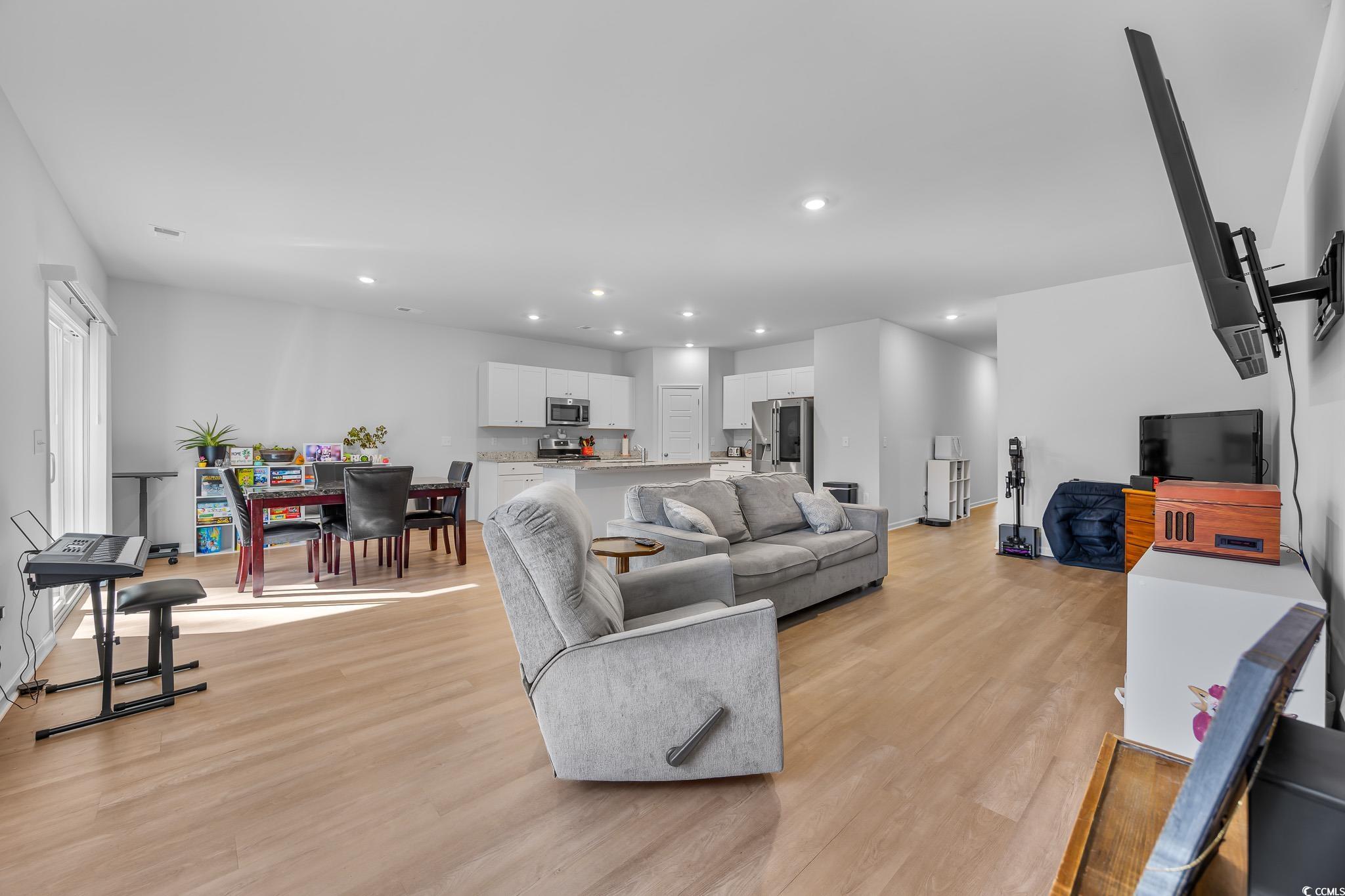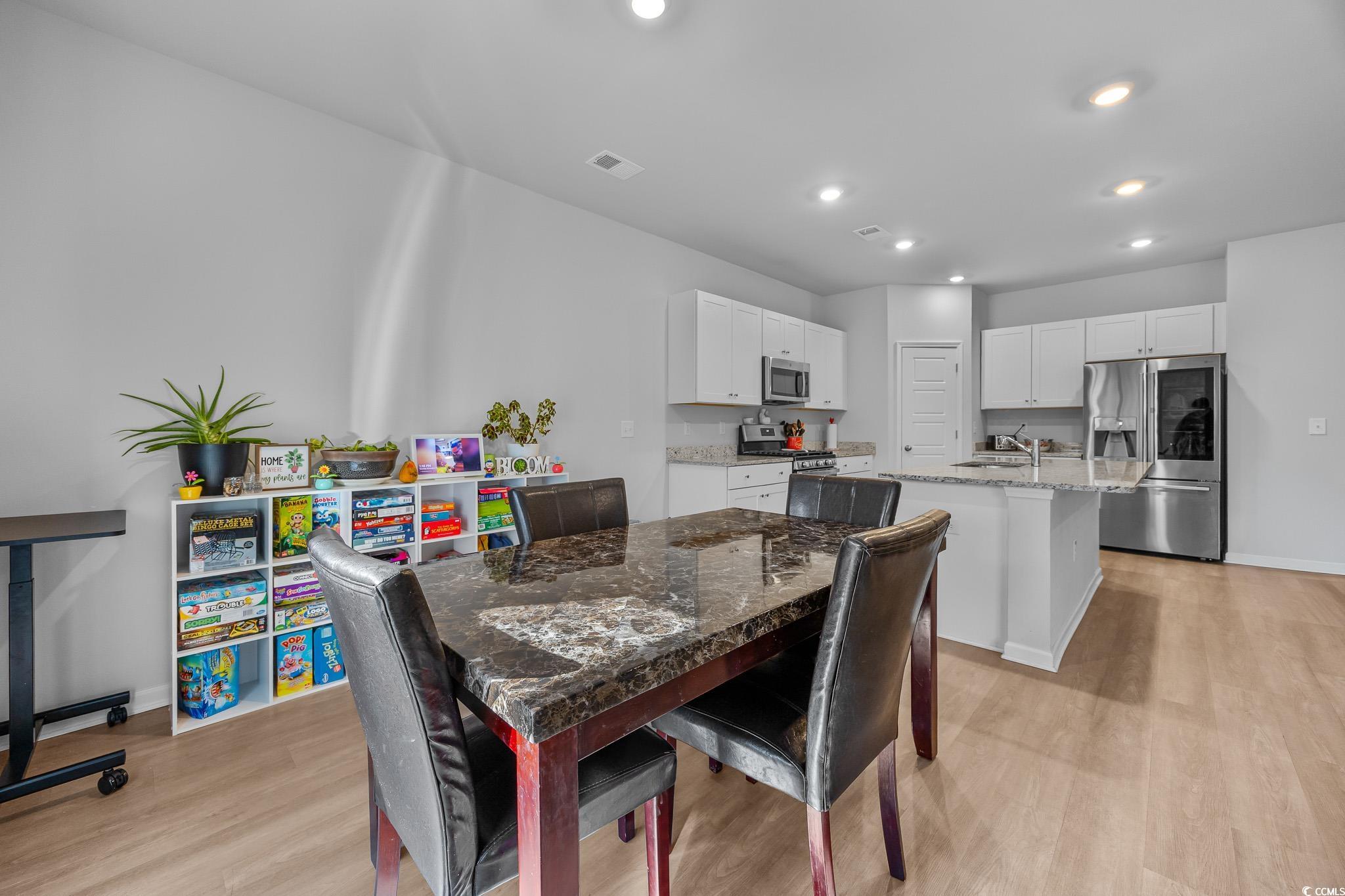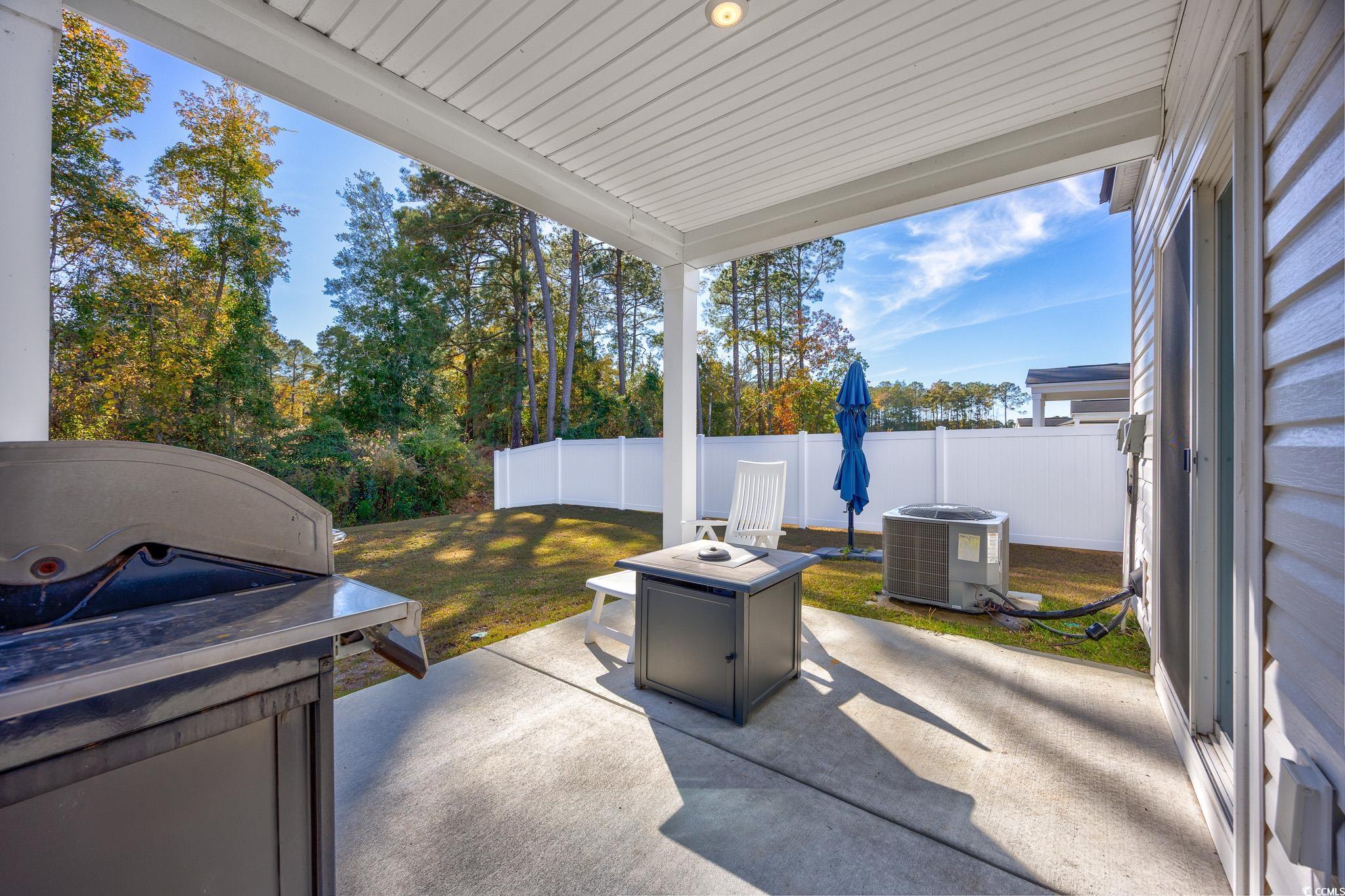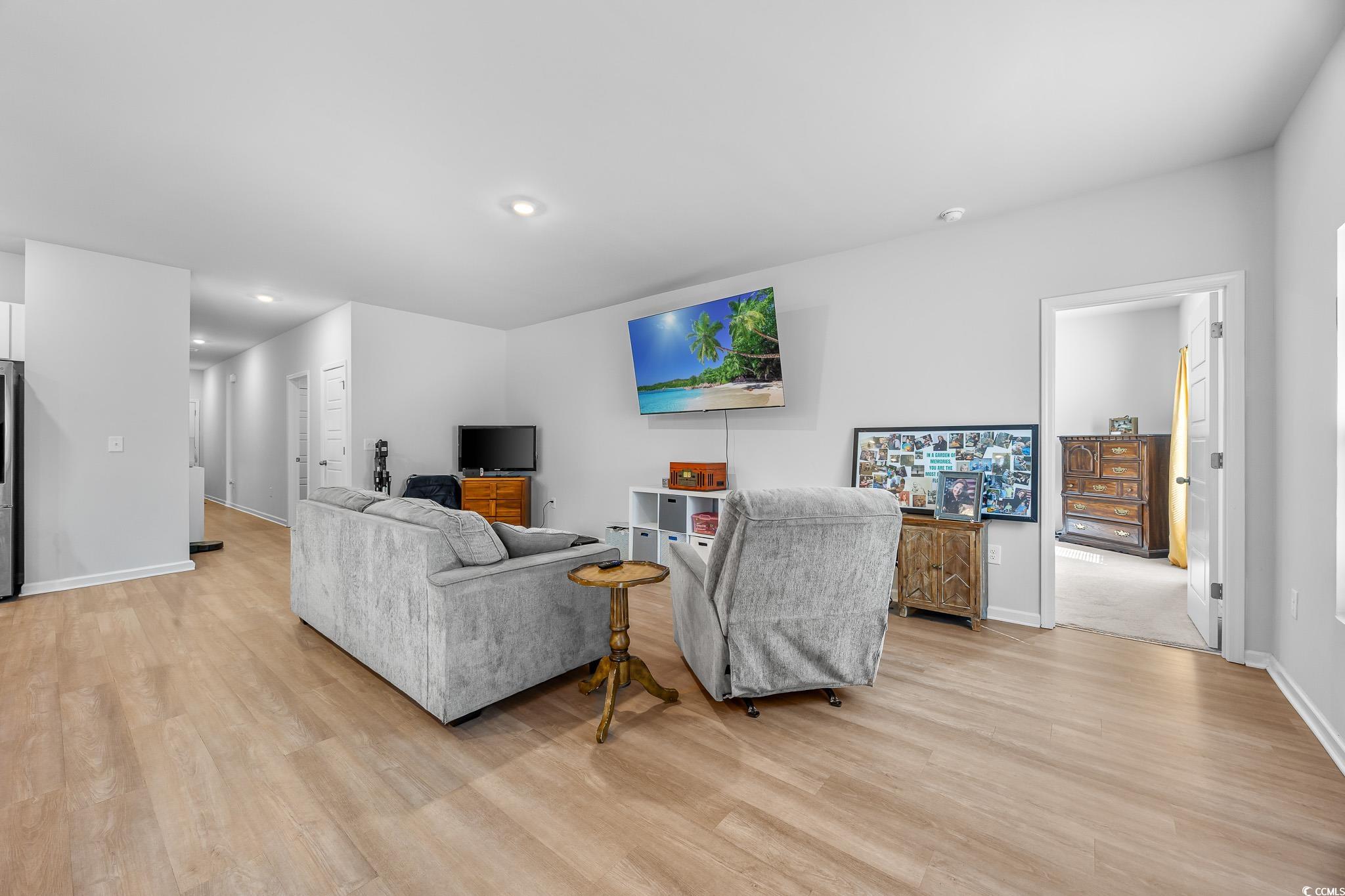 Welcome to this beautiful, open-concept 4-bedroom, 2-bath home, completed in late 2023, located in the desirable The Grove at Carolina Lakes community. This modern home boasts stylish wood-look LVP and carpet flooring, 9-foot smooth ceilings, recessed lighting, and a spacious living/dining room combination that features a sliding glass door opening to a serene covered back patio. From here, enjoy peaceful views of the 5th hole on the Healthland course at The Legends Golf Club. The kitchen is a true highlight, perfect for family gatherings, with a gas range, built-in microwave, dishwasher, and stunning granite countertops. The kitchen island and breakfast bar provide additional space for dining and entertaining, while ample cabinetry and a practical pantry ensure plenty of storage. The master suite offers a private retreat with easy access to the luxurious master bath, which includes dual vanities, a separate water closet, a deluxe step-in shower, a linen closet, and a spacious walk-in closet. This thoughtfully designed home also includes three additional bedrooms, a full guest bathroom, a convenient laundry room, and a two-car attached garage. Enjoy easy access to the beach, golfing, and all the attractions Myrtle Beach has to offer. From vibrant dining options and award-winning shows to public fishing piers and unique shopping experiences along the Grand Strand, there's always something to explore.