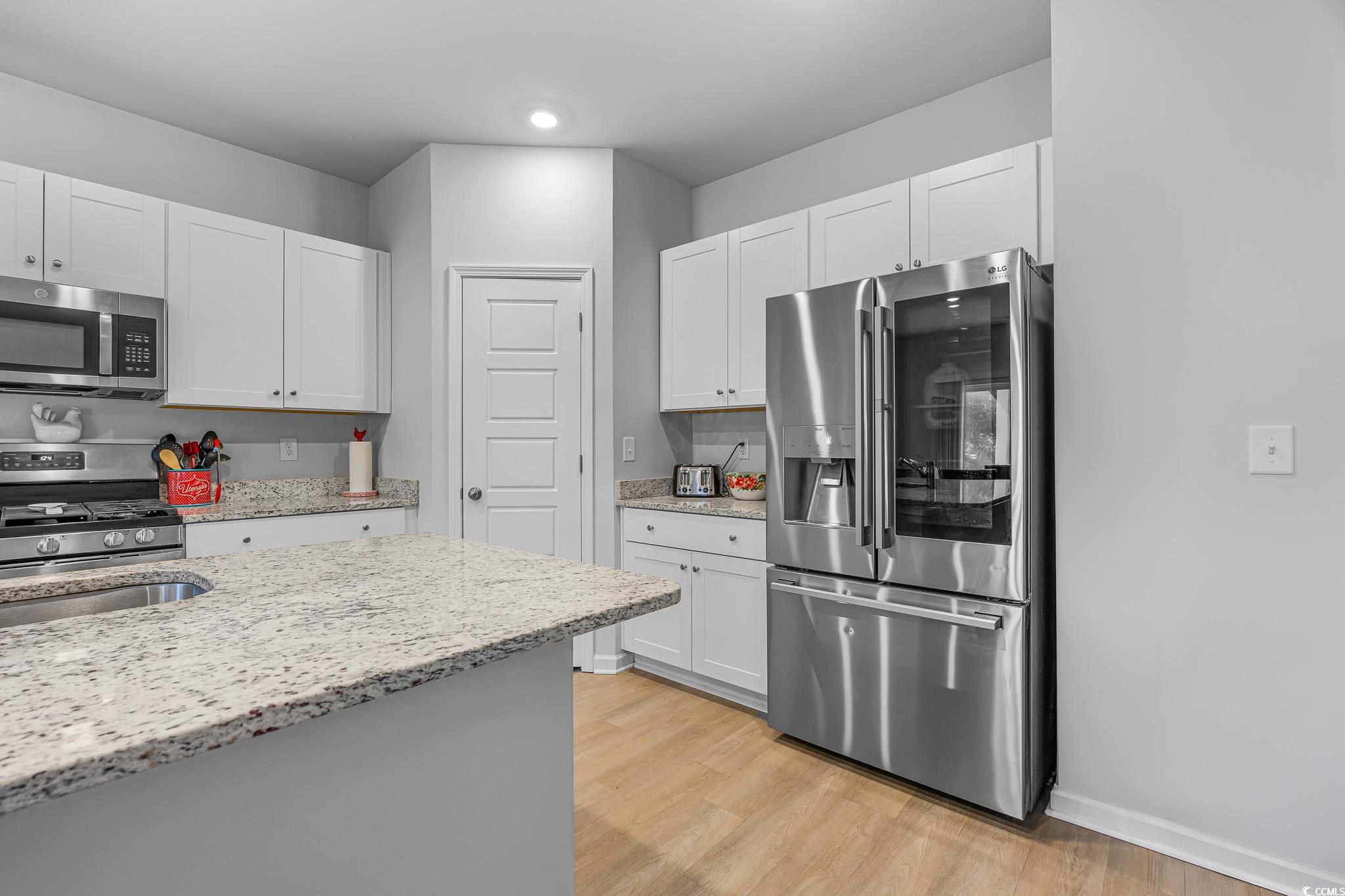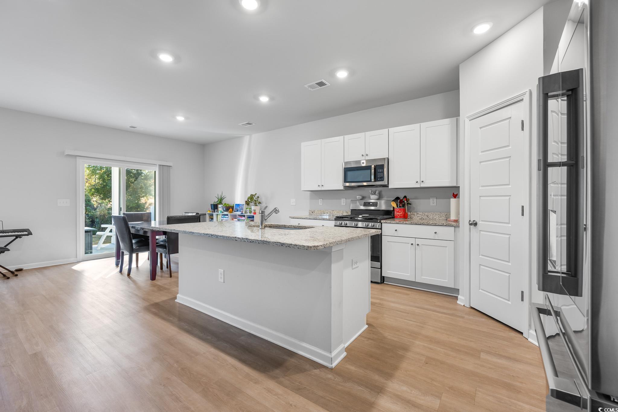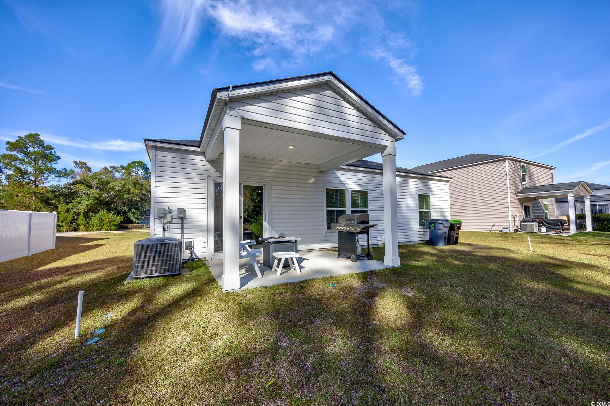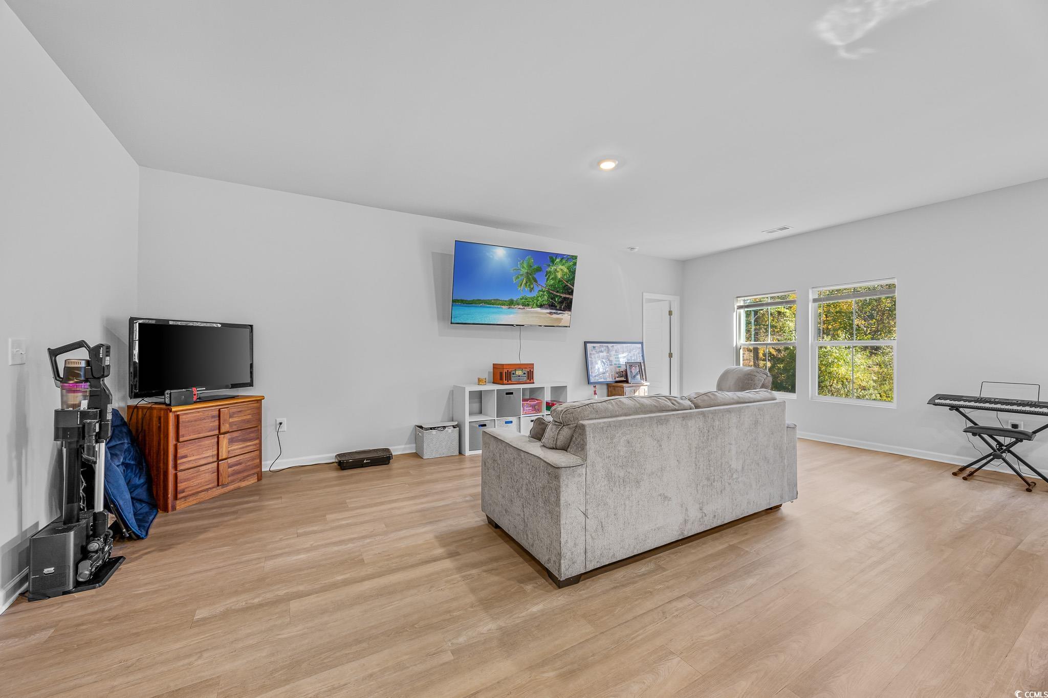 Welcome to this beautiful, open-concept 4-bedroom, 2-bath home, completed in late 2023, located in the desirable The Grove at Carolina Lakes community. This modern home boasts stylish wood-look LVP and carpet flooring, 9-foot smooth ceilings, recessed lighting, and a spacious living/dining room combination that features a sliding glass door opening to a serene covered back patio. From here, enjoy peaceful views of the 5th hole on the Healthland course at The Legends Golf Club. The kitchen is a true highlight, perfect for family gatherings, with a gas range, built-in microwave, dishwasher, and stunning granite countertops. The kitchen island and breakfast bar provide additional space for dining and entertaining, while ample cabinetry and a practical pantry ensure plenty of storage. The master suite offers a private retreat with easy access to the luxurious master bath, which includes dual vanities, a separate water closet, a deluxe step-in shower, a linen closet, and a spacious walk-in closet. This thoughtfully designed home also includes three additional bedrooms, a full guest bathroom, a convenient laundry room, and a two-car attached garage. Enjoy easy access to the beach, golfing, and all the attractions Myrtle Beach has to offer. From vibrant dining options and award-winning shows to public fishing piers and unique shopping experiences along the Grand Strand, there's always something to explore.
