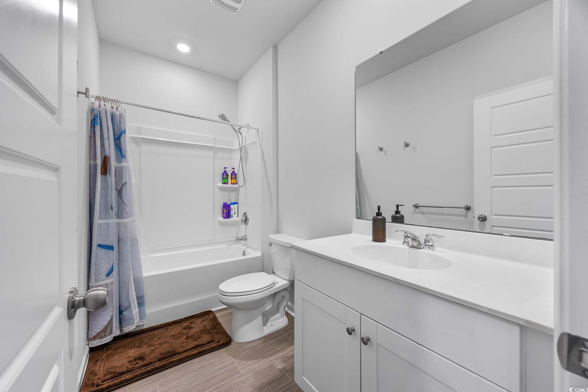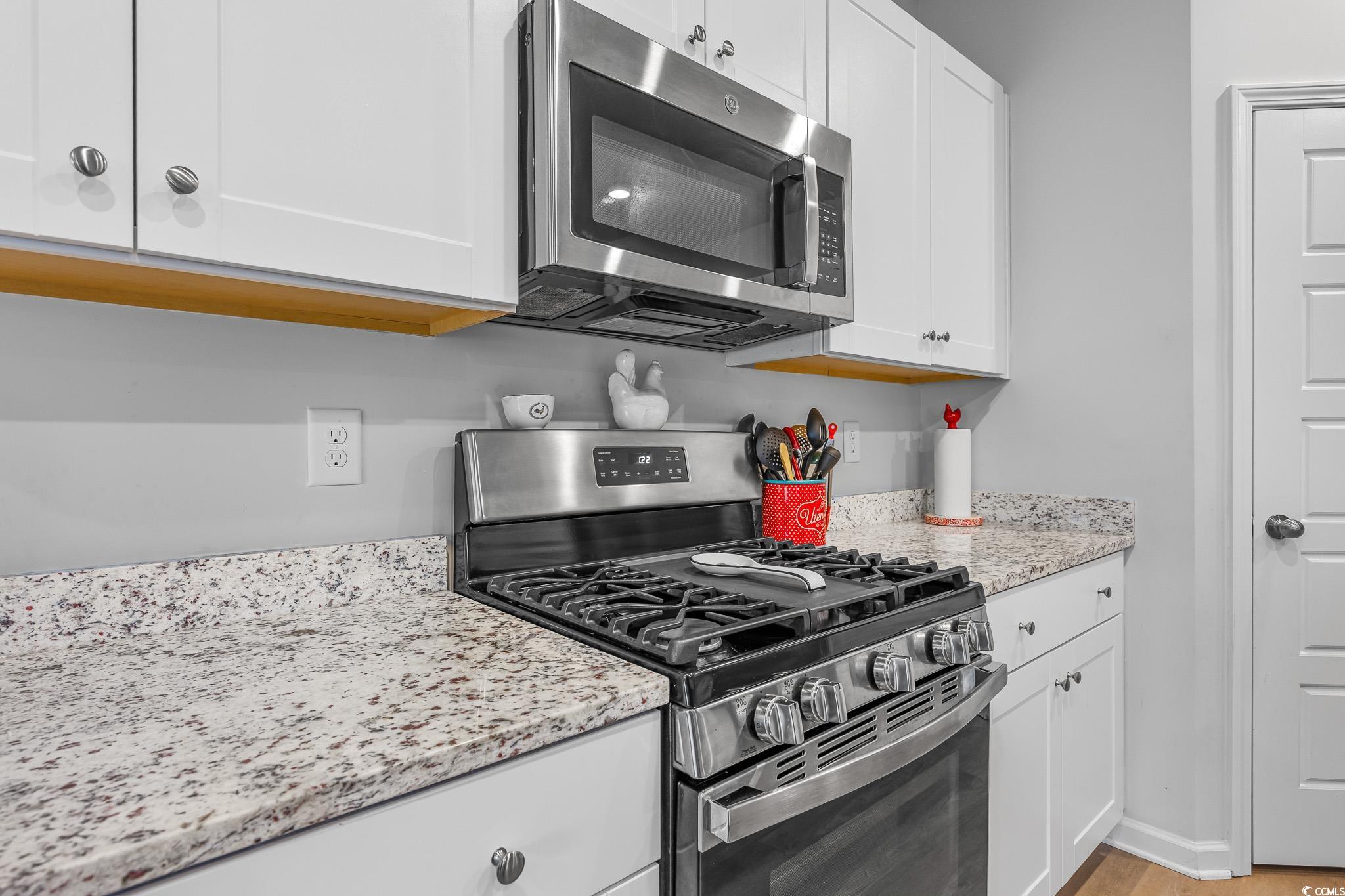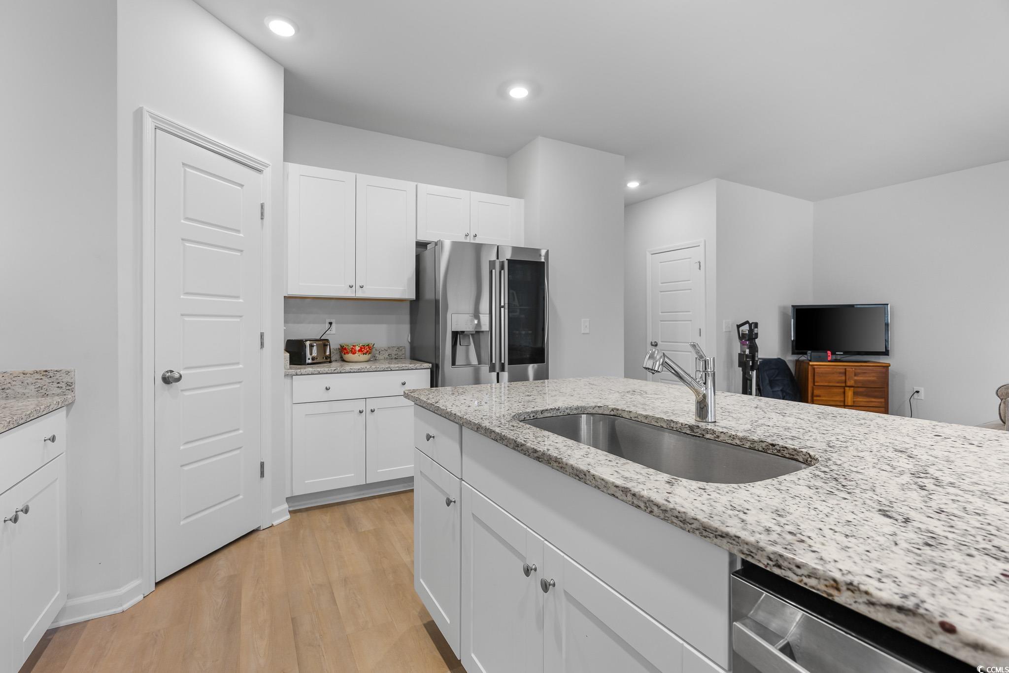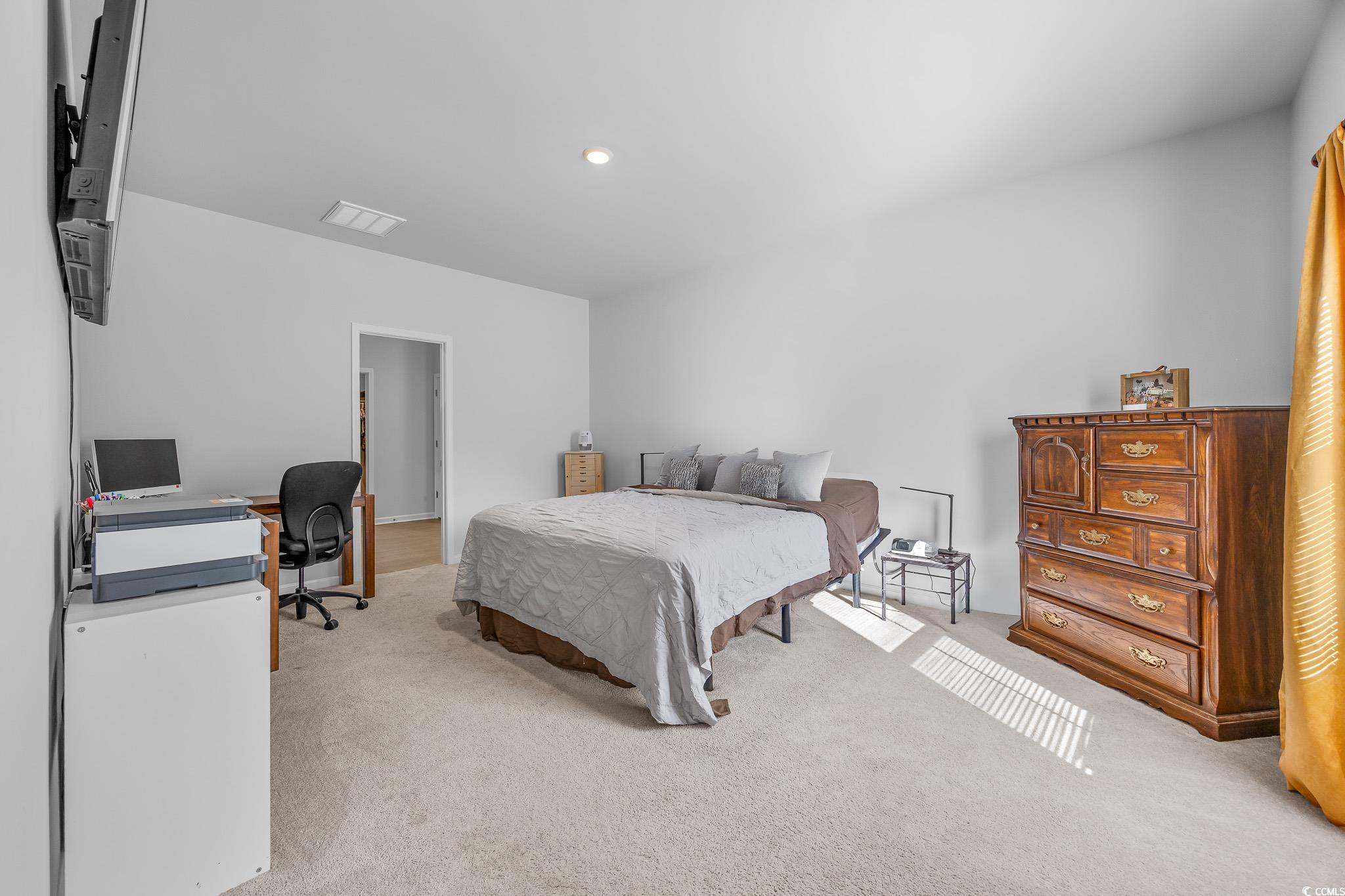 Welcome to this beautiful, open-concept 4-bedroom, 2-bath home, completed in late 2023, located in the desirable The Grove at Carolina Lakes community. This modern home boasts stylish wood-look LVP and carpet flooring, 9-foot smooth ceilings, recessed lighting, and a spacious living/dining room combination that features a sliding glass door opening to a serene covered back patio. From here, enjoy peaceful views of the 5th hole on the Healthland course at The Legends Golf Club. The kitchen is a true highlight, perfect for family gatherings, with a gas range, built-in microwave, dishwasher, and stunning granite countertops. The kitchen island and breakfast bar provide additional space for dining and entertaining, while ample cabinetry and a practical pantry ensure plenty of storage. The master suite offers a private retreat with easy access to the luxurious master bath, which includes dual vanities, a separate water closet, a deluxe step-in shower, a linen closet, and a spacious walk-in closet. This thoughtfully designed home also includes three additional bedrooms, a full guest bathroom, a convenient laundry room, and a two-car attached garage. Enjoy easy access to the beach, golfing, and all the attractions Myrtle Beach has to offer. From vibrant dining options and award-winning shows to public fishing piers and unique shopping experiences along the Grand Strand, there's always something to explore.