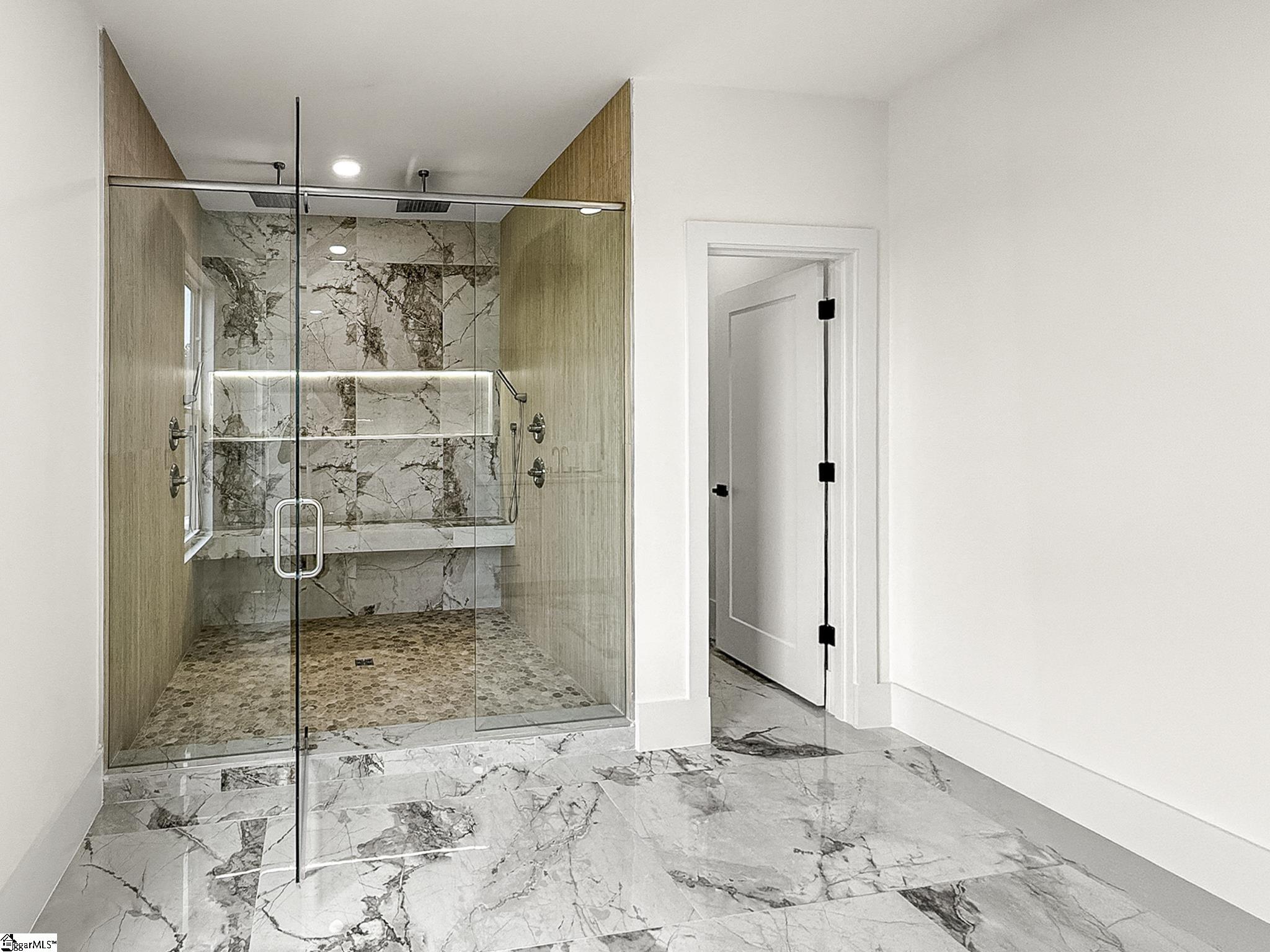 Modern design meets natural beauty in this architecturally striking home offering nearly 3,000 square feet of thoughtfully designed living space. This custom-built residence features an open-concept layout with soaring ceilings, oversized windows, and a statement fireplace wall that anchors the main living area. Natural light fills the space, creating a bright yet warm atmosphere throughout. The kitchen is designed with intention, featuring a unique layout that separates prep, cooking, and gathering zones, centered around a large island that functions as both workspace and social hub. The primary suite offers a spa-inspired bathroom complete with a walk-in shower and custom closet. Additional flexible spaces include an upstairs loft/reading nook and well-appointed secondary bedrooms. Enjoy outdoor living with a covered back porch and patio overlooking peaceful wooded surroundings with nearby water access and views. Conveniently located just 8 minutes from Unity Park and 13 minutes to Downtown Greenville, providing quick access to dining, shopping, and entertainment while maintaining a more private setting. Appliance package (range, dishwasher, microwave, refrigerator) to be installed prior to closing.