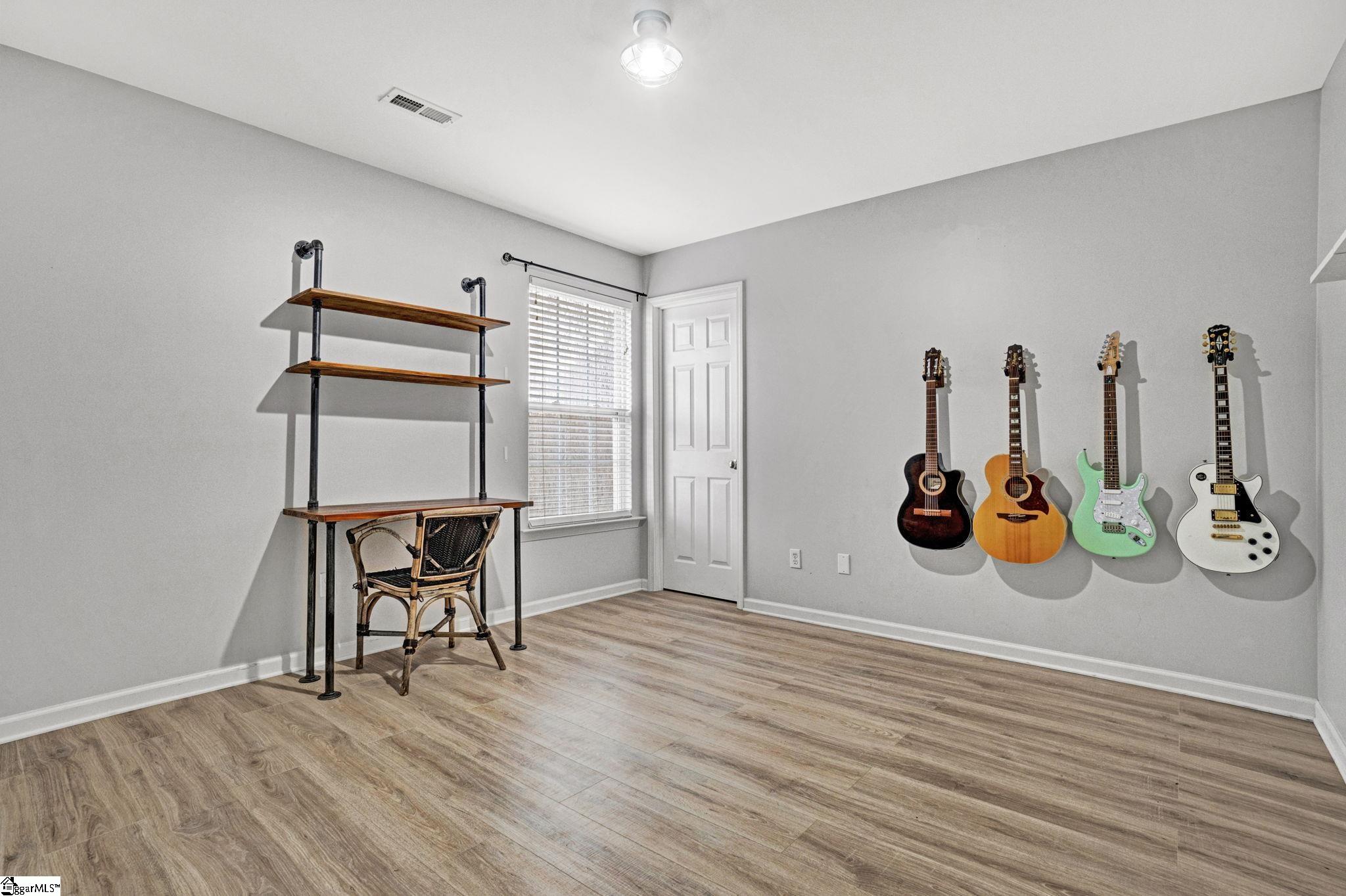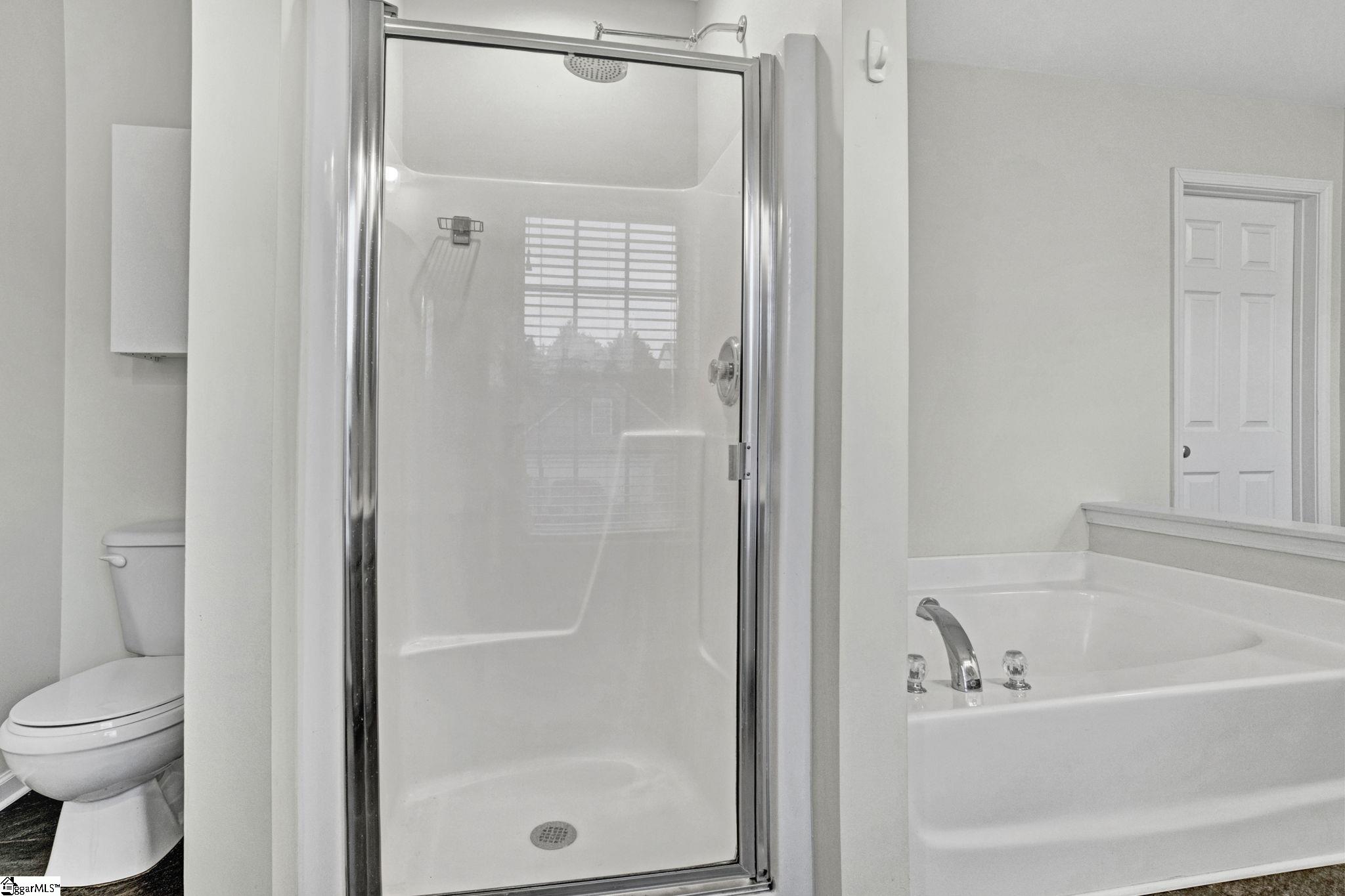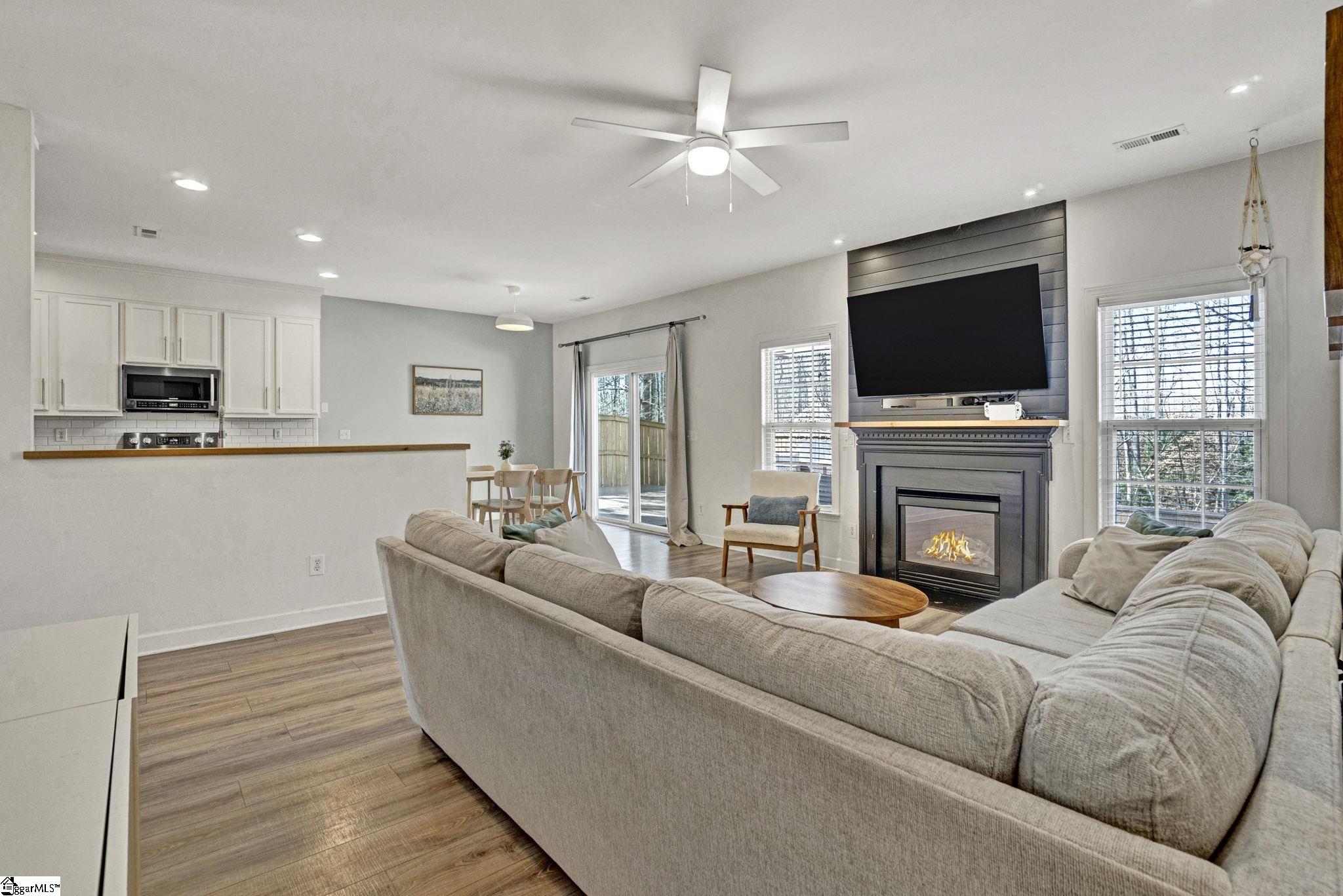 Welcome home to 124 Garfield, a beautifully updated, move-in ready family home in the heart of Simpsonville. Nestled in the sought-after Bryson/Hillcrest school district, this stunning traditional-style home offers exceptional privacy with community green space behind and beside the property - an uncommon luxury at this price point. From the moment you arrive, the charming curb appeal sets the tone with a manicured front yard, updated exterior lighting, and an inviting front porch. Step inside to a light, airy color palette and thoughtful upgrades throughout. No detail has been overlooked, with luxury vinyl plank flooring throughout the entire home (no carpet in sight!), all new light fixtures, custom closets, and beautifully updated bathrooms. Just off the entry, the formal dining room features a tray ceiling and flows seamlessly into the kitchen. The well-appointed kitchen boasts ample cabinetry and counter space, granite countertops, stainless steel appliances, and a stylish tile backsplash. The kitchen opens to the breakfast nook and spacious living room, highlighted by a cozy gas-log fireplace and an abundance of natural light. A flex space off the living room is the perfect space for a home office, playroom, or game room. Rounding out the first floor, you'll find a powder room and the entrance to your two-car garage. Upstairs, you’ll find four generously sized bedrooms and two full bathrooms, including your primary suite. The primary suite checks all of the boxes with a spacious layout, a tiled bathroom with updated vanities and fixtures, a soaking tub, walk-in shower, and an incredible custom walk-in closet. The backyard is truly the icing on the cake. Enjoy outdoor living and entertaining on the expansive three-tiered deck with pergola, all within a fully fenced backyard backing up to peaceful woods. Such a private setting while still being minutes from shopping, restaurants, I-85, Heritage Park and more! Bryson Meadows residents enjoy a friendly community with sidewalk-lined streets and a community pool. This is one you don't want to miss!