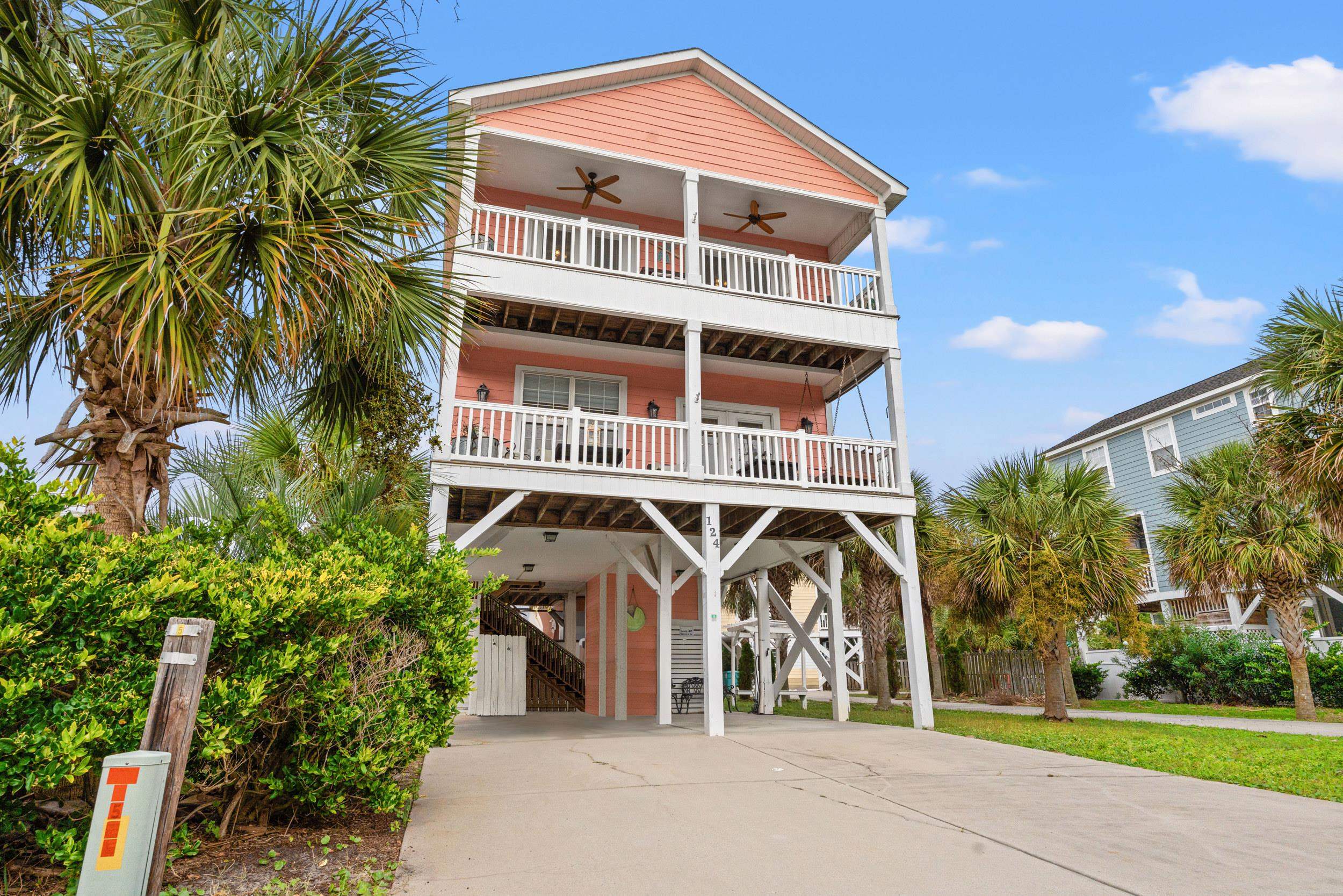 Discover this beautifully designed raised beach house located east of Highway 17, just steps from the beach with ocean views and a private heated pool. Positioned only one block from the shoreline, this fully furnished 5-bedroom, 5.5-bath home offers an exceptional coastal property with no HOA restrictions. The main level features a spacious living area, an open kitchen equipped with stainless steel appliances, updated lighting, Brazilian stone countertops, and a dining area ideal for entertaining. This floor also includes a bedroom and one and a half bathrooms, providing flexibility and convenience. A deck located off the family room creates an inviting space for outdoor relaxation. Upstairs, the second level includes four additional bedrooms and four bathrooms, thoughtfully designed for comfort and functionality. Two bedrooms offer direct access to a balcony with views of the ocean and inlet. A washer and dryer located on this floor adds everyday convenience. Outdoor amenities include a private heated pool, expansive decking, and ample space for outdoor enjoyment. Recent upgrades include updated lighting and newly installed flooring throughout the home. Whether used as a primary residence or an investment property, this home offers versatile opportunities, including strong rental potential. Public beach access is located directly across the street, enhancing the property’s desirable location. With its proximity to the beach, flexible use options, and well-appointed features, this property presents an excellent opportunity. Schedule a private showing to experience it firsthand.
