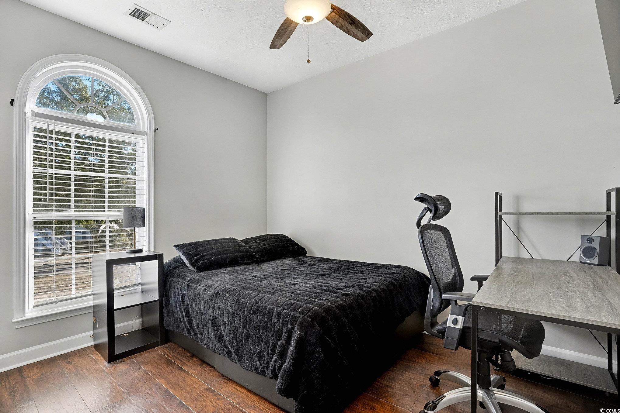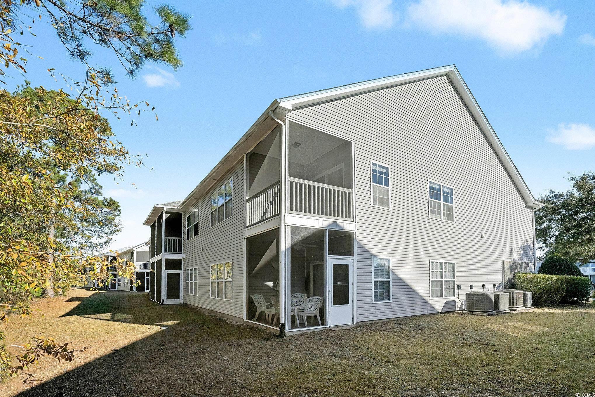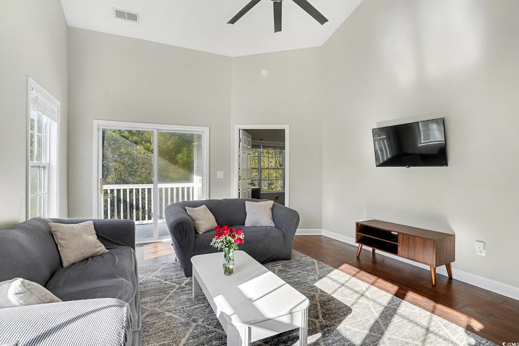 Welcome to this beautifully maintained top-floor condo located in the gated Carolina Willows community in Carolina Forest. This spacious residence offers a bright, open layout, modern finishes, and peaceful wooded views—perfect for comfortable coastal living, a primary residence, or a second home. Step inside to a light-filled living area featuring vaulted ceilings, durable wood-look flooring, and large windows that create an airy, inviting atmosphere. The open-concept design flows seamlessly into the dining area, accented by elegant lighting and classic wainscoting—ideal for entertaining or everyday living. Sliding glass doors lead to a screened balcony, providing a relaxing outdoor retreat overlooking mature trees. The galley style kitchen is thoughtfully designed with white cabinetry, stainless steel appliances, and a breakfast bar that opens to the main living space. Just off the kitchen, the dining area offers ample room for gatherings and casual meals. The primary bedroom serves as a comfortable retreat with abundant natural light, vaulted ceiling, a ceiling fan, and convenient access to a well-appointed en-suite bathroom. Additional bedrooms provide flexibility for guests, a home office, or hobby space. Bathrooms feature clean, modern finishes with updated vanities and tiled shower surrounds. Carolina Willows is a secure, gated community known for its beautifully maintained grounds and desirable Carolina Forest location—just minutes from shopping, dining, golf, medical facilities, and an easy drive to the beaches of Myrtle Beach, Coastal Carolina University and downtown Conway with the famous Riverwalk. Buyer is responsible for verifcation.