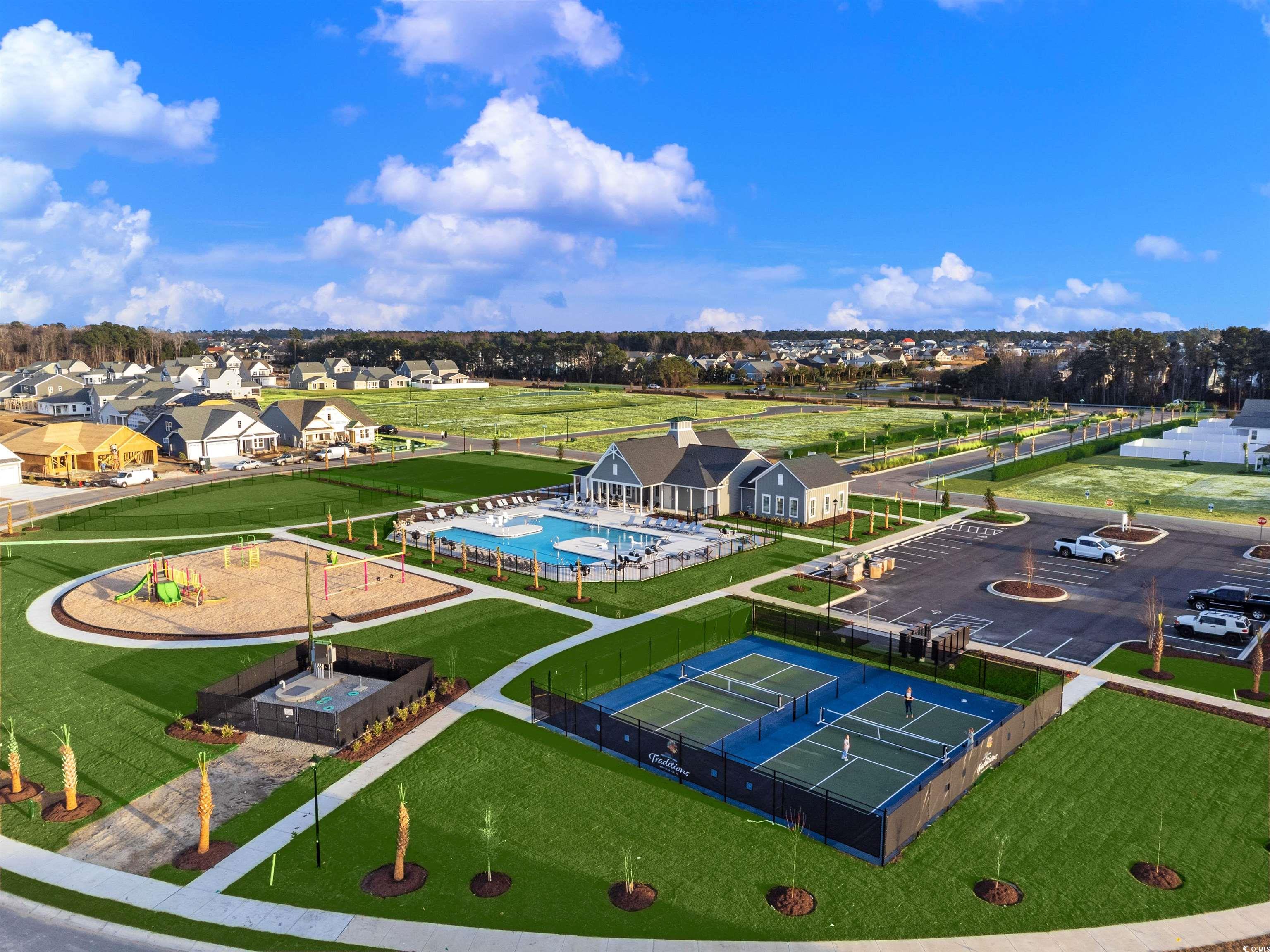 The Jasmine is thoughtfully scaled and avoids the bigger is a better approach. With 1,607 square feet of living space you and your guests can enjoy luxury in an efficient space. This home features two bedrooms, two bathrooms, and a rear covered porch for outdoor enjoyment. The kitchen boasts quartz countertops and a tile backsplash, while the owner's bath is enhanced with quartz countertops and a tiled shower. Amenities include a pool, clubhouse, fitness center, pickleball courts, sidewalks, and a bark park, among many other features. This home is located in Traditions, a brand-new community situated in the desirable Carolina Forest.
