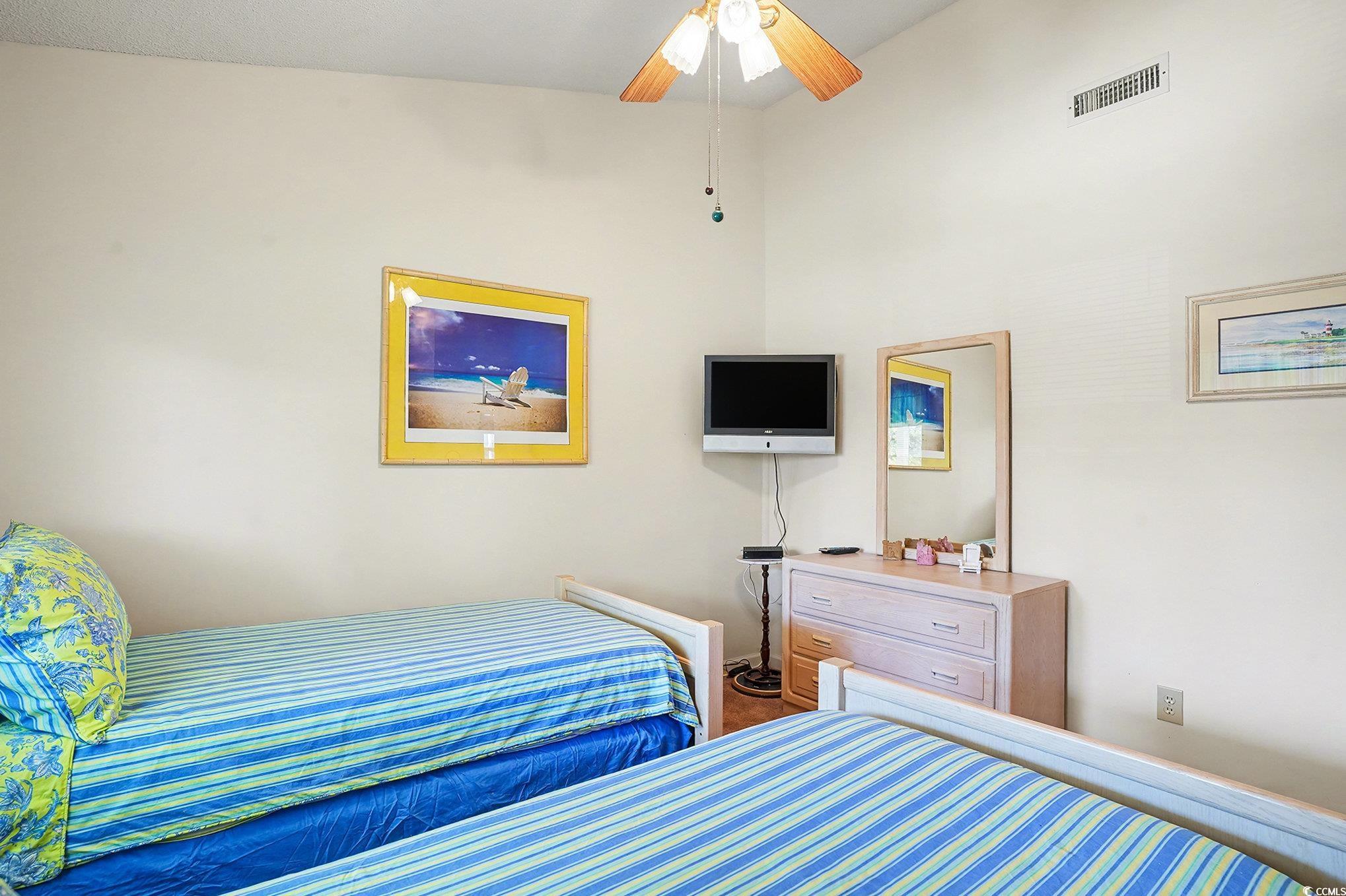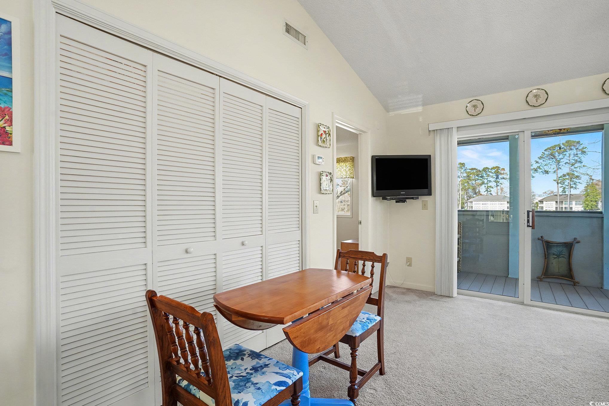 Looking for your dream coastal retreat? This is it! Located at Green Tree in the desirable Island Green community, this furnished end unit 2 bed 2 bath condo has only been gently used as a second home and updated with a new refrigerator and dishwasher in 2025, new balcony flooring in 2025, new couch and chair in 2024, new HVAC in 2020 and water heater in 2019, and roof was just replaced in 2025. Tastefully furnished and decorated, the open floor plan features a spacious living room and dining area with vaulted ceilings, ceiling fan and direct access to the balcony. Adjacent to the living room, the fully equipped kitchen boasts abundant cabinet and counter space, a new sink and faucet just installed in 2022, a breakfast bar and a pantry. The nice sized master suite has been updated with new king mattress and box spring in 2020 and has a bath with vanity and tub/shower. A second bedroom and full bath with vanity and tub/shower are located just off the foyer. Both bedrooms have ceiling fans, vaulted ceilings and ample closet space, and the unit also has a full-size washer and dryer and additional closet space off the foyer. The private balcony is the perfect spot to savor your morning coffee, enjoy a new book or relax with cocktails at the end of the day. HOA dues include water/ sewer, trash, outdoor pool, landscaping, pest control, Spectrum cable/internet, and exterior building insurance and roads in the community have just been repaved. Great location just minutes from shopping, restaurants, golf, the airport, Market Common, and, best of all, the beach and everything the Grand Strand has to offer in amusements and entertainment! Perfect as a primary home, private vacation getaway or as a great investment property as both short- and long-term rentals are permitted. This is a fantastic opportunity! Make an appointment to view this delightful condo today