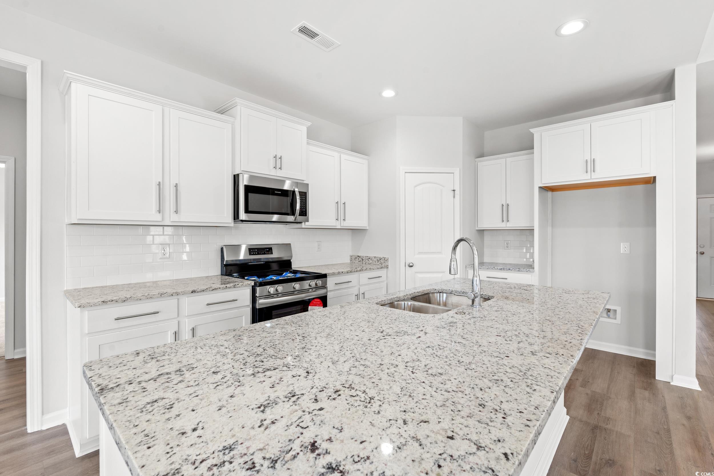 Under Construction. Welcome to Rivertown Row North, the most anticipated new development in the heart of Conway. All New homes in this neighborhood will be constructed with Hardie Plank exterior siding. Enjoy the comfort of Natural Gas heat, cooking & tankless hot water in this 2000+ sg ft Corolla model with 3 car garage. This 3 bedroom, 3 bath split floor plan has a large rear Master suite with access to the Laundry room from the Master closet, vaulted great room ceilings, Granite kitchen counter tops, Built-in electric fireplace with Heat, and a kitchen bar w/ seating. The waterproof laminate plank flooring extends throughout the kitchen baths and living areas. The third bedroom is an upstairs suite with its own full bath. There is also a 3 car painted and trimmed Garage w/ drop down attic access, Laundry room pantry, covered front porch, and a covered rear porch with an additional concrete patio that doubles your outdoor entertainment space. All homes in Rivertown Row North feature wider than average lots, open floor plans, 9' ceilings, painted garage interiors, Gutters, fully cased windows, GAF high performance architectural shingles, 12" roof overhangs, Aristokraft Stone Gray painted Birch shaker cabinets, Rinnai tankless water heater, Frigidaire stainless appliances, and many other upgraded architectural details. The neighborhood features sidewalks, street lighting and a community pool with pavilion. Building lifestyles for over 40 years, we remain the premier home builder along the Grand Strand. We’re proud to be the 2021, 2022, 2023, and 2024 winners of both WMBF News' and The Sun News Best Home Builder award, 2023 and 2024 winners of the Myrtle Beach Herald's Best Residential Real Estate Developer award, and 2024 winners of The Horry Independent’s Best Residential Real Estate Developer and Best New Home Builder award. PICS ARE NOT FROM ACTUAL HOME. pics are from similar home with the same floor plan.