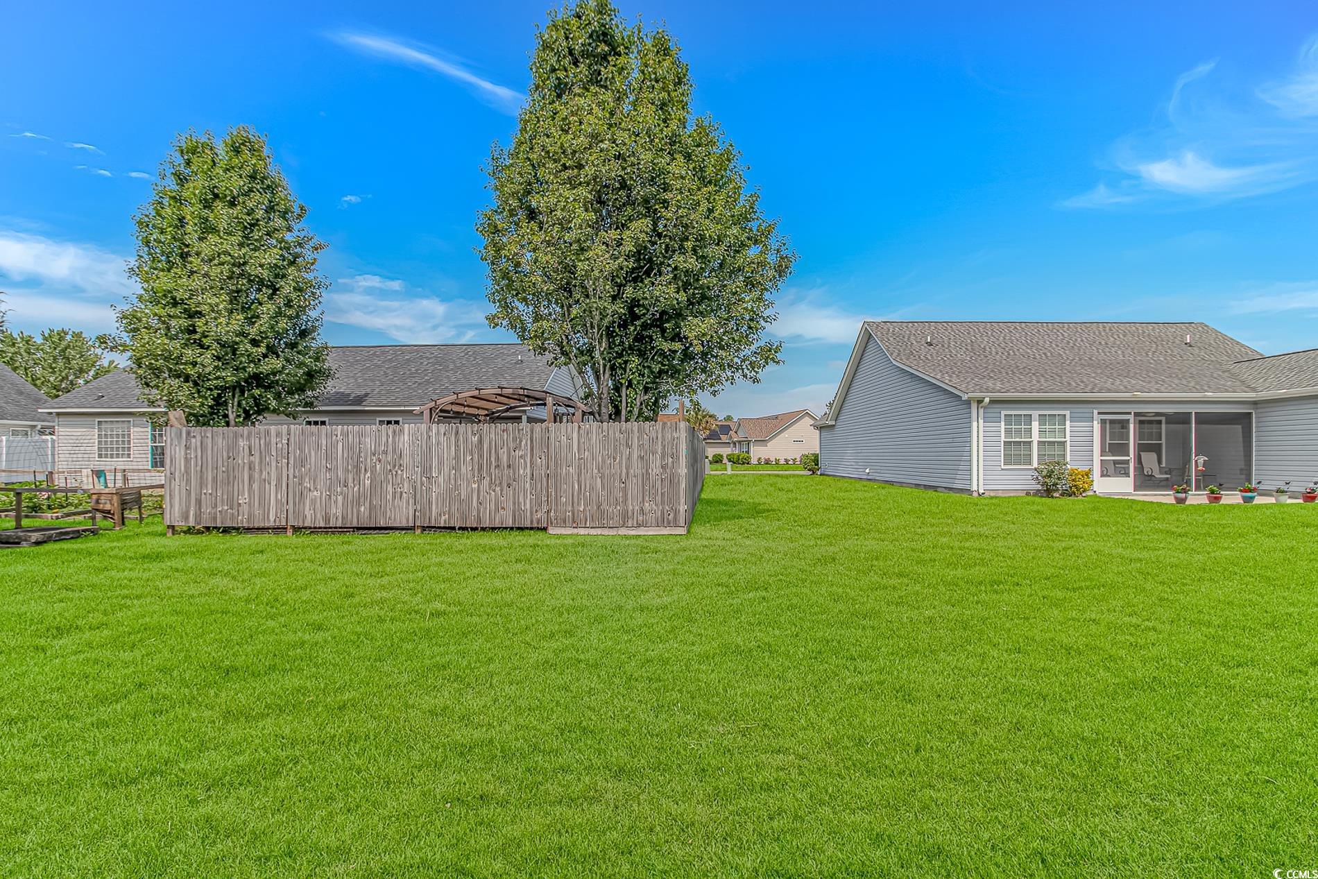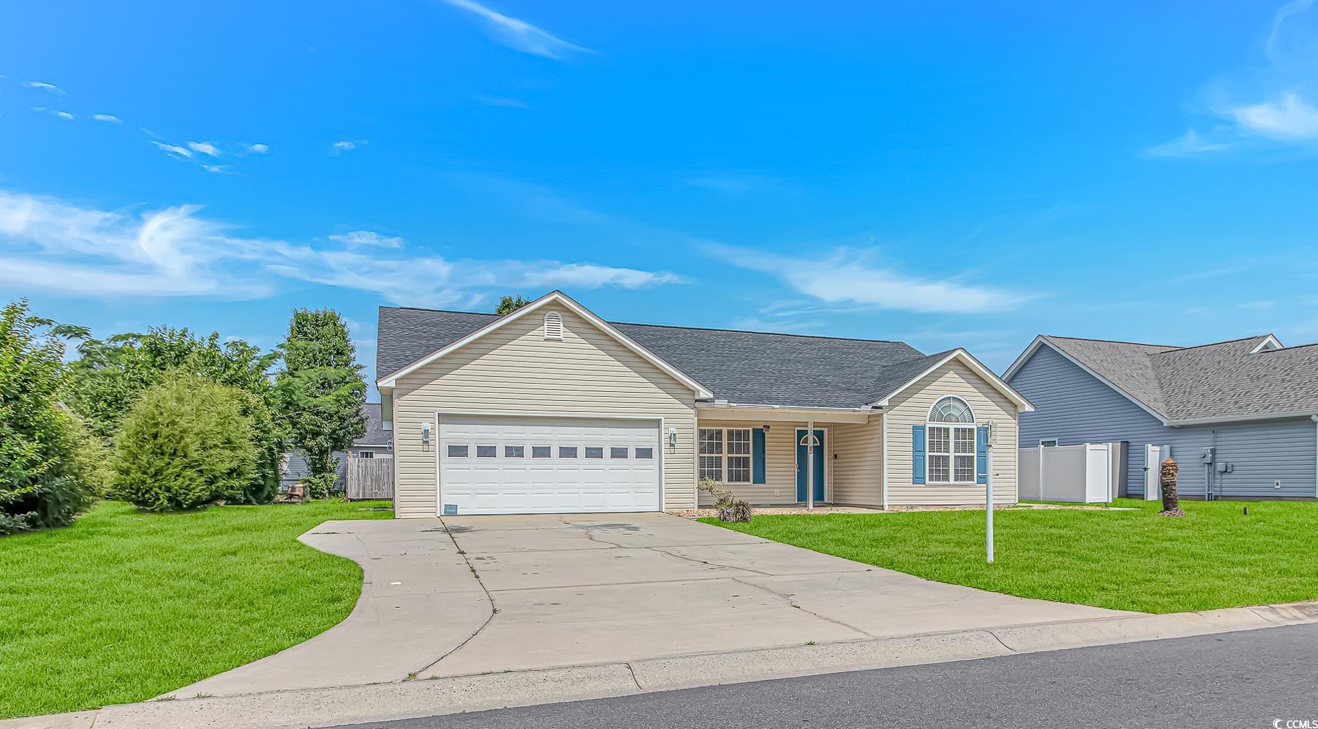 Welcome to this beautifully updated single-story ranch home in the sought-after Pine Needle Estates, just 15 minutes from North Myrtle Beach. If you're looking for low-maintenance living with big value, this home checks all the boxes. With a newer roof (2020), HVAC (2020), and water heater (2023), it's move-in ready with peace of mind. The entire home has been freshly painted and features brand-new luxury vinyl plank flooring throughout. The low HOA and charming curb appeal make this property a rare find in today's market. Step inside to an open living area with vaulted ceilings, a ceiling fan, and natural light that flows seamlessly into the eat-in kitchen. The kitchen includes white appliances, tile flooring, a large stainless-steel sink, and a dining area with direct access to the side patio—perfect for enjoying your morning coffee outdoors. There’s also a coat closet, hallway washer and dryer area with cabinetry, and HTC fiber internet for lightning-fast connection. The primary suite is spacious with double closets, a ceiling fan, and a luxurious ensuite bathroom featuring double sinks, jetted tub, separate shower with a glass enclosure, tile flooring, and a private toilet room. The guest bedrooms have LVP flooring and ceiling fans, with one missing closet doors that can easily be customized to your preference. The guest bathroom includes a tub/shower combo and overhead cabinet storage. Outside, enjoy upgraded landscaping with palm trees, river rock accents, and a full sprinkler system. The covered front porch welcomes guests, while the wide driveway and epoxy-coated garage offer extra convenience. The garage also features attic pull-down stairs, a side door with a doggy door, and a utility sink. Pine Needle Estates is a well-established community with a peaceful, residential atmosphere. Residents enjoy a community fishing lake and proximity to shopping, dining, and major highways including 31, 22, and 905. Golf enthusiasts will love being just minutes from Long Bay, Aberdeen, and Colonial Charters golf courses. Popular golf memberships like Myrtle Beach Golf Passport and the Prime Times or Honors Card provide access to over 70 courses at discounted rates. This is a fantastic opportunity to own a well-maintained home in a growing area with easy access to beaches and top amenities. Schedule your private tour today and take the next step toward coastal living.