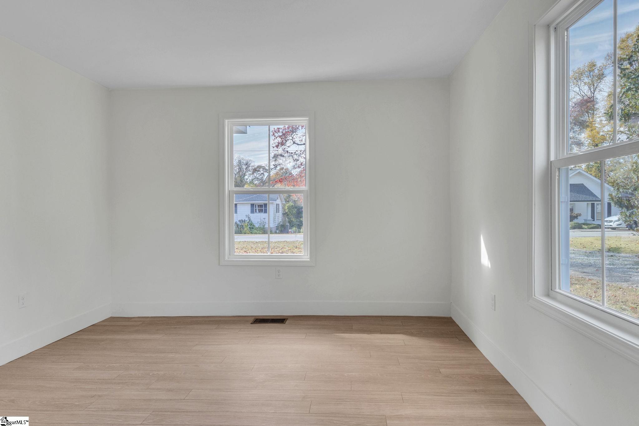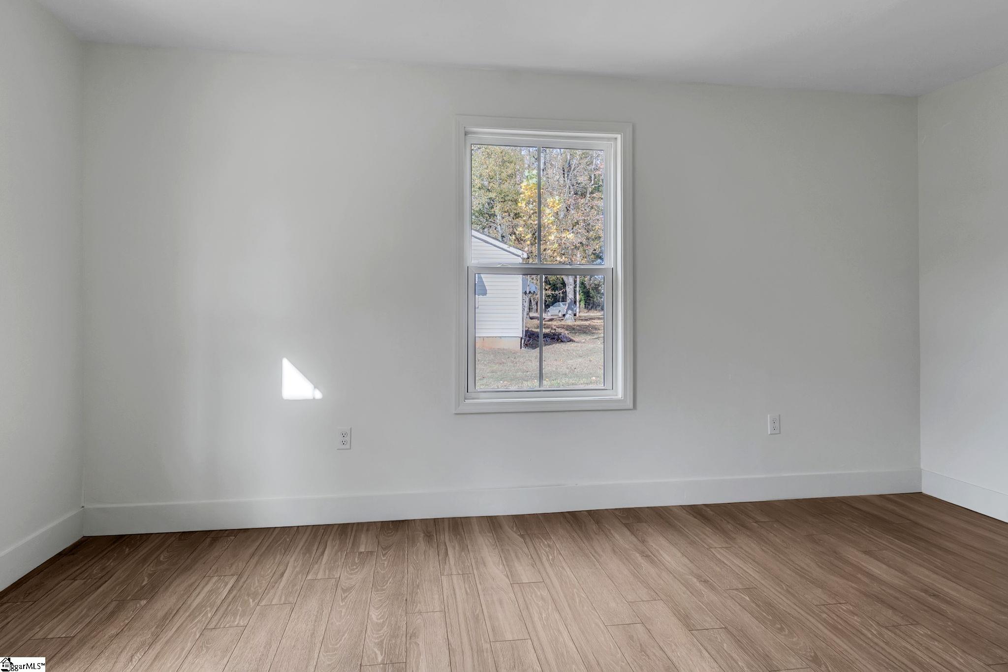 Right off of Brushy Creek Road, you'll find the cutest turn key starter home! You'll love decorating the exterior for Christmas with the trendy Board and Batten siding and a covered front porch with farmhouse beams. Your living room is oversized! You can fit a dining room table as well as a living room set in this space. The split floor plan offers one bedroom off the living room and the second down the hall. The bathroom is light and airy with a marble tiled shower and floors, a new vanity, and gold accented lighting. The kitchen will be one of your favorite spaces with new shaker cabinets, quartz countertops, tiled backsplash, stainless steel appliances, and your laundry room. There’s a corner for your fridge and additional cabinets above! The yard is private and the property line goes all the way to the road- with the opportunity to buy even more land next door. Under the home you'll find a surprise- an additional bedroom framed up that you can use for a workshop or man cave- or invest in your home and finish this space in the future. The home next door is currently being remodeled by the same seller. Minutes to the park, disc golf course, or downtown Greer.... you'll love this location. First time buyers can receive a 4.99% with preferred lender. Permits were pulled for all work through the city of Greer. Lot in between 125 and 123 circle drive can be purchased for an additional $50,000.