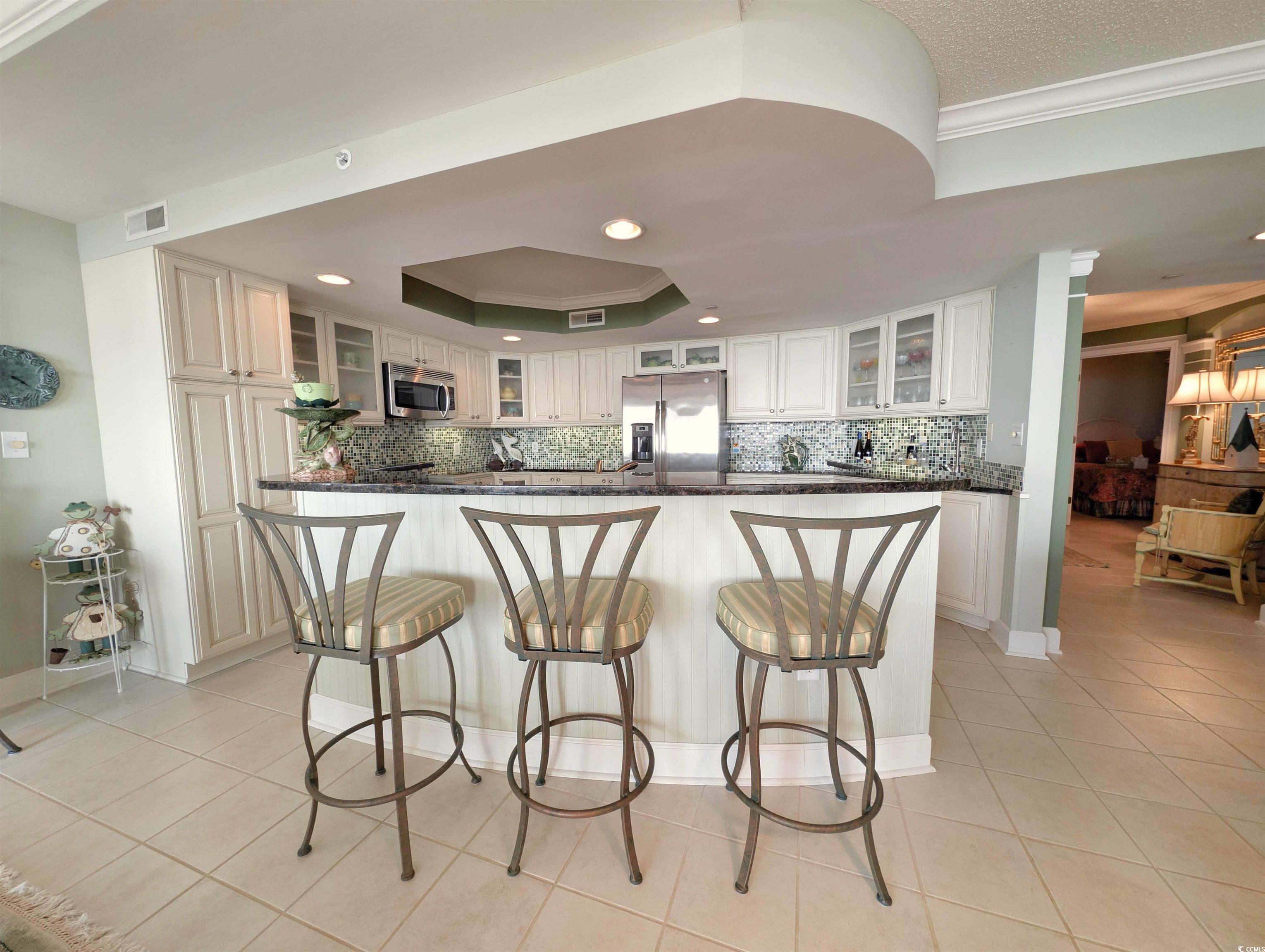Welcome to Fordham 106 located in The Somerset Regime in desired Litchfield By The Sea in Pawleys Island, SC. Enjoy your direct beach and oceanfront views and sounds from your 9' x 32' covered balcony with your own private staircase that takes you to the beach access, your reserved covered parking space, beach gear storage cage, and the 4 pool areas for owners & guests of Somerset. This well maintained furnished 3 bedroom/ 3 full bathroom ocean front condo has never been rented and only used as a second home. You will notice the pride of ownership immediately as you enter the 10' x 13' foyer. Access the oversized covered balcony from the great room, dining area, and the master bedroom and enjoy the ocean & beach views from the common areas and the master bedroom. Large great room with built-ins, dining area off of kitchen, kitchen with granite countertops, tiled backsplash, stainless steel appliances, custom cabinets, wet bar area with ice machine, and breakfast bar. Crown molding, ceiling fans, and recessed lighting throughout. Master bedroom and 2nd bedroom have En Suite private bathrooms. All bedrooms have lights in the closets and the 2nd & 3rd bathrooms have tiled backspalsh in the tub/showers as well. Enjoy your morning coffee while enjoying the amazing sunrises over the Atlantic Ocean and your favorite afternoon beverage from the oversized balcony after a fun day on the beach or in the pool. Litchfield By The Sea offers walking & biking paths, Tennis & Pickleball Courts, fishing & crabbing areas, and 24 hour gated security. Litchfield By The Sea is close to area shopping, dining, nightlife, and many championship golf courses. The Waccamaw Neck Walking & Bike Trail is right outside the gates that will take you into The Pawleys Island Mainland Areas or to Murrells Inlet for dining at one of many South Carolina's finest seafood restaurants. Georgetown is 10 miles south, Myrtle Beach is 20 miles north, and just 75 miles south to Historic Charleston. Make your appointment today and make Fordham 106 your primary home, second home, or investment rental property!
