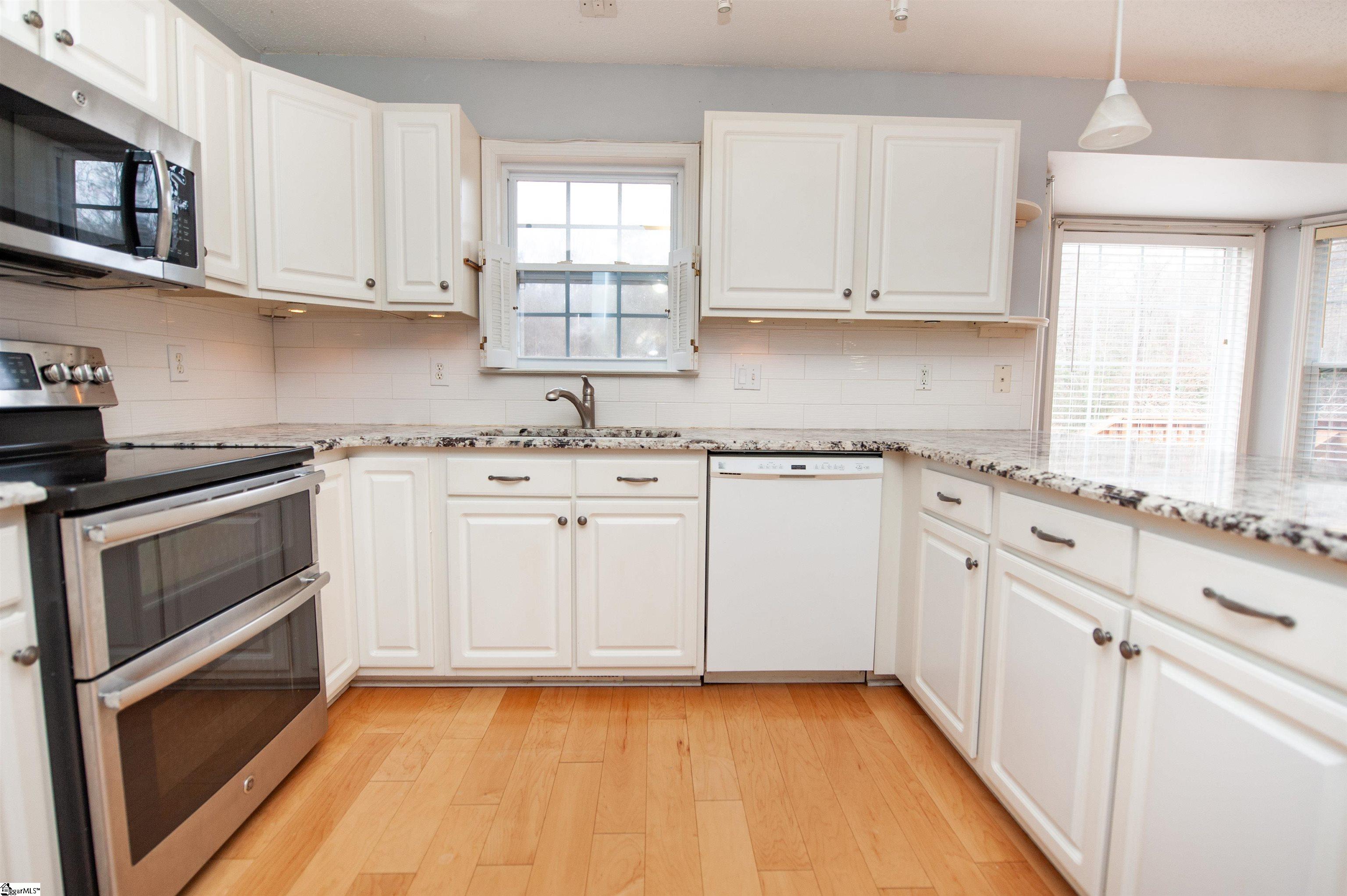 Welcome to this well-maintained 3-bedroom, 2.5-bath home with a spacious flex room and 2,127 square feet of functional living space. Enjoy a covered wrap-around front porch and a large back deck overlooking a private, flat .65-acre yard. Inside features include a gas fireplace and a remodeled kitchen (2019) with granite countertops and tile backsplash. The upstairs primary suite offers a walk-in closet, double vanity, stand-alone shower, and garden tub. Recent updates include a 30-year architectural roof (2019), new HVAC systems (2019), and a new water heater (2021). The property also provides a 2-car garage and a large driveway for ample parking. Located near Discovery Island Waterpark with convenient access to Greenville highways, and part of a community with a pool, this home offers comfort, updates, and a great location. Don’t miss it!