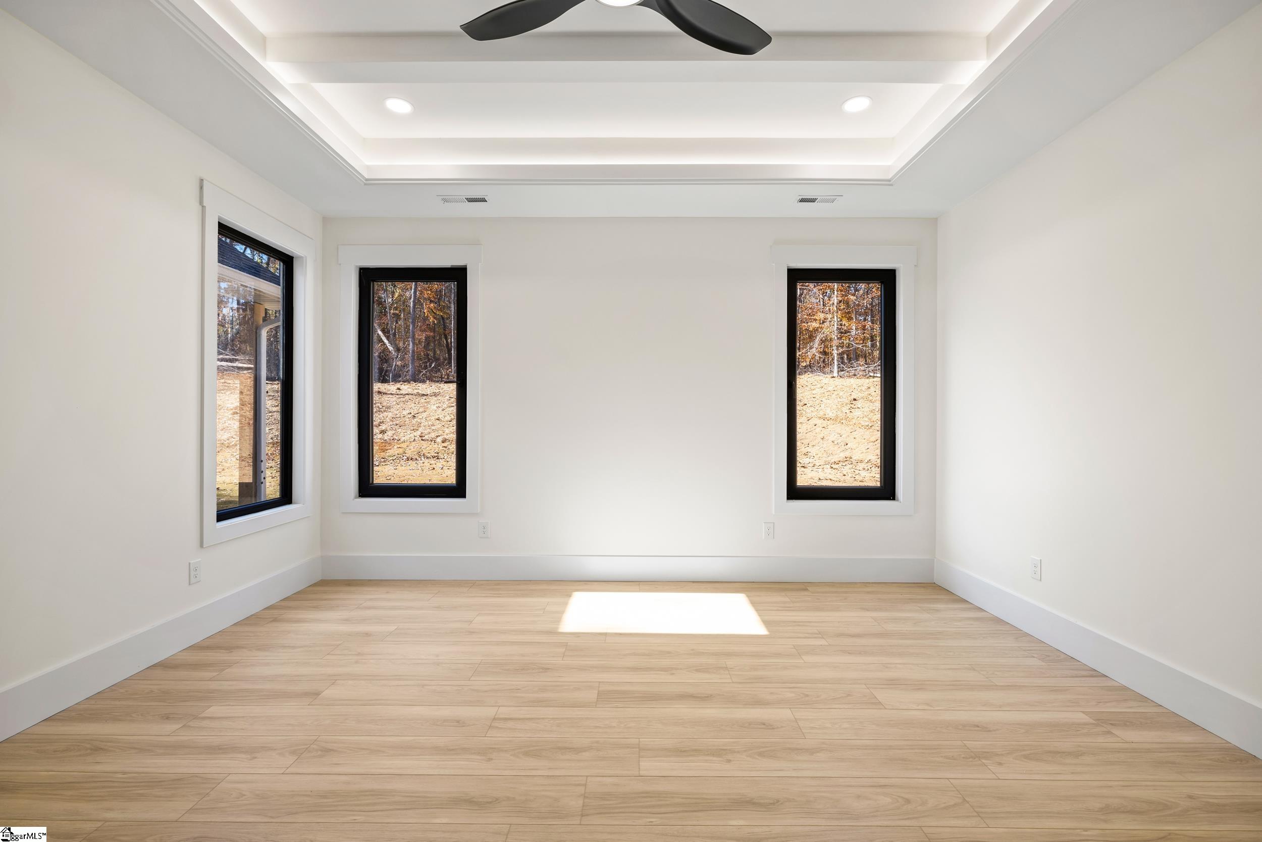 Welcome to 125 E. Peninsula Drive — a brand-new custom home located in the gated lakefront community of Lake Rabon Estates in Laurens. Situated on a spacious 0.78-acre homesite, this 4-bedroom, 3.5-bath home offers approximately 3,012 square feet of thoughtfully designed living space, blending modern design, custom detail, and peaceful lake community living. The open-concept layout features three bedrooms on the main level and a private upstairs suite with a full bath and flexible bonus space, ideal for guests, a home office, or additional living. Inside, you’ll find elevated finishes throughout, including custom ceiling details, exposed wood beams, and a seamless flow designed for both everyday living and entertaining. The kitchen is a true focal point, featuring quartz countertops, a six-burner gas range, custom hood, waterfall island, and thoughtfully designed lighting. Bifold doors open to a covered lanai, creating a seamless indoor-outdoor connection and extending the living space. The primary suite offers a private retreat with a spa-inspired bath, complete with floating vanities, a walk-in shower, and refined finishes. Additional features include a functional mudroom with custom built-ins, barn doors for added character, and consistent design throughout the home. An oversized three-car garage with over 900 square feet provides ample space for vehicles, storage, or recreational equipment. The expansive lot offers flexibility for future outdoor enhancements. Lake Rabon Estates offers a peaceful setting with community amenities including a clubhouse, playground, basketball court, and access to Lake Rabon for fishing, kayaking, and relaxed boating. Conveniently located just 15 minutes from downtown Laurens and approximately 25 minutes to Simpsonville. This is a rare opportunity to own a newly constructed custom home in a well-established lake community.