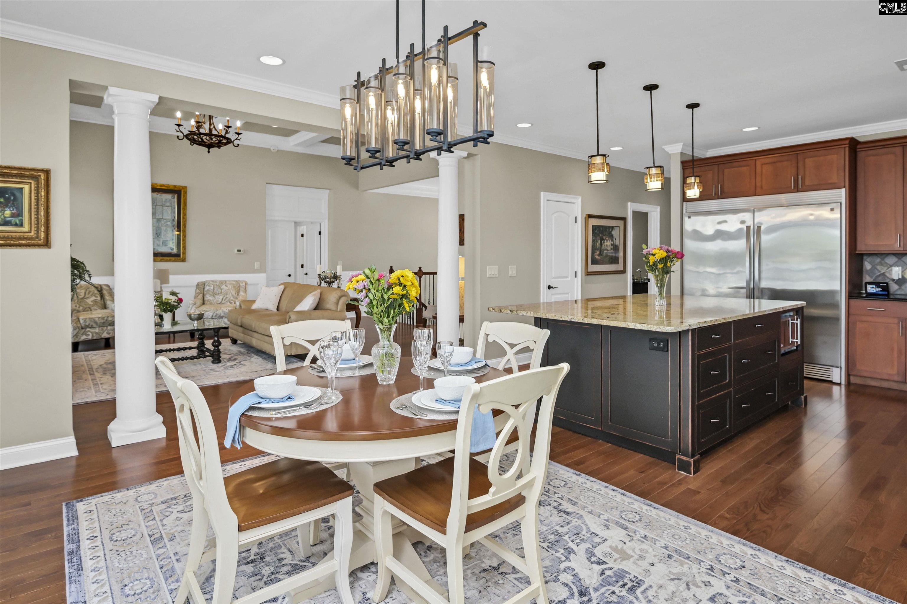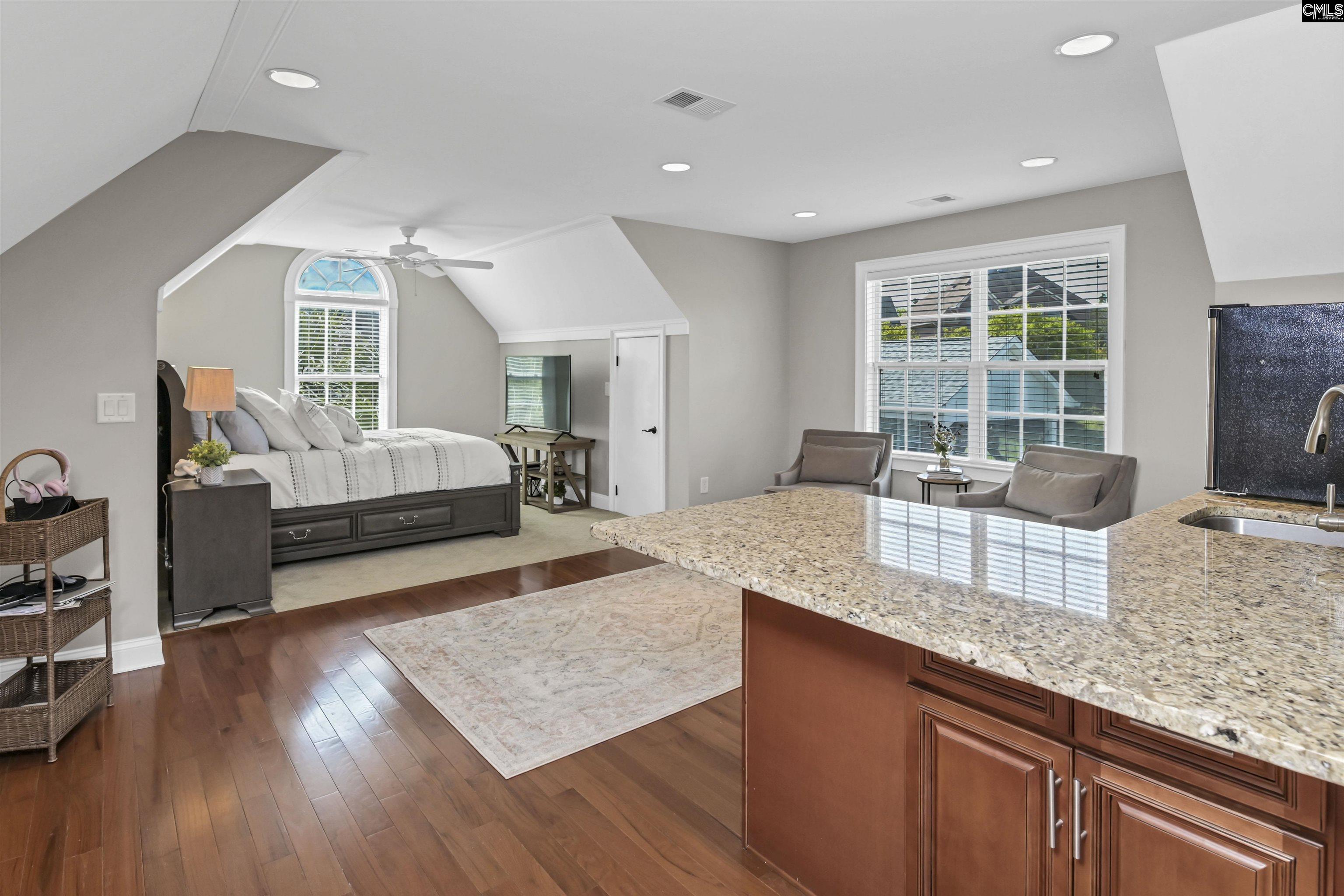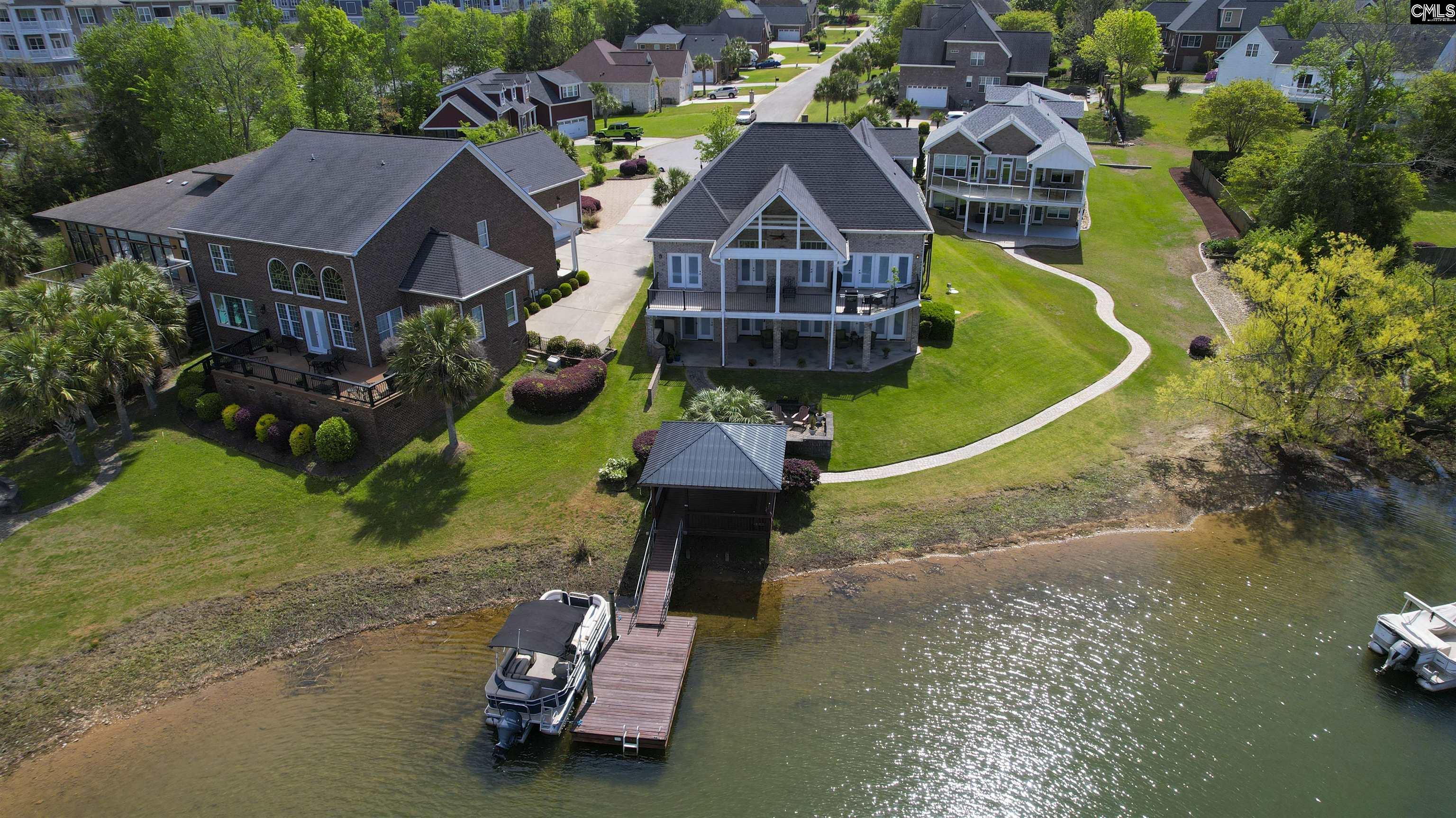 Imagine breathtaking sunset lake views greeting you from nearly every major living space in this exceptional 3,877 square foot waterfront home. Nestled in a small, one-street neighborhood just moments from Lake Murray Marina, this beautifully designed residence offers the perfect blend of luxury, comfort, and lakeside entertainment.The main level features an open, light-filled layout with a spacious great room that showcases stunning lake views. The main-level master suite also enjoys direct lake views and includes a luxurious private bathroom with a deep soaking tub, separate tiled shower, and ample closet space. The gourmet kitchen is a chef’s dream, complete with high-end upgraded appliances, a large central island with granite countertops and island tops, and an adjacent dining area with sweeping lake views—ideal for memorable meals with family and friends. A convenient main-level laundry room includes a sink and generous storage. Step outside to the covered main-level balcony, where you can savor your morning coffee or evening sunsets while taking in the tranquil water views. Downstairs, the lower level is designed for both relaxation and entertainment. The downstairs kitchen opens seamlessly to a family room, making it perfect for casual gatherings or multi-generational living. Two bedrooms offering beautiful lake views and private baths plus an office. The highlight is the impressive theater room, featuring an 80-inch TV, surround sound system, and dimmable lighting—creating the ultimate movie/sports experience. A fourth bedroom or versatile office space sits above the garage and features its own private entrance via stairs from the 3-car attached garage. It includes a kitchenette and a full bath. Outdoor living is equally spectacular. The lower-level covered porch offers additional lake views, while the stone terrace at the lakeside features a cozy fire pit—perfect for evening gatherings under the stars. Direct lake access includes a dock and gazebo, inviting you to boat, swim, fish, or simply enjoy the water. Located in a quiet, intimate neighborhood with easy access to Ballentine shopping and top-rated schools. Disclaimer: CMLS h Disclaimer: CMLS ha