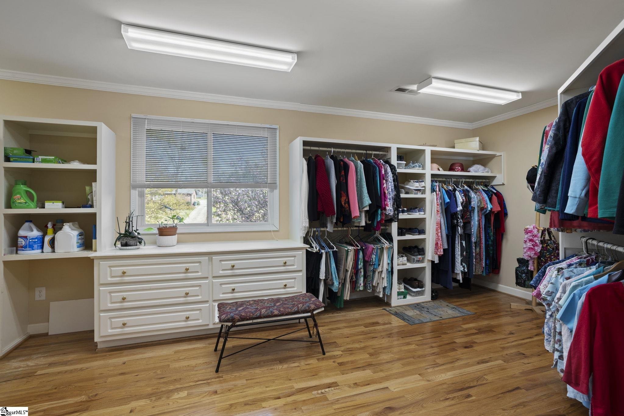 How would you like to live on a lake where you can swim or get in your canoe or paddle boat, but be minutes to downtown Greenville? Come see this little bit of paradise on Shannon Lake with over half an acre lot. Sit on your dock and fish, have a picnic by the lake on the stone terrace or just enjoy the ripple of the water as you enjoy a nap or read. This charming home has an updated kitchen and windows, has beautiful hardwood floors, 4 bedrooms plus an office or a 5th bedroom, 3 full baths, and over 3500 square feet. The primary suite has all the bells and whistles with a sitting area, built-in bookshelves that flank a fireplace, and has 2 sets of double doors that open to the lake. You will not believe the primary bath and dressing room that is the size of a bedroom. The multiple hanging and shelf space, including a second laundry area, a folding table, and a built-in ironing board. The primary bath is fit for a king for sure, a shower so large you can walk through without doors, an oversized whirl tub, double vanities, and a makeup vanity. One of the best features is the covered back porch to enjoy a full view of the lake and entertain year-round. After you work in the yard, go jump in the lake and cool off, or just sit on the dock and dangle your feet in the water. There is an in-law suite downstairs with a full kitchen, family room, bedroom, full bath, and second laundry area. There is also a huge unfinished basement for a workshop and storage.