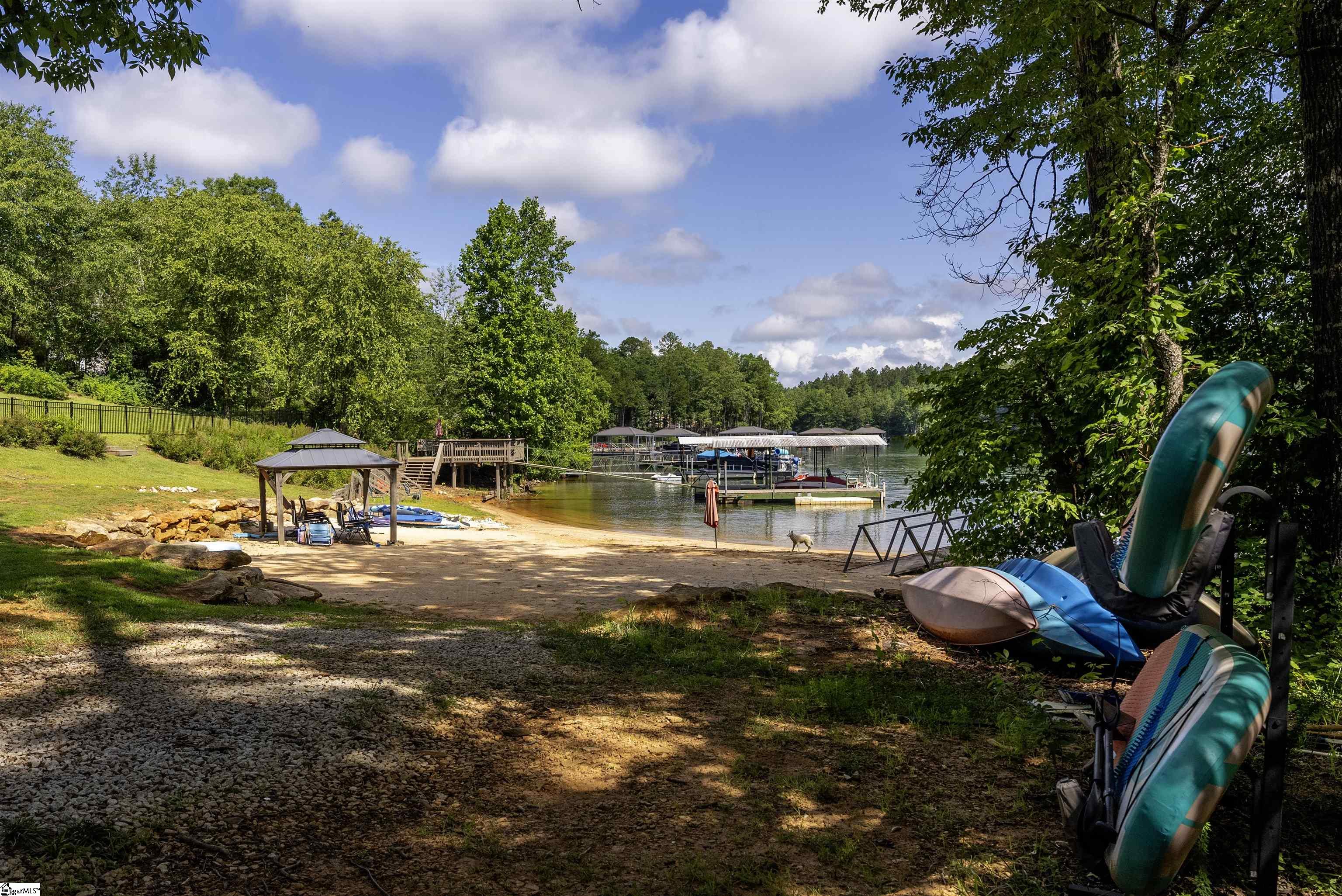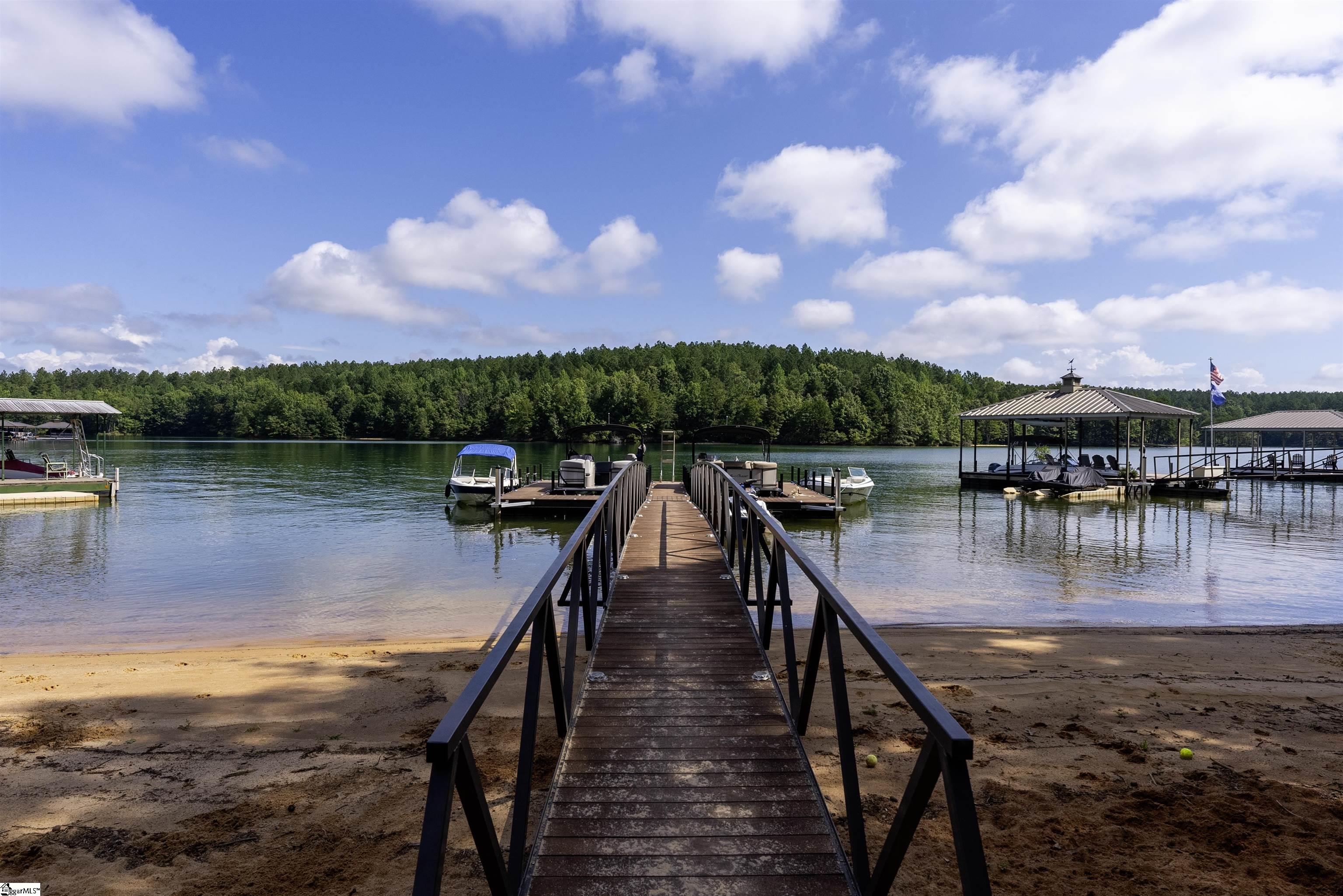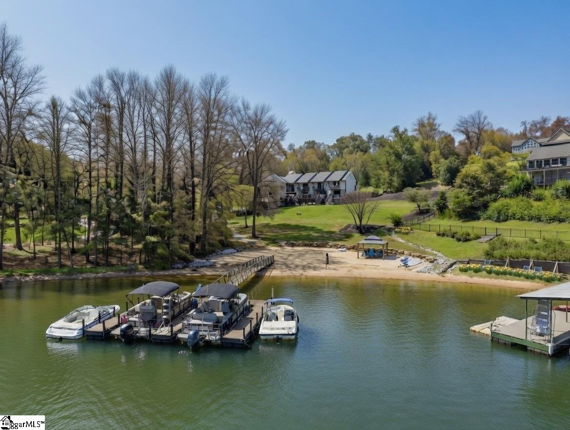 GREAT INCOME POTENTIAL :: Nestled in a deep-water bay, this two-bedroom getaway includes a private Lake Keowee slip dock. Relax among the private sandy beach and moor your boat in the dock just steps away from your very own back deck—perfect for sunning, swimming, or revving up for a day on the shores of Lake Keowee. Enjoy two levels of outdoor living with a main-level open deck and a terrace level patio below. The entire lakeside offers peaceful, open water views and space to relax or entertain. A gravel path and gentle grass yard leads to your dock by foot or golf cart. With no stated annual HOA fee and just $225 per unit annually for shared lawn maintenance, this property is an easy keeper for both investors and personal use. This short- and long-term rental friendly townhome offers Lake Keowee waterfront living at a great value. Located just minutes from downtown Seneca and less than twenty miles from Clemson University, this quaint gem checks all the boxes for location, lake access, and investment potential. Just around the corner is High Falls County Park, a 46-acre lakefront park packed with amenities including picnic shelters, boat ramps, fishing pier, tennis and basketball courts, a swimming area, miniature golf, and more. ** A/C installed February 2022, Dock April 2021, Roof and Siding September 2020, New asphalt parking and drive July 2024, Decks and Front Walk October 2020 and Septic July 2023 **