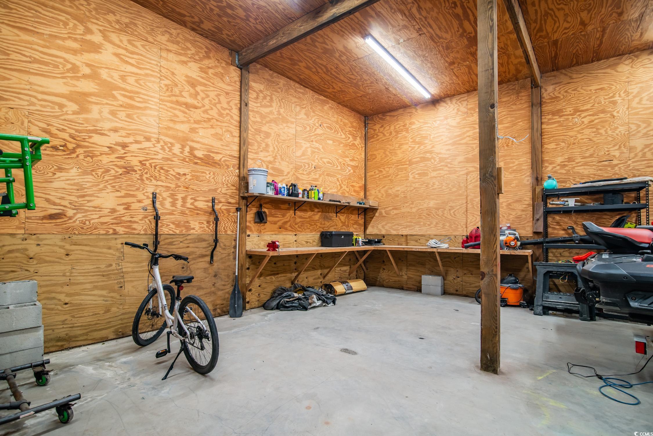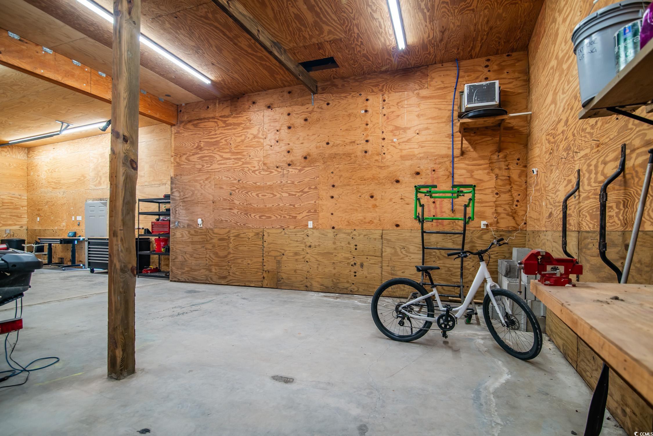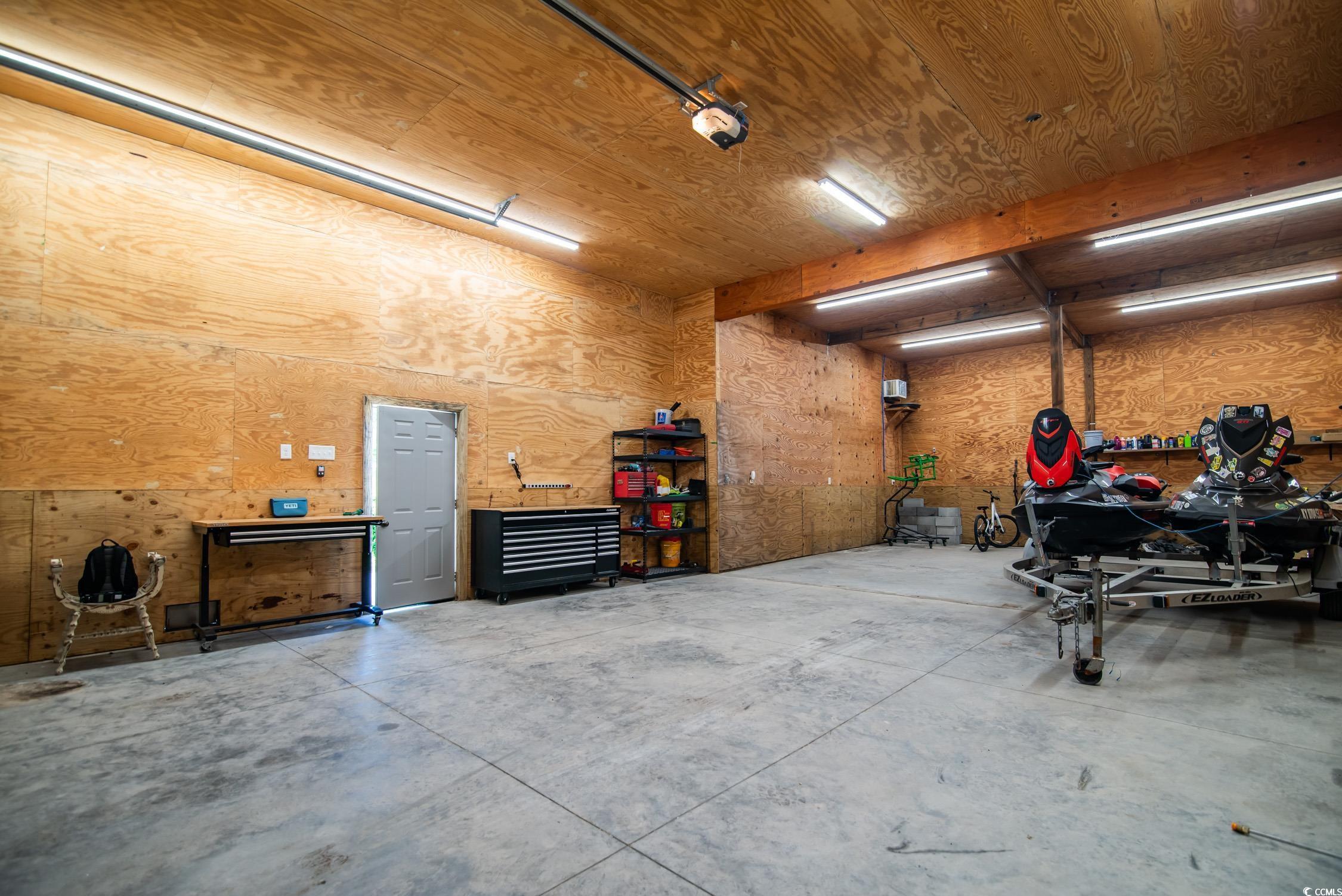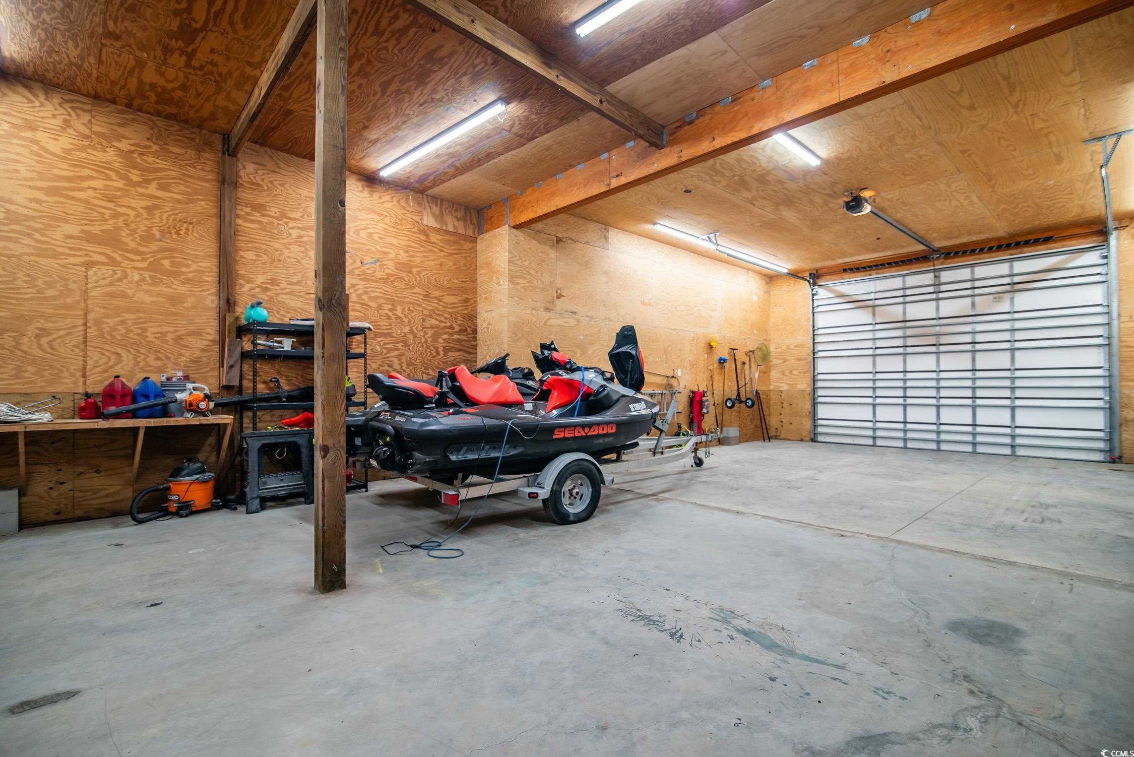 Welcome to this unique and versatile property located on a quiet and desirable road, Brown Pelican Loop in Pawleys Island. This beautifully maintained 1-bedroom, 1-bathroom apartment offers both comfort and functionality, perfect as a guest suite, rental opportunity, or private retreat. Step inside the spacious garage that was expanded in 2021 with an extra-tall 12-foot garage door, ideal for boat or RV storage, large vehicles, or a workshop setup. The garage itself at one point held two jet skis, a large 26-foot boat, a 15-foot boat, and a Jeep all at the same time. Attached to the garage is a cozy, fully equipped 1-bedroom apartment, featuring a compact but efficient kitchen, a full bathroom with a large bedroom with windows on all the walls. This small home is considered rare in Pawleys; a large garage and apartment set up is very unique in this area.