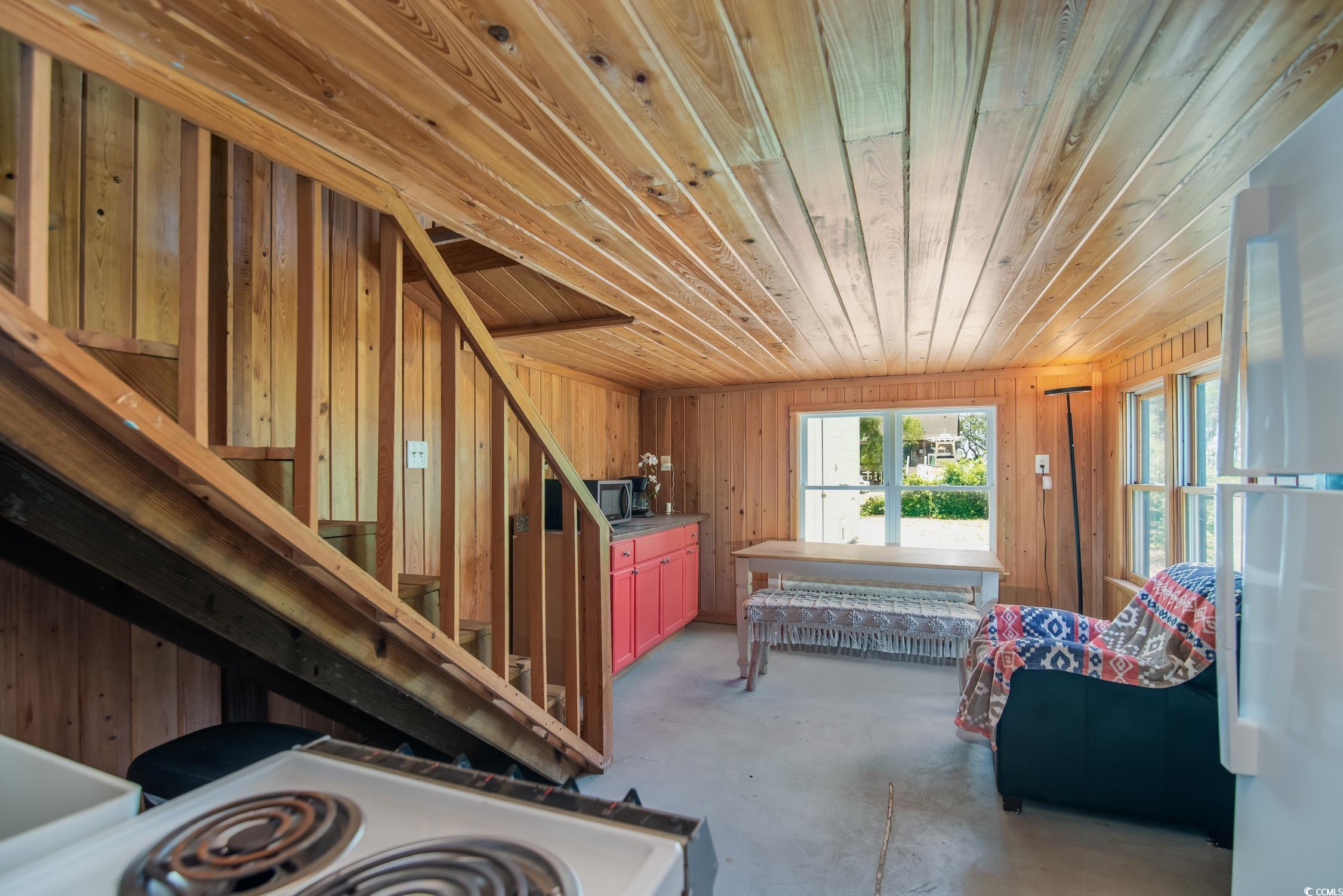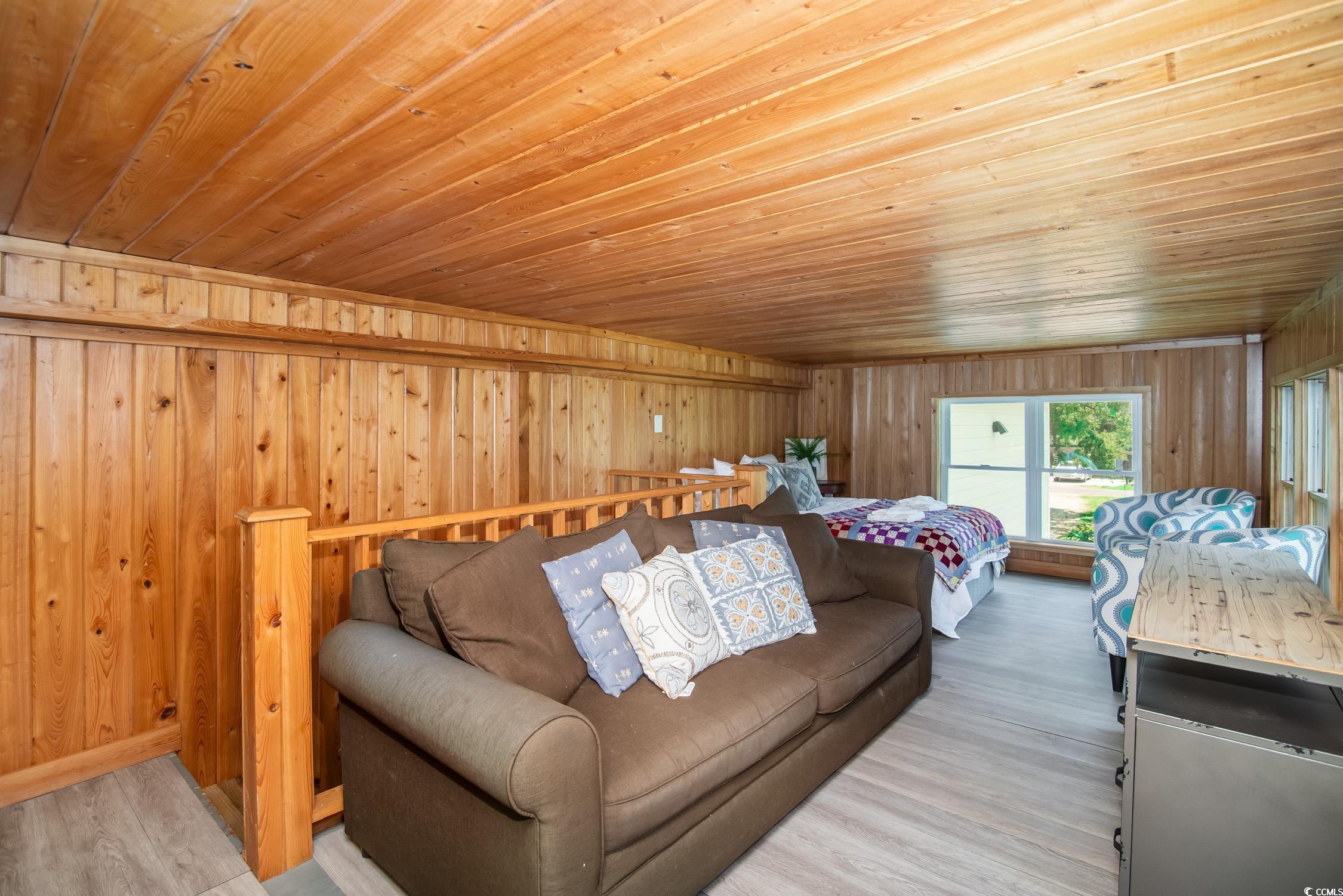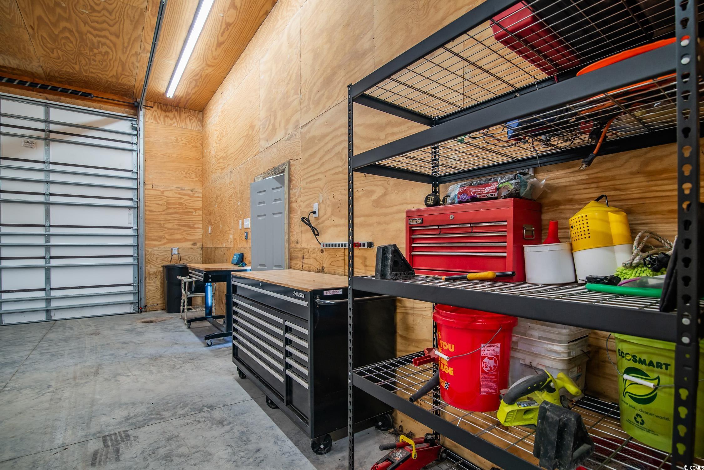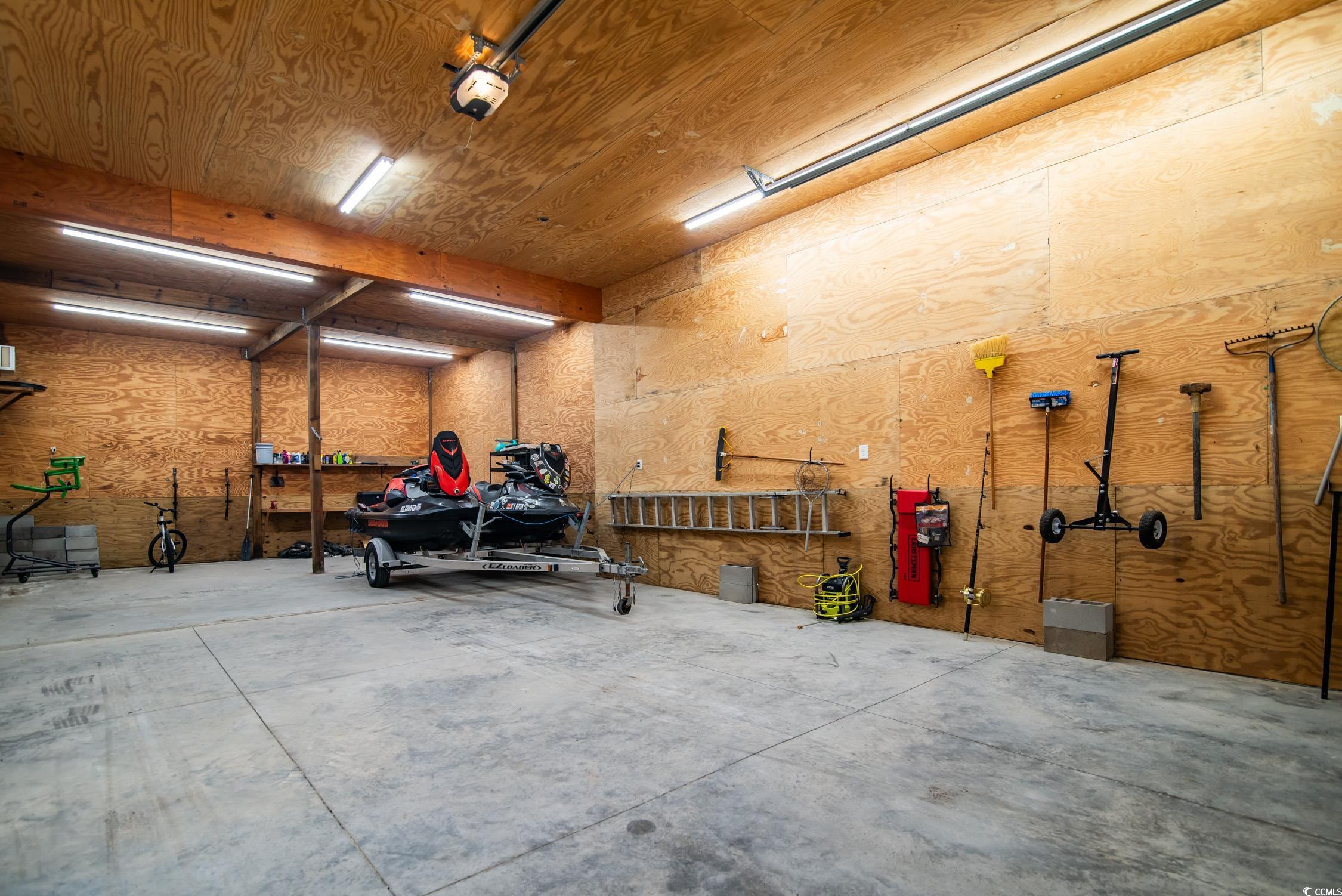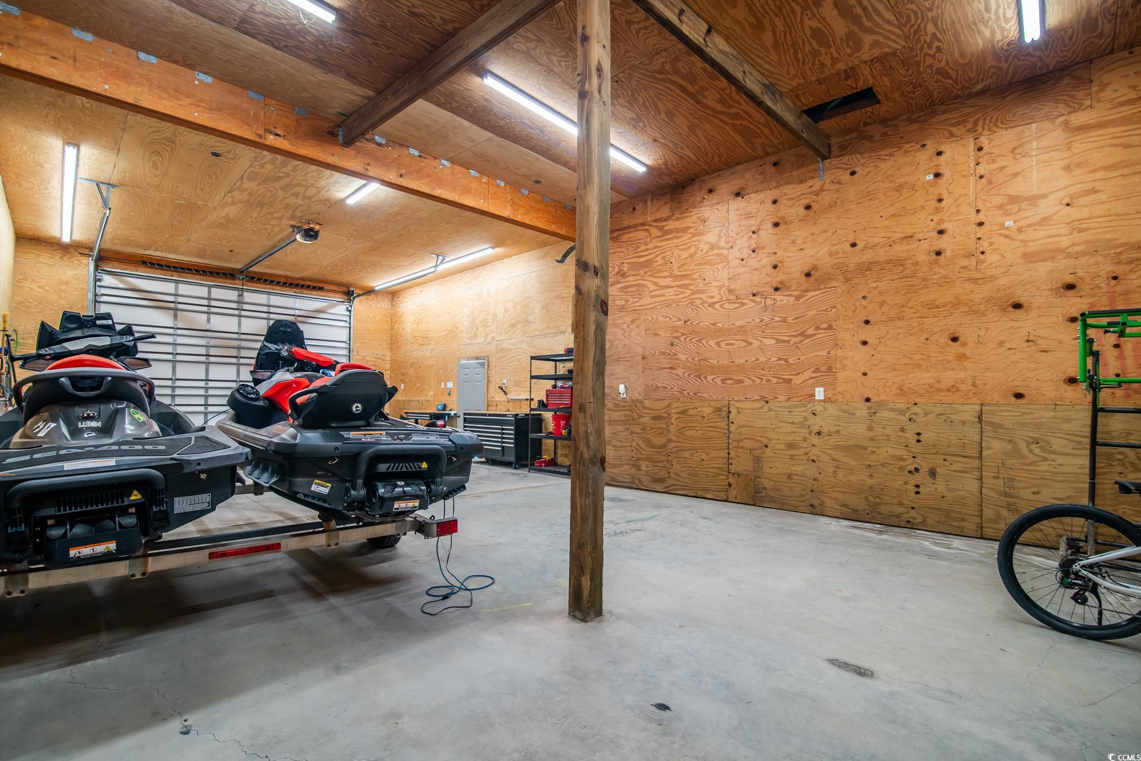 Welcome to this unique and versatile property located on a quiet and desirable road, Brown Pelican Loop in Pawleys Island. This beautifully maintained 1-bedroom, 1-bathroom apartment offers both comfort and functionality, perfect as a guest suite, rental opportunity, or private retreat. Step inside the spacious garage that was expanded in 2021 with an extra-tall 12-foot garage door, ideal for boat or RV storage, large vehicles, or a workshop setup. The garage itself at one point held two jet skis, a large 26-foot boat, a 15-foot boat, and a Jeep all at the same time. Attached to the garage is a cozy, fully equipped 1-bedroom apartment, featuring a compact but efficient kitchen, a full bathroom with a large bedroom with windows on all the walls. This small home is considered rare in Pawleys; a large garage and apartment set up is very unique in this area.