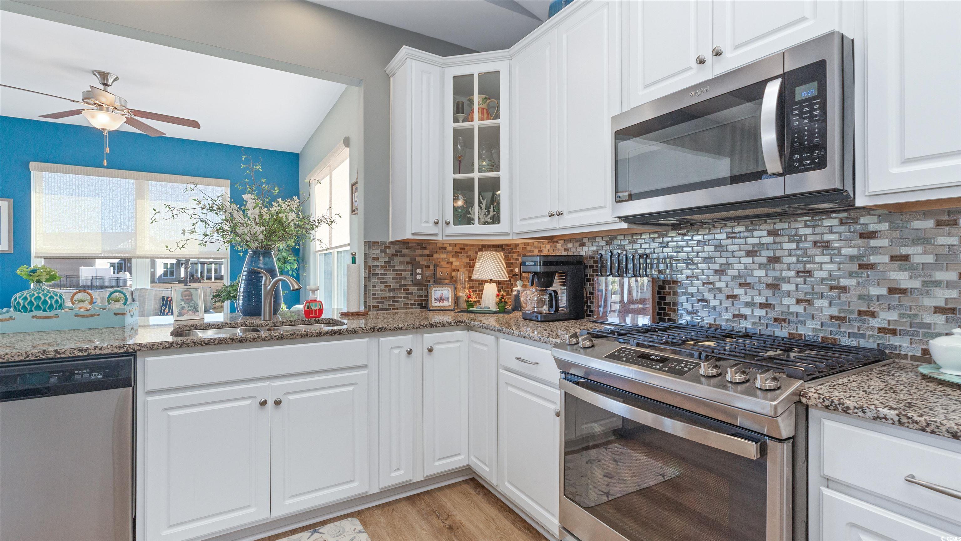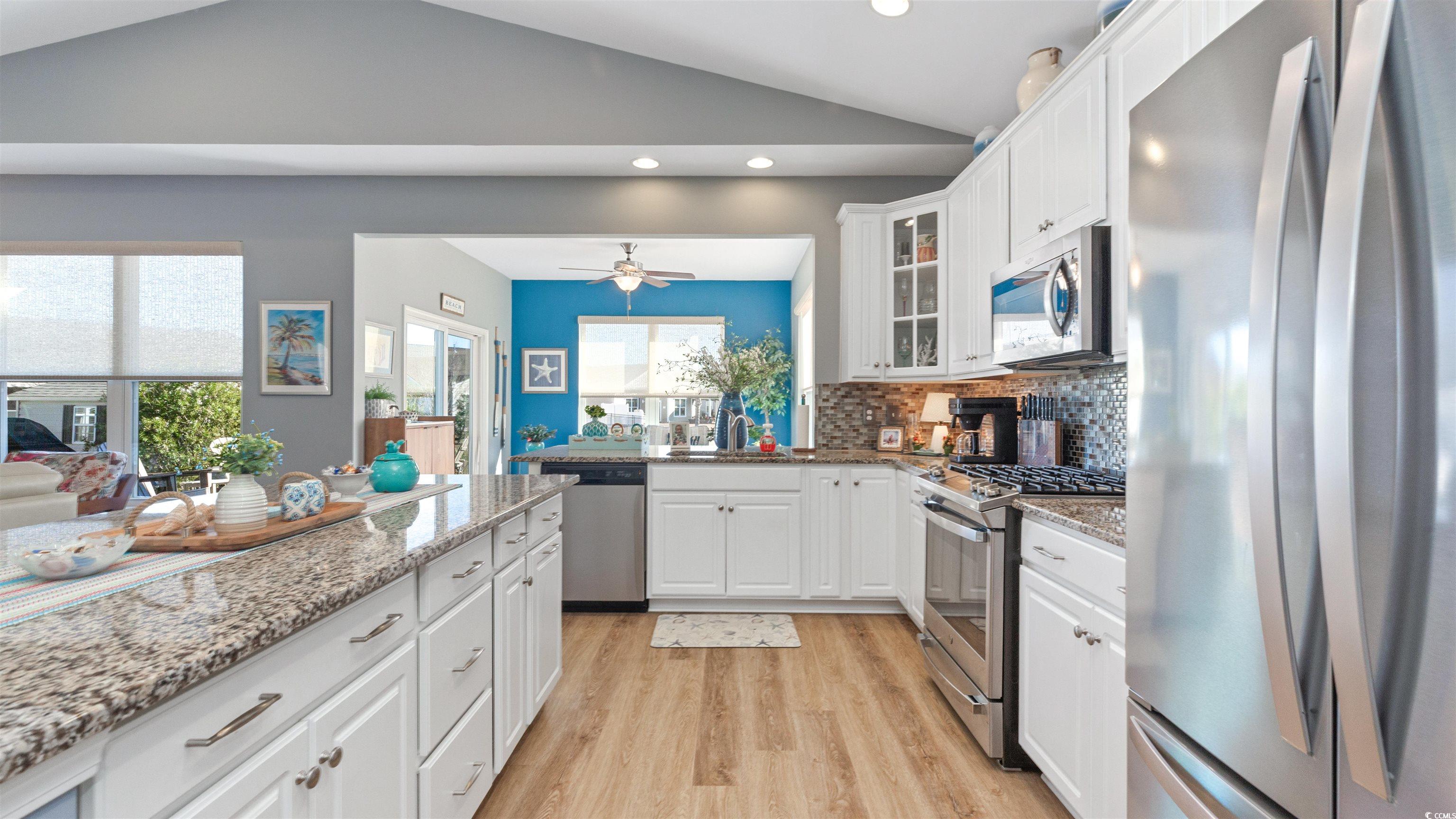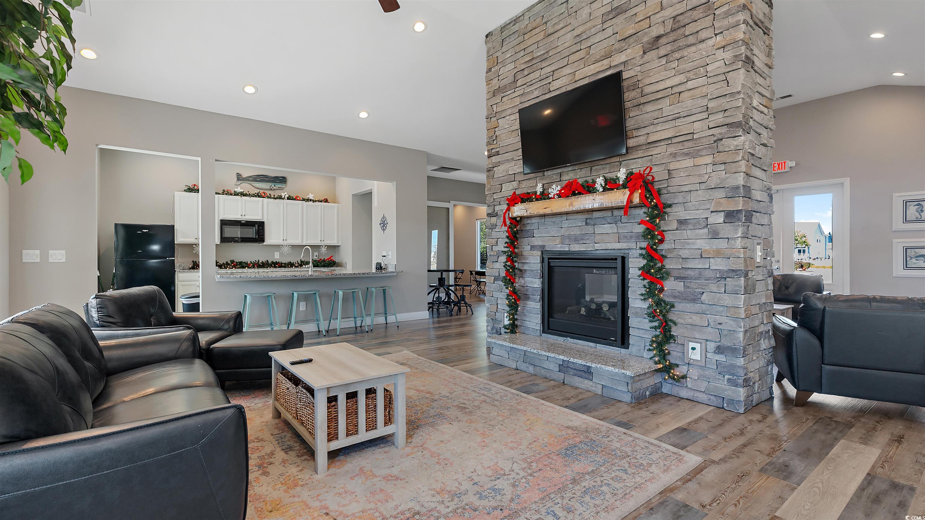 Welcome to Bella Vita, where living well isn’t just a phrase, it’s a lifestyle. This stunning 3-bedroom, 2-bath waterfront home, built in 2018, blends modern comfort with effortless coastal charm. Designed with an open-concept floor plan, the home features luxury vinyl LVP flooring, a striking shiplap accent wall in the living area, stunning wainscoting detail, and beautifully painted walls throughout. The spacious kitchen is the heart of the home, showcasing granite countertops, a large island, stainless steel appliances, and a generous pantry—perfect for entertaining or everyday living. Built-in stereo speakers enhance the living space, while the split-bedroom layout offers added privacy for guests or family. Retreat to the primary suite, complete with his-and-her sinks, a walk-in closet, and a serene spa-like bath. Step outside to enjoy peaceful water views from the stamped concrete outdoor space, enhanced by custom hurricane shutters and window coverings for both style and peace of mind. Residents of Bella Vita enjoy access to a fitness center and clubhouse with a full kitchen, all while being close to everything Myrtle Beach has to offer—shopping, dining, entertainment, and the beach. This is more than a home—it’s La Bella VITA! CIAO