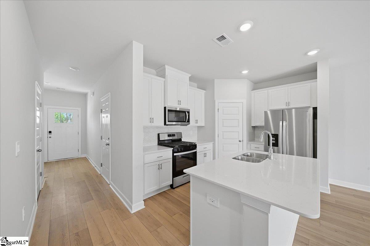Brand new, energy-efficient home available by Mar 2026! The primary suite features dual sinks and a large walk-in closet. Downstairs, the kitchen island overlooks the great room and dining area. White cabinet with white quartz countertops, EVP flooring, and carpet in our Radiant Package. Crossing at Abner Creek is a new community coming soon to the Greenville Upstate in peaceful Greer, offering a mix of single-family homes and townhomes. With six energy-efficient floorplans to choose from, this neighborhood combines modern living with a serene atmosphere. Conveniently located near HWY 101, residents will enjoy easy access to local amenities while being tucked away in a quiet, welcoming setting. Each of our homes is built with innovative, energy-efficient features designed to help you enjoy more savings, better health, real comfort and peace of mind.