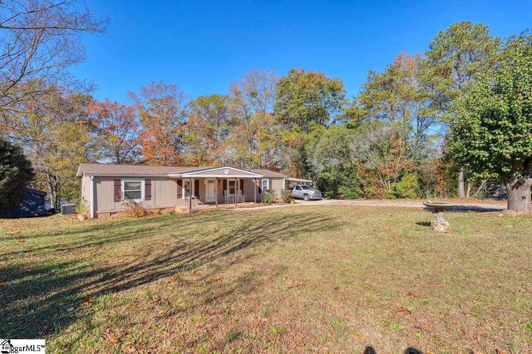 Enjoy lakeside living at its best with this 3 bedroom/2 bathroom home perfectly situated on beautiful Lake Blalock! Nestled on approximately .64 acres, this property offers its own private dock, ideal for fishing, boating, or simply relaxing by the water. Outdoor living is a dream with a spacious deck and a charming gazebo overlooking the lake—perfect for entertaining or quiet evenings by the shore. Inside, you’ll find an inviting open-concept layout with LVP flooring throughout, a living room with an exposed beam, and a cozy gas log fireplace surrounded by stone. The kitchen features a smooth cooktop, built-in microwave, and dishwasher, flowing seamlessly into the laundry room for added convenience. The primary suite includes a full private bathroom, offering comfort and privacy. Whether you’re looking for a peaceful retreat or a year-round residence, this lakefront gem combines comfort, charm, and stunning views of Lake Blalock—ready for you to start making memories! *There are 3 rose bushes in the flower bed of front yard against the house that will NOT remain with the home. 2 storage buildings also will NOT remain with the home.