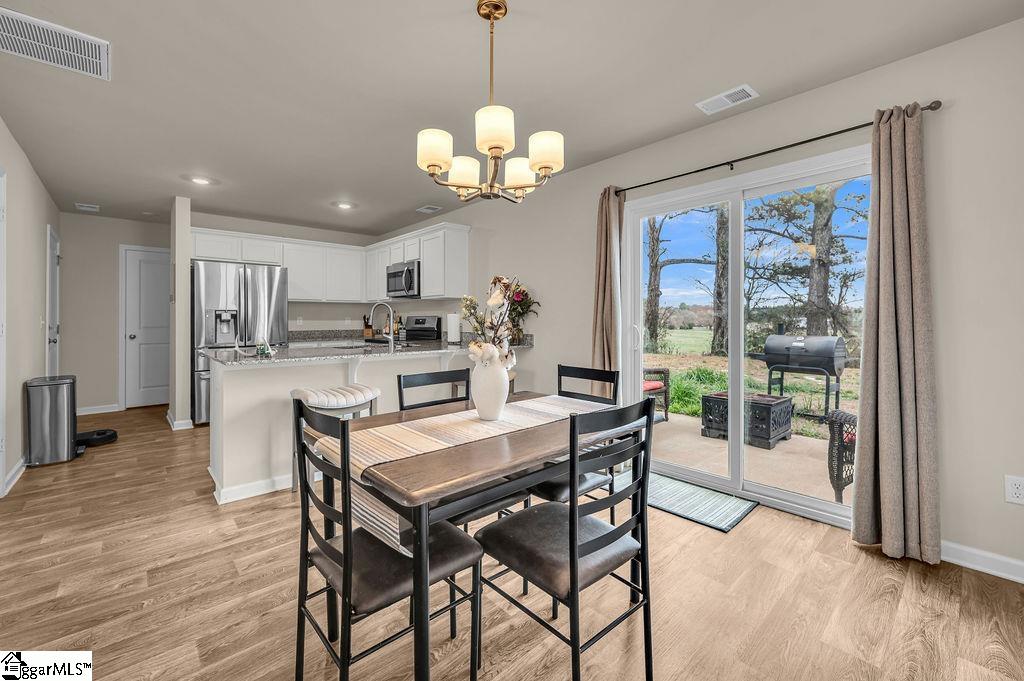 MOTIVATED SELLER! LIKE-NEW living with comfort, convenience, and an easy everyday flow. This 2023 home in Hidden Hills is thoughtfully designed for modern lifestyles. With a bright, open layout and clean, contemporary finishes, this move-in-ready home offers a balance of functionality and charm in a highly accessible location. The main level features LVP flooring throughout and an open floor plan where the great room flows into the dining area and continues into the kitchen. White cabinetry, granite countertops, and a light, neutral palette create an inviting kitchen that feels both stylish and practical. A conveniently located half bath on the main level adds to the home’s everyday ease. Upstairs, all three bedrooms and two full baths are well positioned for comfort and privacy. The spacious primary suite includes an en-suite bathroom with double sinks, a walk-in shower, a linen closet, and a walk-in closet located just beyond the bath. Two additional bedrooms share a hall bath, and a small walk-in laundry room upstairs keeps daily routines simple and efficient. Outdoor space includes a patio and level backyard - ideal for relaxing or enjoying low-maintenance outdoor living. The one-car attached garage adds practicality, while the smaller lot size of approximately 0.17 acres allows for easy upkeep. Located in Hidden Hills, less than five miles from both Laurens and Clinton, this home offers quick access to two charming, historic downtowns known for walkable streets, local shops, and community character, bringing together modern living and small-town appeal.