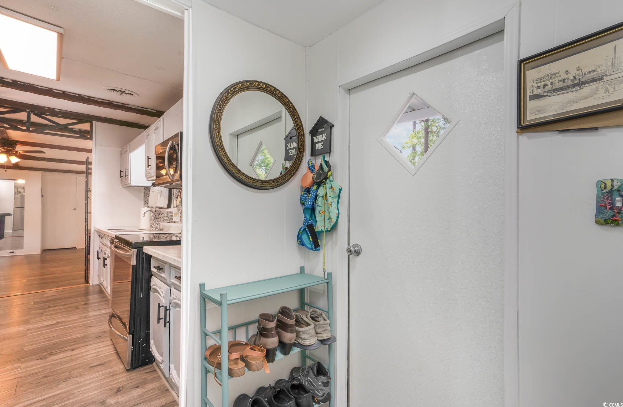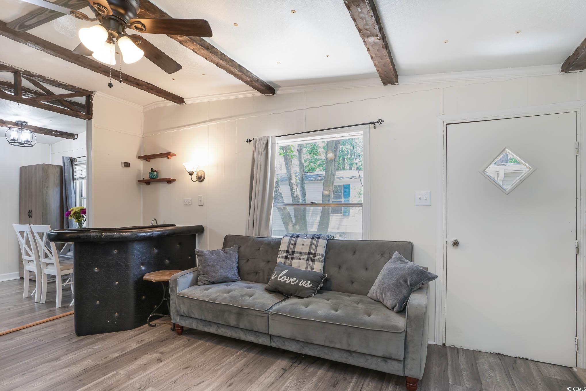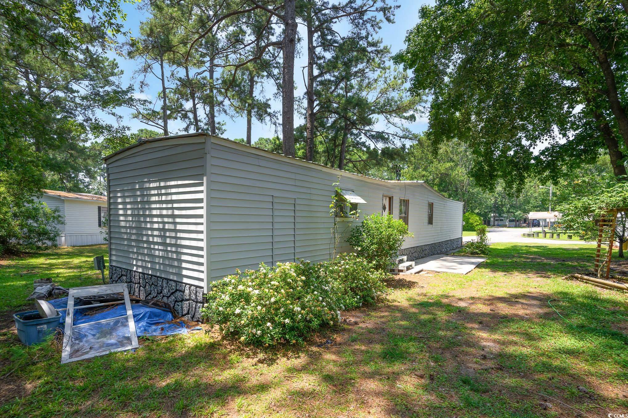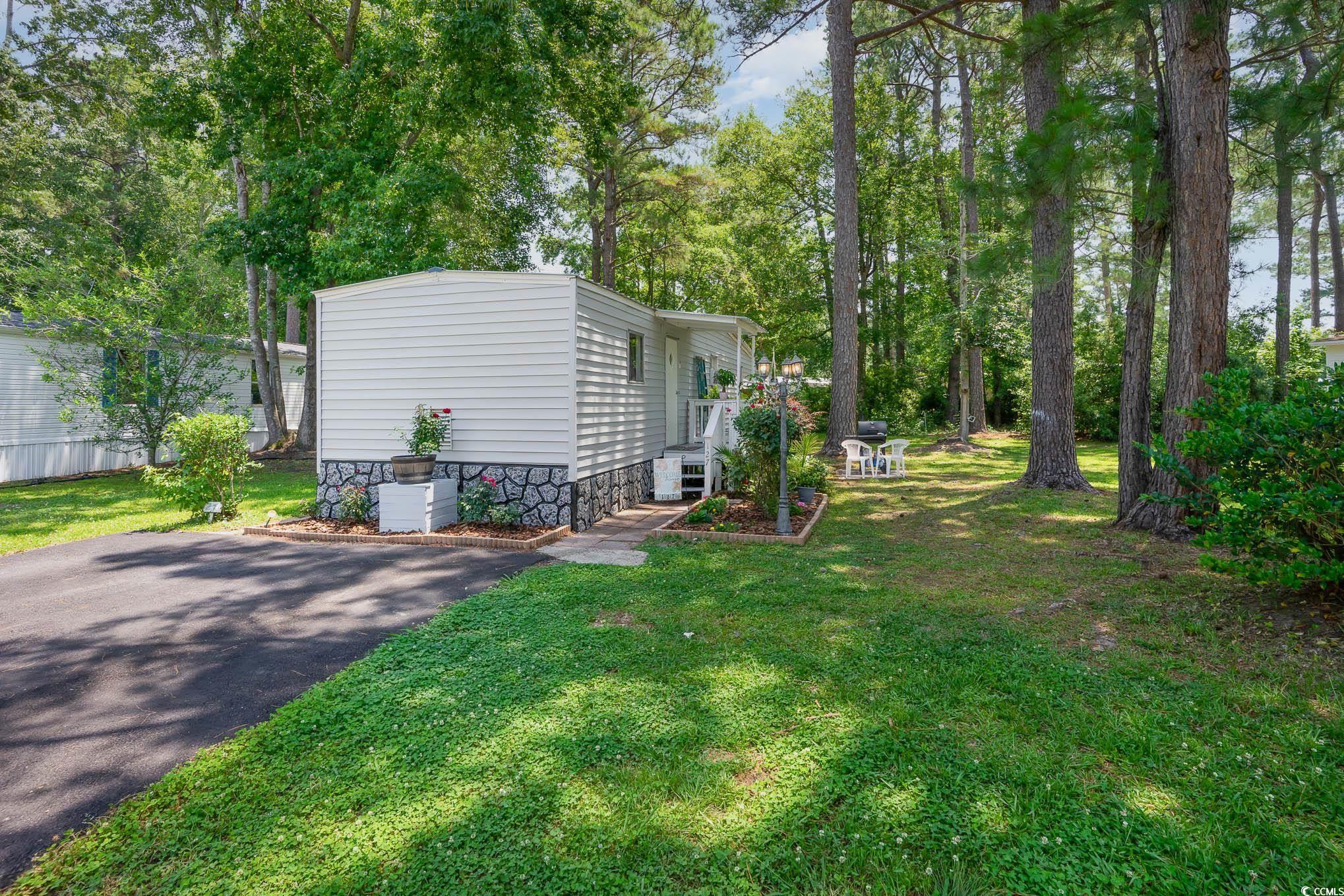 Welcome to this fully renovated and fully furnished 2-bedroom, 2-bathroom mobile home located on leased land in the highly desirable Murrells Inlet, South Carolina. This home has been completely remodeled from end to end—inside and out—offering a fresh, modern feel with thoughtful updates throughout. Major exterior improvements include a metal roof, vinyl siding and underpinning, and new window units in both the kitchen and master bedroom. Inside, the entire subflooring was replaced in 2020, and the living room, kitchen, and guest bedroom now feature beautiful hardwood floors, while the master bedroom, both bathrooms, and closets were updated with vinyl flooring . The kitchen was fully remodeled and is equipped with newer appliances including a stove, refrigerator, and dishwasher. The dryer was replaced in, adding to the home’s functionality. Both bathrooms were completely renovated in 2023, bringing in modern finishes and improved layouts. Additional updates include fresh paint, new molding, and stylish light fixtures, giving the home a bright and cohesive look throughout. Being sold fully furnished with new furnishings. Located in the heart of Murrells Inlet, this home offers convenient access to the Marsh Walk, great restaurants, shopping, and the beautiful South Carolina coastline. Whether you're searching for a primary home, a vacation retreat, or a turnkey investment property, this move-in-ready home has everything you need. Schedule your showing today and discover all the charm and value this home has to offer! Motivated Seller.