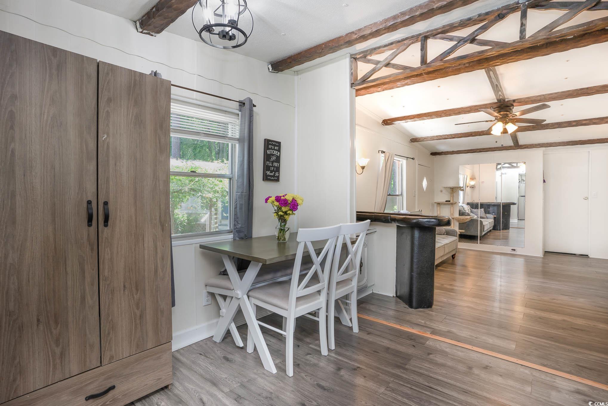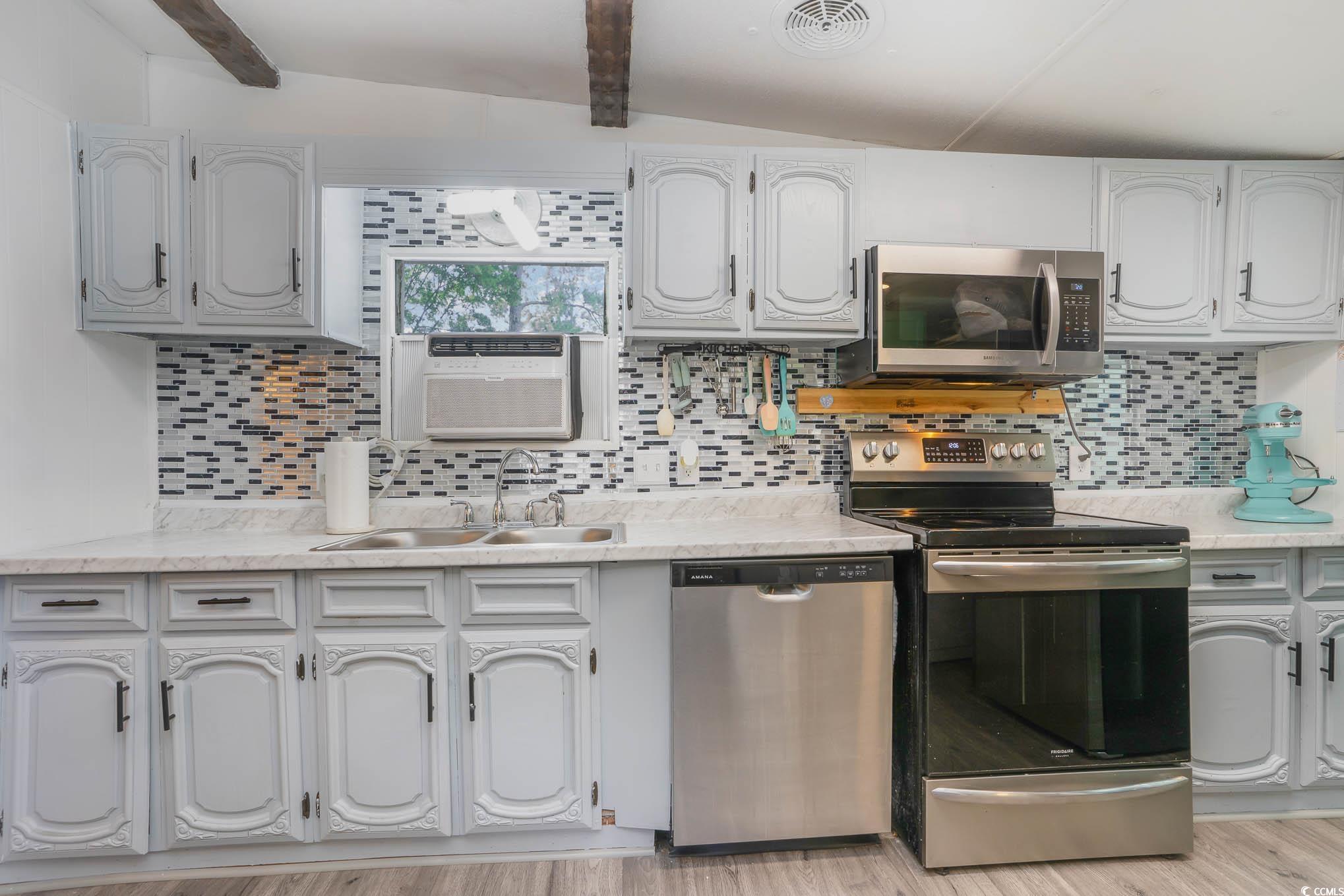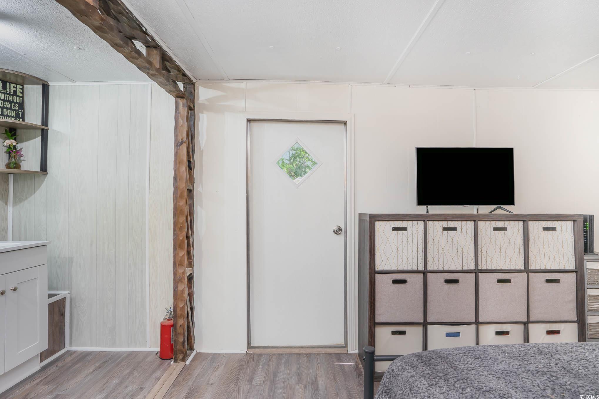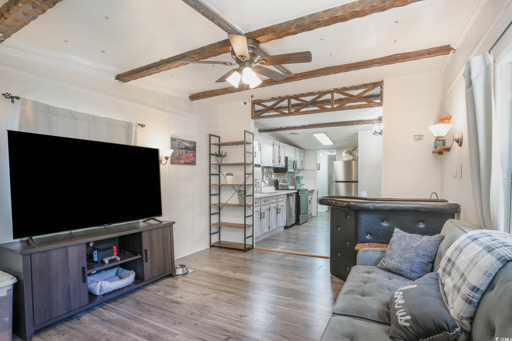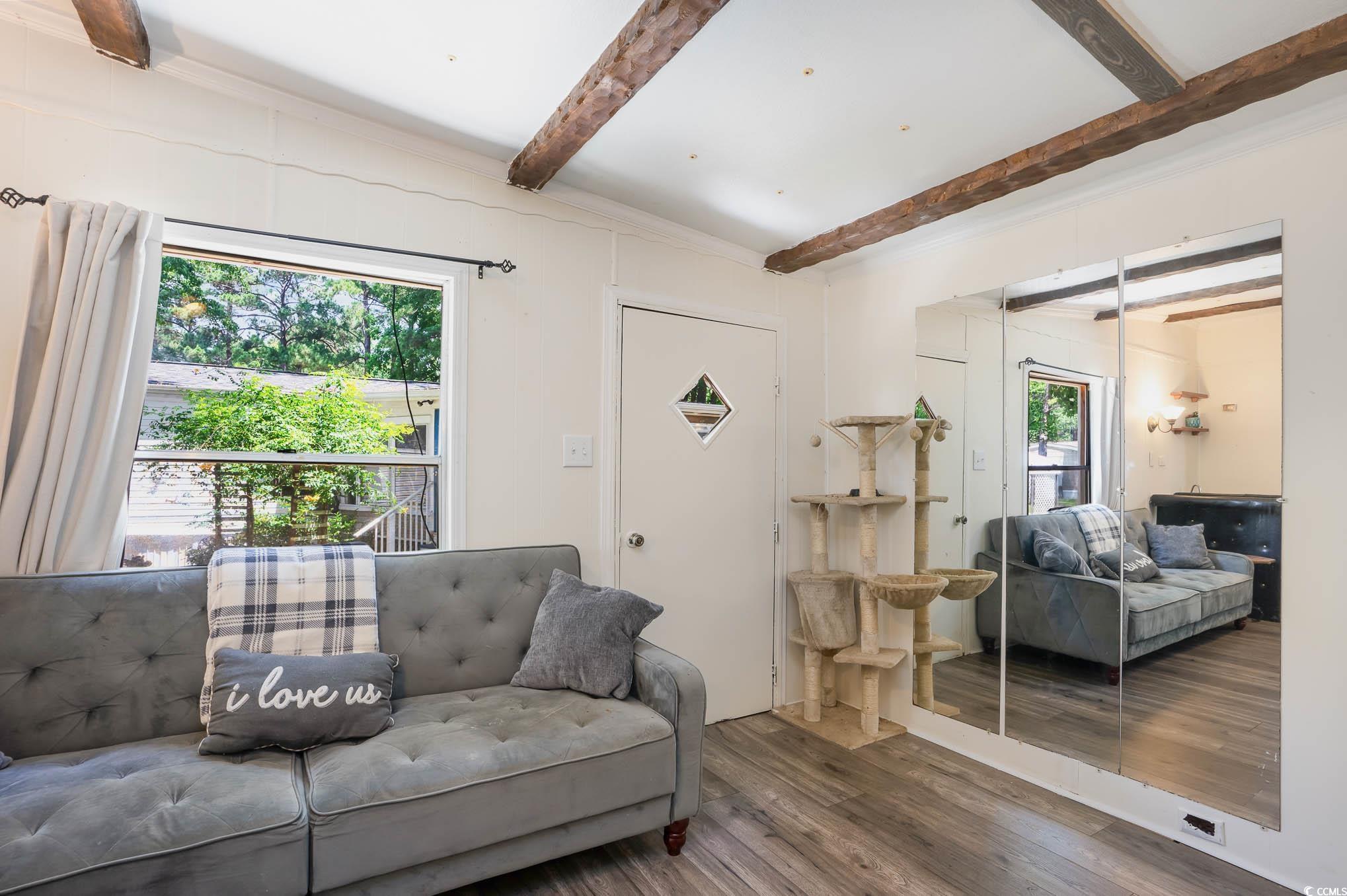 Welcome to this fully renovated and fully furnished 2-bedroom, 2-bathroom mobile home located on leased land in the highly desirable Murrells Inlet, South Carolina. This home has been completely remodeled from end to end—inside and out—offering a fresh, modern feel with thoughtful updates throughout. Major exterior improvements include a metal roof, vinyl siding and underpinning, and new window units in both the kitchen and master bedroom. Inside, the entire subflooring was replaced in 2020, and the living room, kitchen, and guest bedroom now feature beautiful hardwood floors, while the master bedroom, both bathrooms, and closets were updated with vinyl flooring . The kitchen was fully remodeled and is equipped with newer appliances including a stove, refrigerator, and dishwasher. The dryer was replaced in, adding to the home’s functionality. Both bathrooms were completely renovated in 2023, bringing in modern finishes and improved layouts. Additional updates include fresh paint, new molding, and stylish light fixtures, giving the home a bright and cohesive look throughout. Being sold fully furnished with new furnishings. Located in the heart of Murrells Inlet, this home offers convenient access to the Marsh Walk, great restaurants, shopping, and the beautiful South Carolina coastline. Whether you're searching for a primary home, a vacation retreat, or a turnkey investment property, this move-in-ready home has everything you need. Schedule your showing today and discover all the charm and value this home has to offer! Motivated Seller.