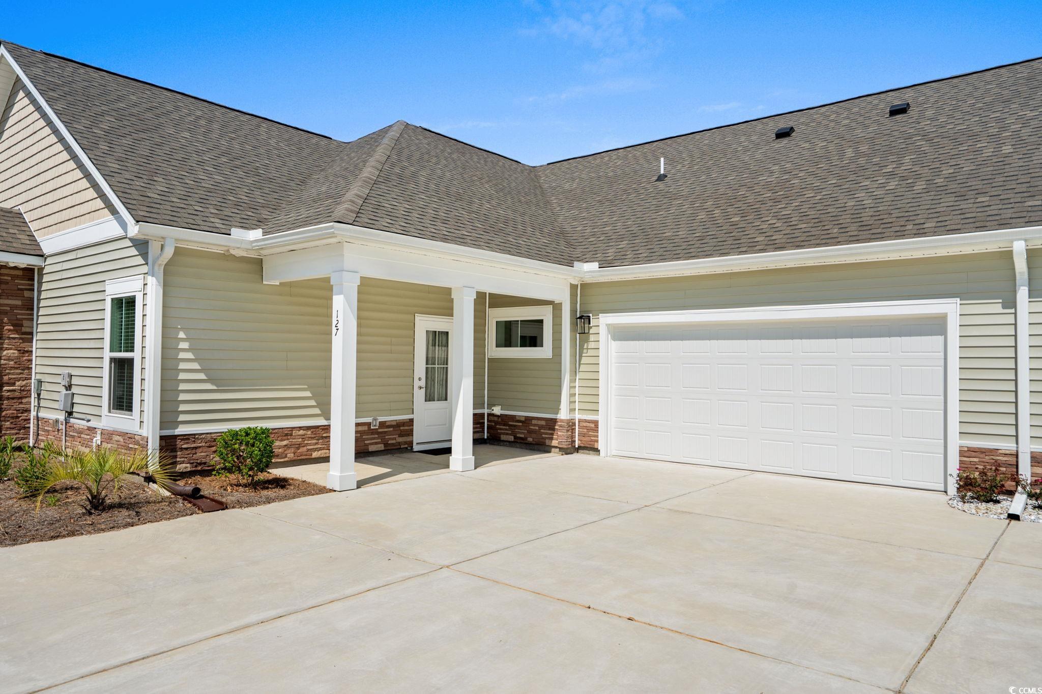 Welcome to this never-occupied, move-in ready villa offering modern comfort and thoughtful details—all on the first floor. Featuring 3 bedrooms, including a primary suite with a walk-in closet and private en suite bath with double sinks, this home combines style and convenience. You’ll love the LVP flooring throughout, ceiling fans in every room, and a modern remote-control fireplace that adds warmth and character to the living space. The kitchen boasts all-new stainless steel appliances, while the versatile Carolina Room is perfect for a cozy den, office, or sunlit sitting area. This home also includes elegant draperies and 2 inch blinds that convey, giving every room a polished and finished look. A spacious 2-car garage with pull-down attic stairs provides plenty of storage, and the community amenities include a clubhouse and sparkling outdoor pool. *Master Bedroom furniture, Carolina Room chairs, and Kitchen bar stools may be included with appropriate offer. Ideally located near shopping, dining, medical facilities, and just a short drive to the beach, this condo offers the perfect combination of comfort, convenience, and coastal living. **HOA fee includes: Exterior insurance, Water/Sewer, Trash/Garbage collection, Cable TV & Internet, Exterior Pressure Washing, Pest Control, Landscaping, Pool & Clubhouse Maintenance, and Annual Dryer Vent Cleaning.
